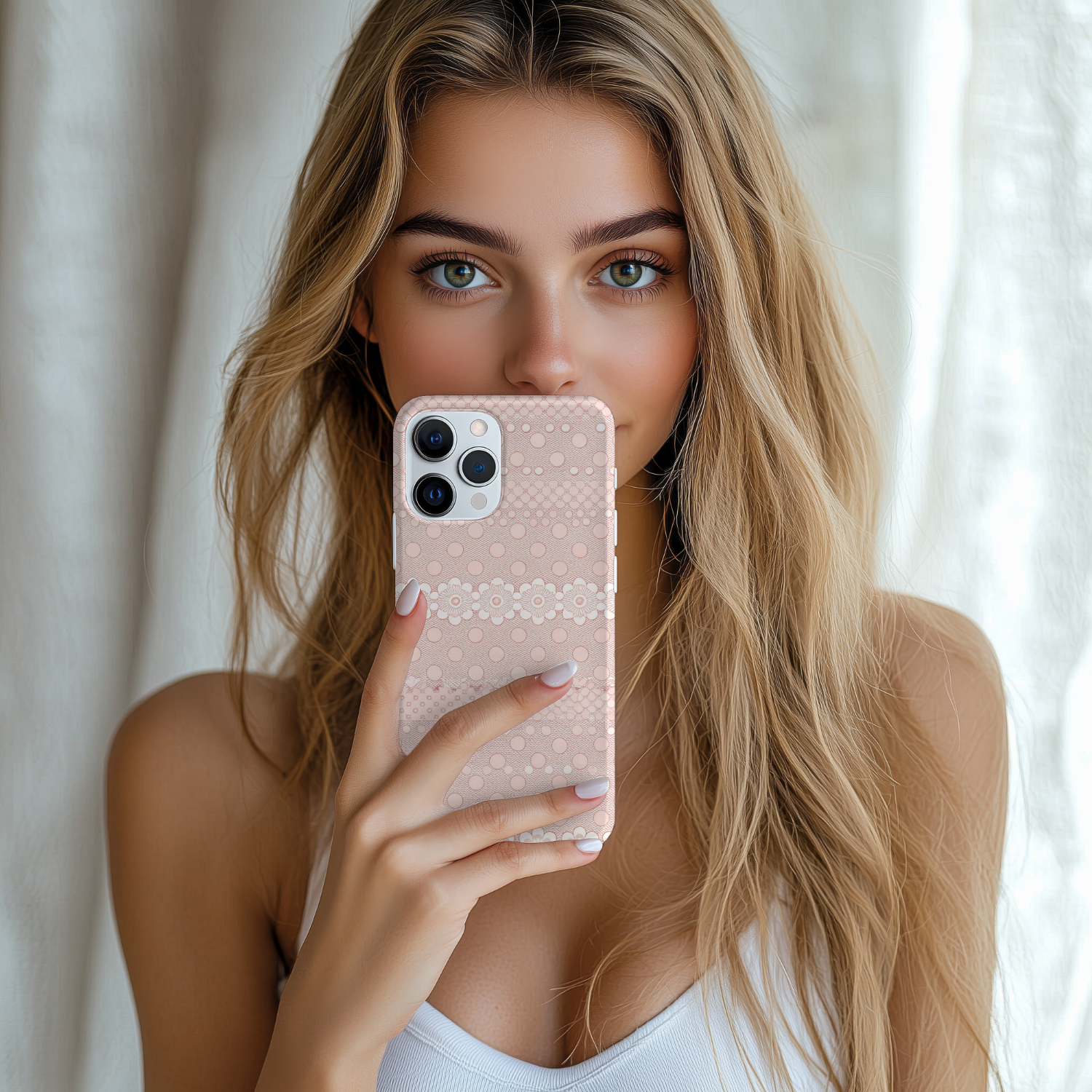 Charming Pink Lace Heart Pattern Tough iPhone Samsung Case Cute Phone Cover, Gift for Her, Valentine's Day, Trendy Protection, Love Themed