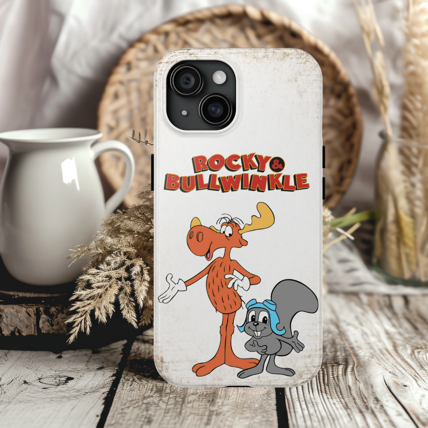 Retro Vintage Look Rocky & Bullwinkle Inspired Tough iPhone Samsung Case Fun Cartoon Style, Gift for Kids, and Themed Parties, Durable Protection