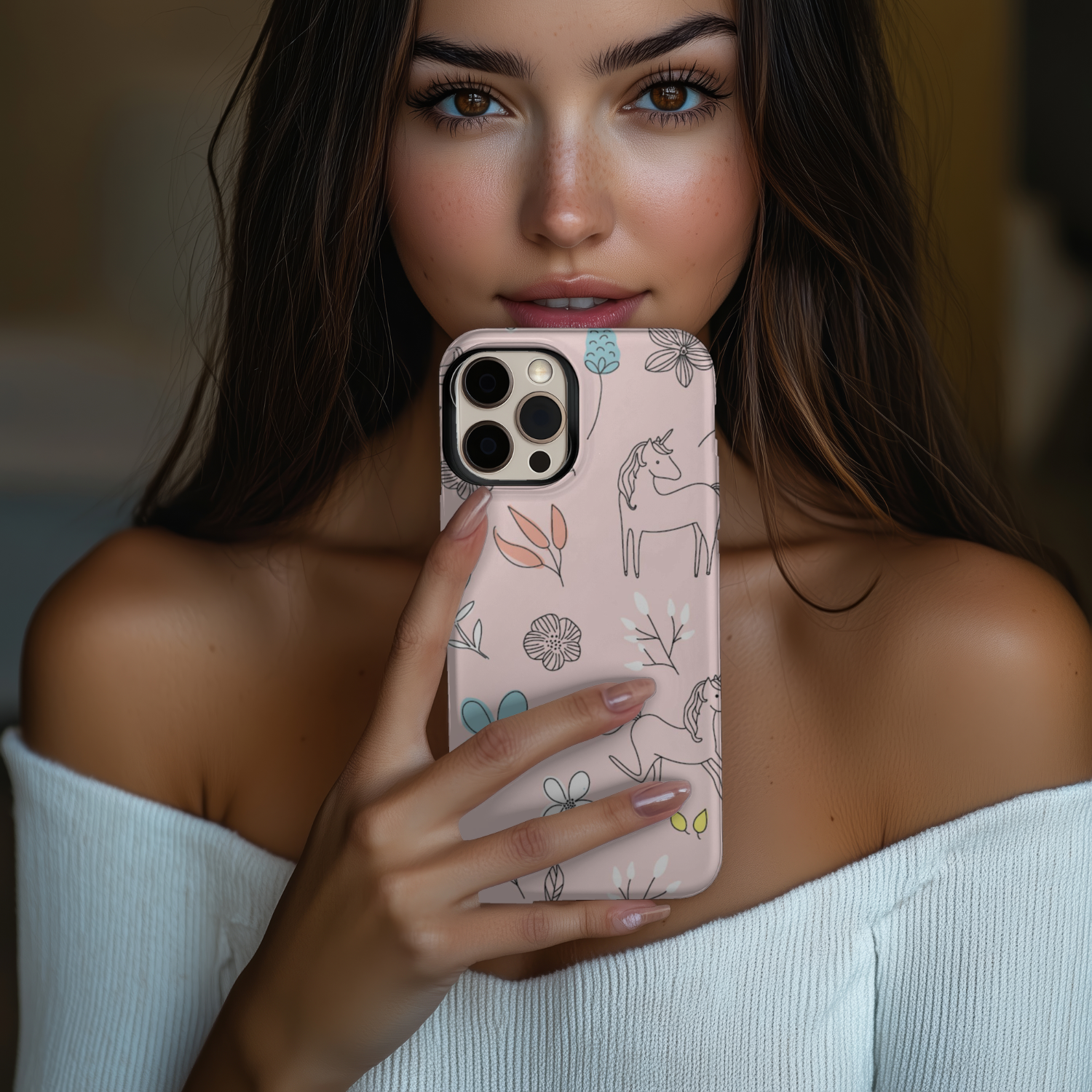 Whimsical Pink Unicorn Floral iPhone Samsung Case, Tough Phone Case for Kids, Cute Phone Cover, Gift for Unicorn Lovers
