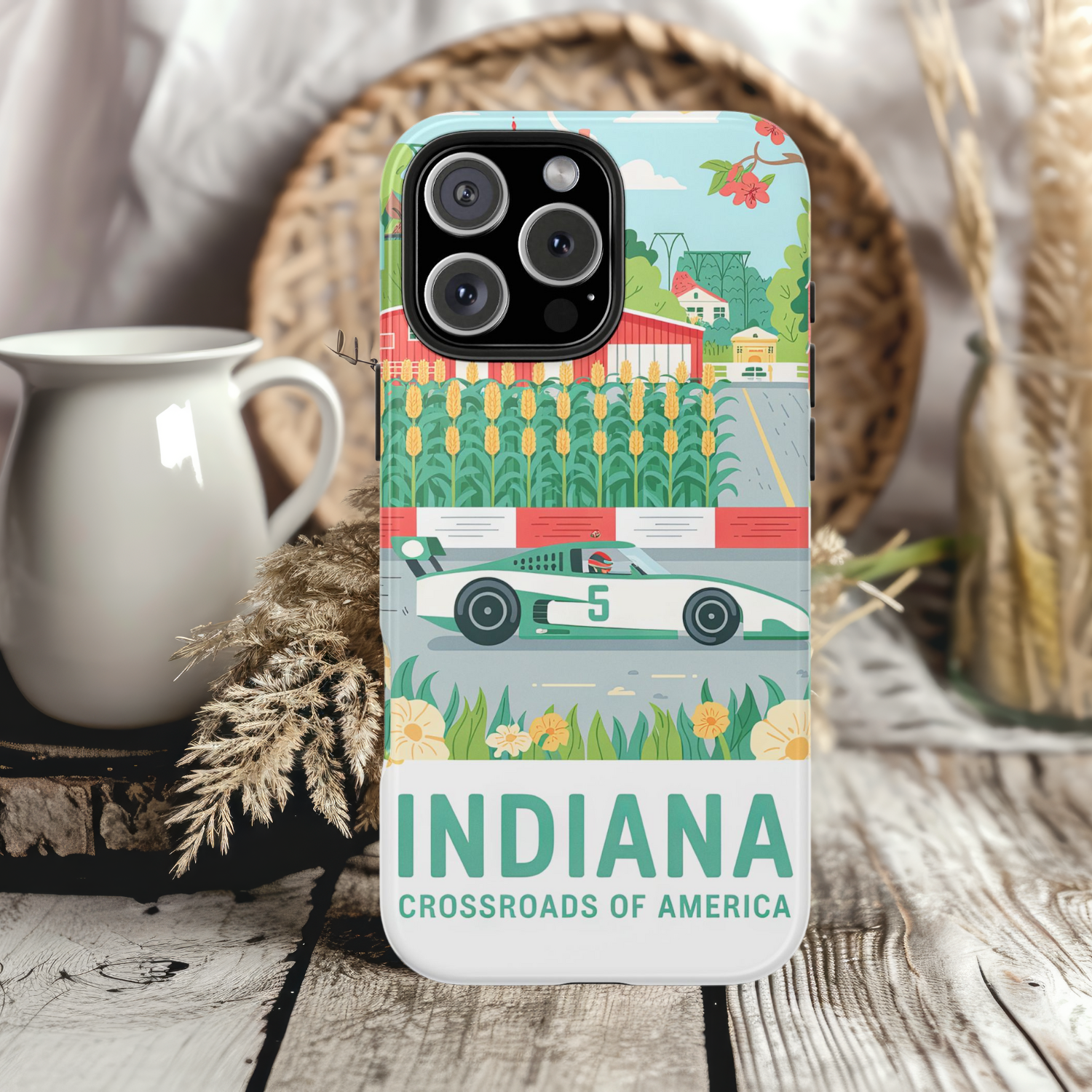 Indiana Crossroads Phone Case, Tough Smartphone Cover, Racing Theme, Gift for Car Enthusiasts, Road Trip Accessory for iPhone or Samsung Phones