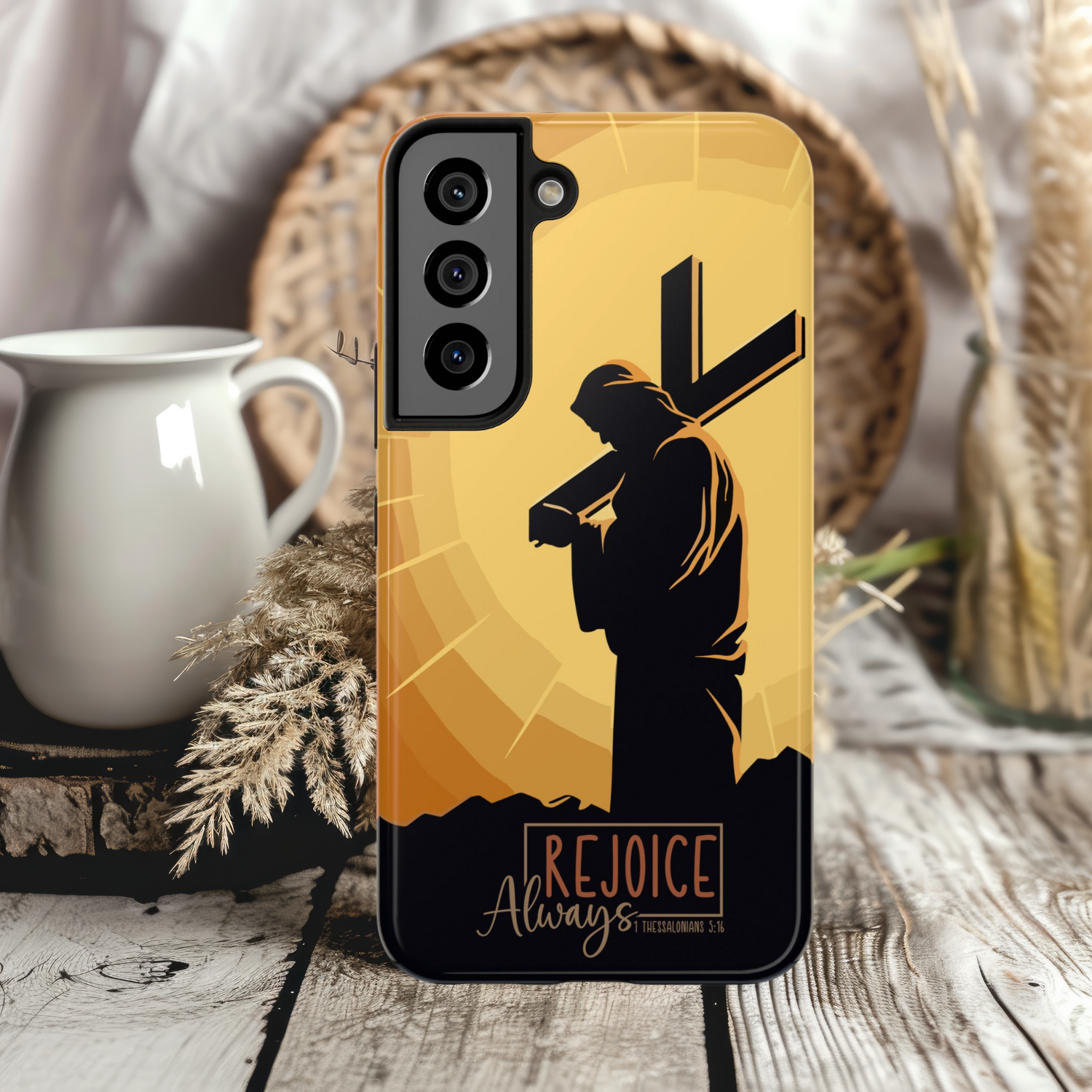 Christian Tough Phone Case, Inspirational Phone Cover, Religious Gifts, Faith-Based Accessory, Rejoice Always for iPhone and Samsung