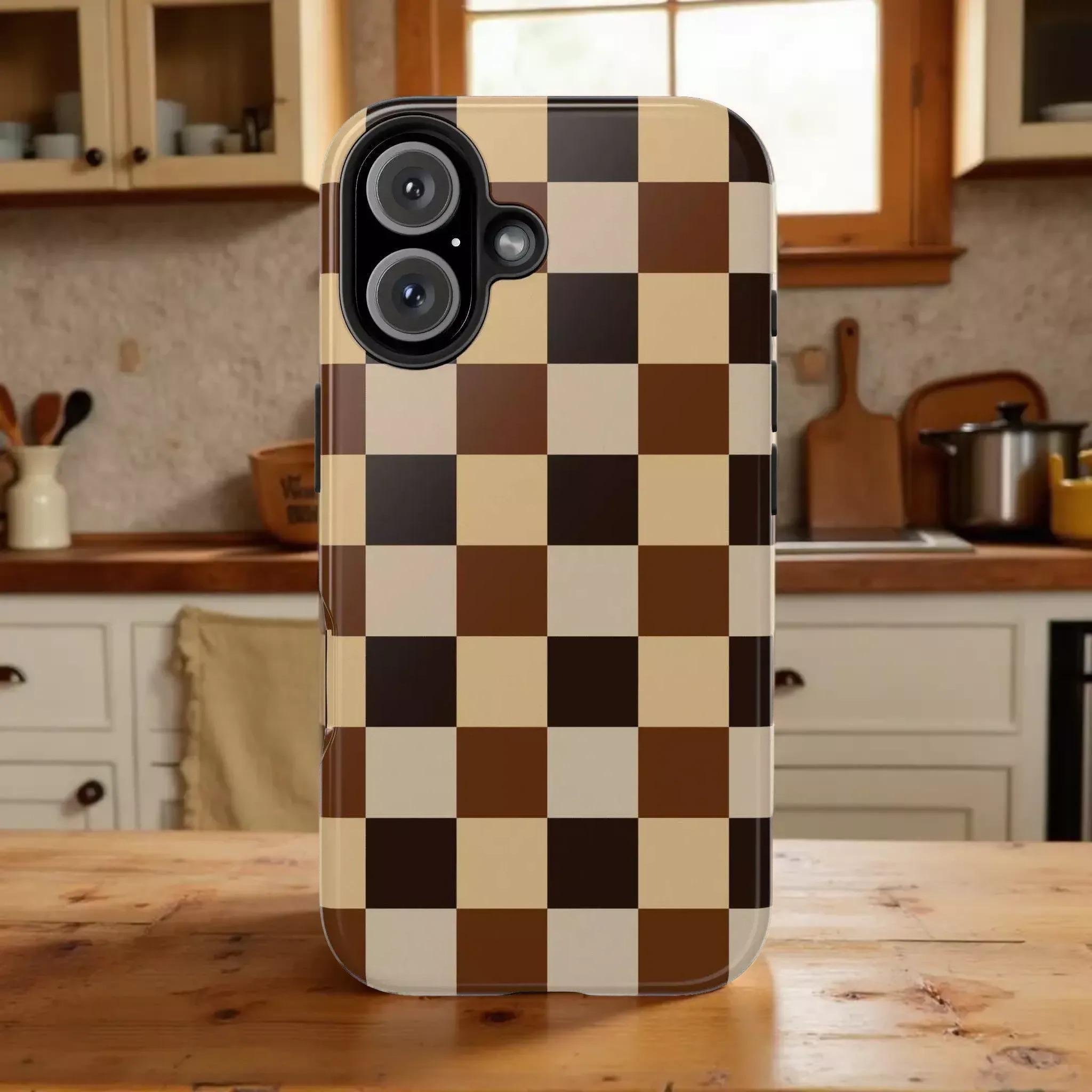 For coffee lovers who appreciate a modern design, this coffee checkered phone case offers both style and protection in one sleek accessory. Crafted with a tough protective shell, it combines durability with a unique pattern that stands out. Whether you're searching for a gift for her or him, this customizable cover is a perfect choice to brighten any tech collection.