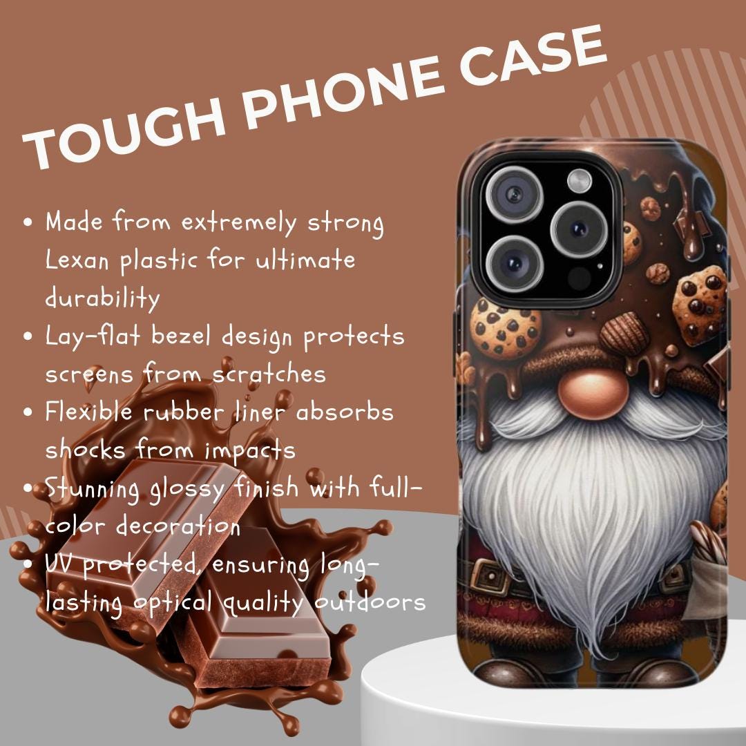 Discover the perfect blend of durability and charm with this whimsical chocolate cookie gnome phone case, designed for those who appreciate a unique phone cover that stands out. Crafted to offer tough mobile phone protection, it combines playful humor with practical features like a glossy finish cover that adds stylish flair. Whether you're searching for a gift for a phone owner or a gnome lover gift, this case delivers both personality and performance.