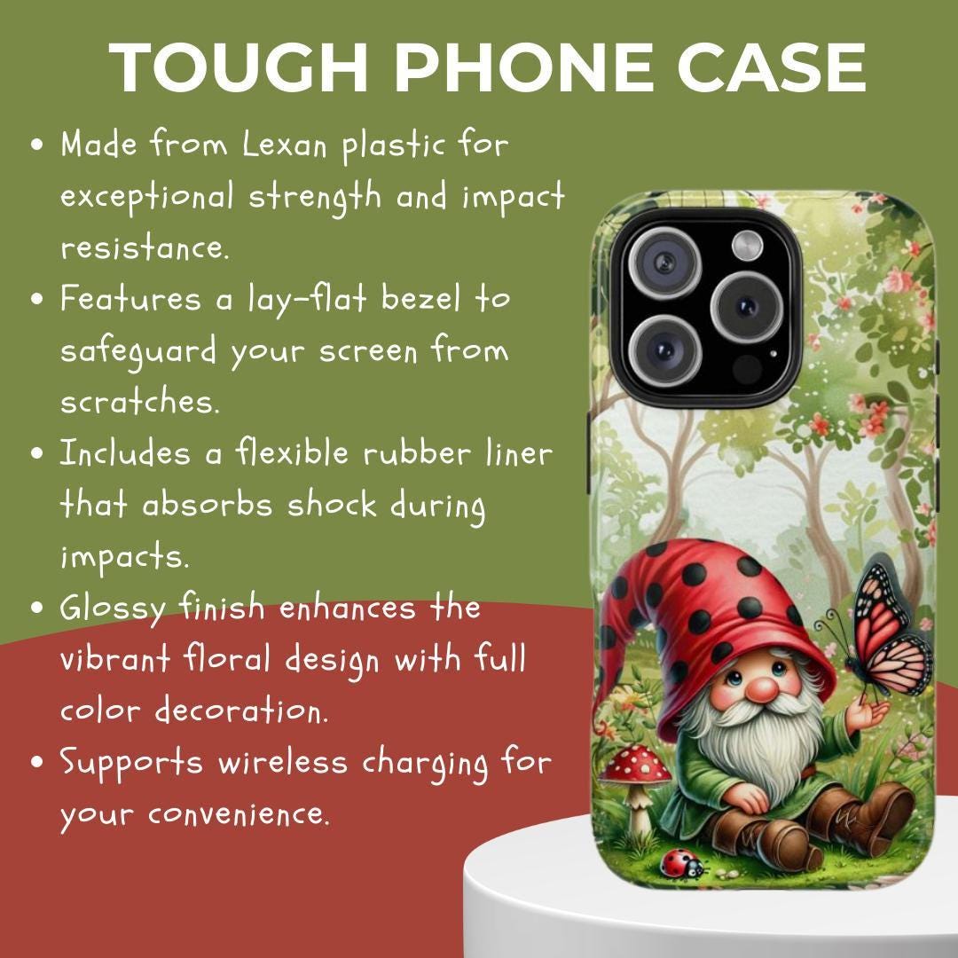 Step into a world of charm and whimsy with this nature inspired case, perfect for anyone who adores garden art and unique phone covers. Featuring a delightful gnome surrounded by lady bugs, this fun tech accessory adds a playful spring vibe to your everyday essentials. Designed to brighten your day while offering reliable protection, it’s an ideal gift for gnome lovers and nature enthusiasts alike.