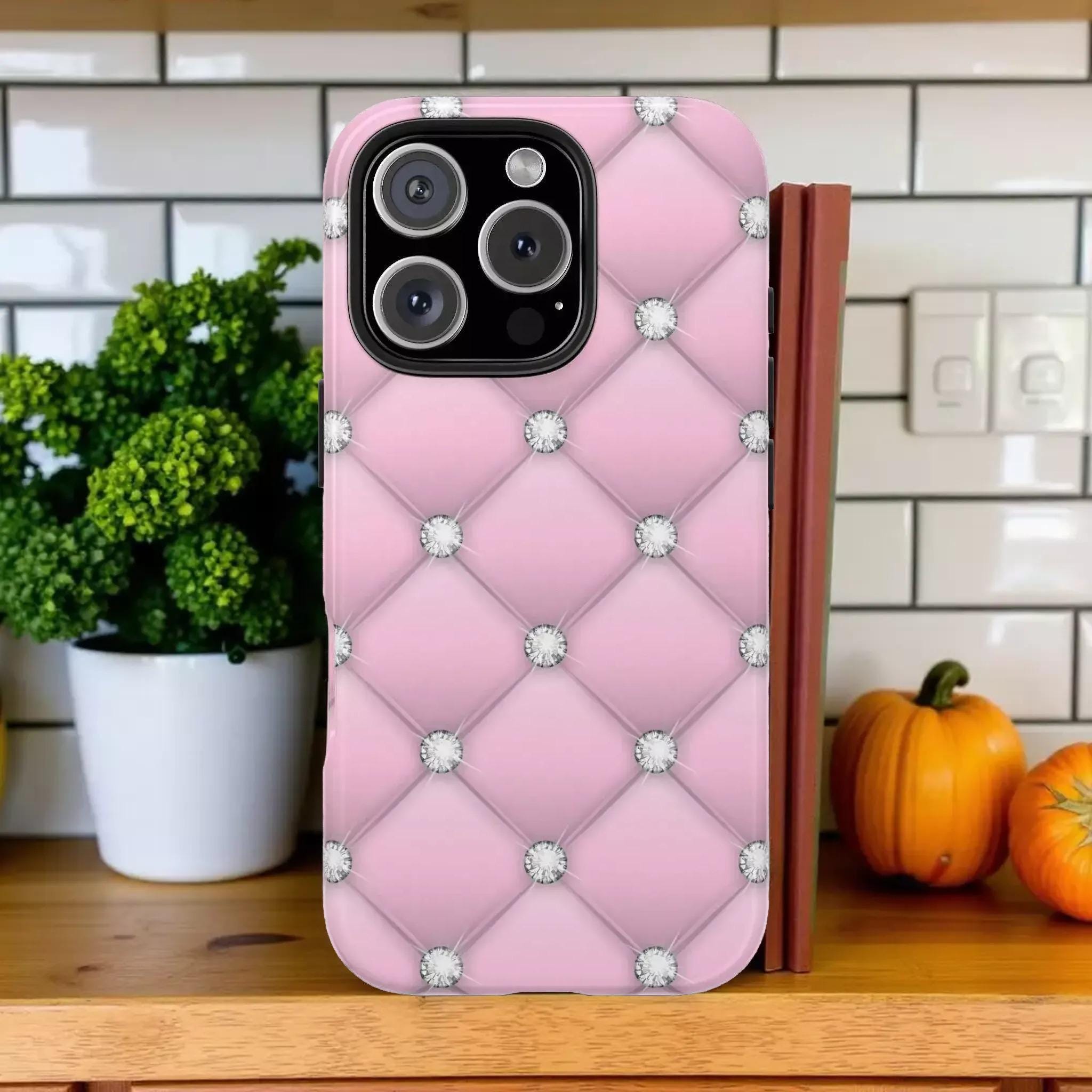 Discover the perfect blend of style and resilience with our elegant diamond quilted phone case, designed for those who love a bling phone case that truly stands out. Crafted to offer fashionable yet tough protection, this feminine phone case adds sparkle and sophistication to your everyday essentials. Whether you're treating yourself or searching for a gift for her, this stylish phone cover shines at parties and special occasions alike.