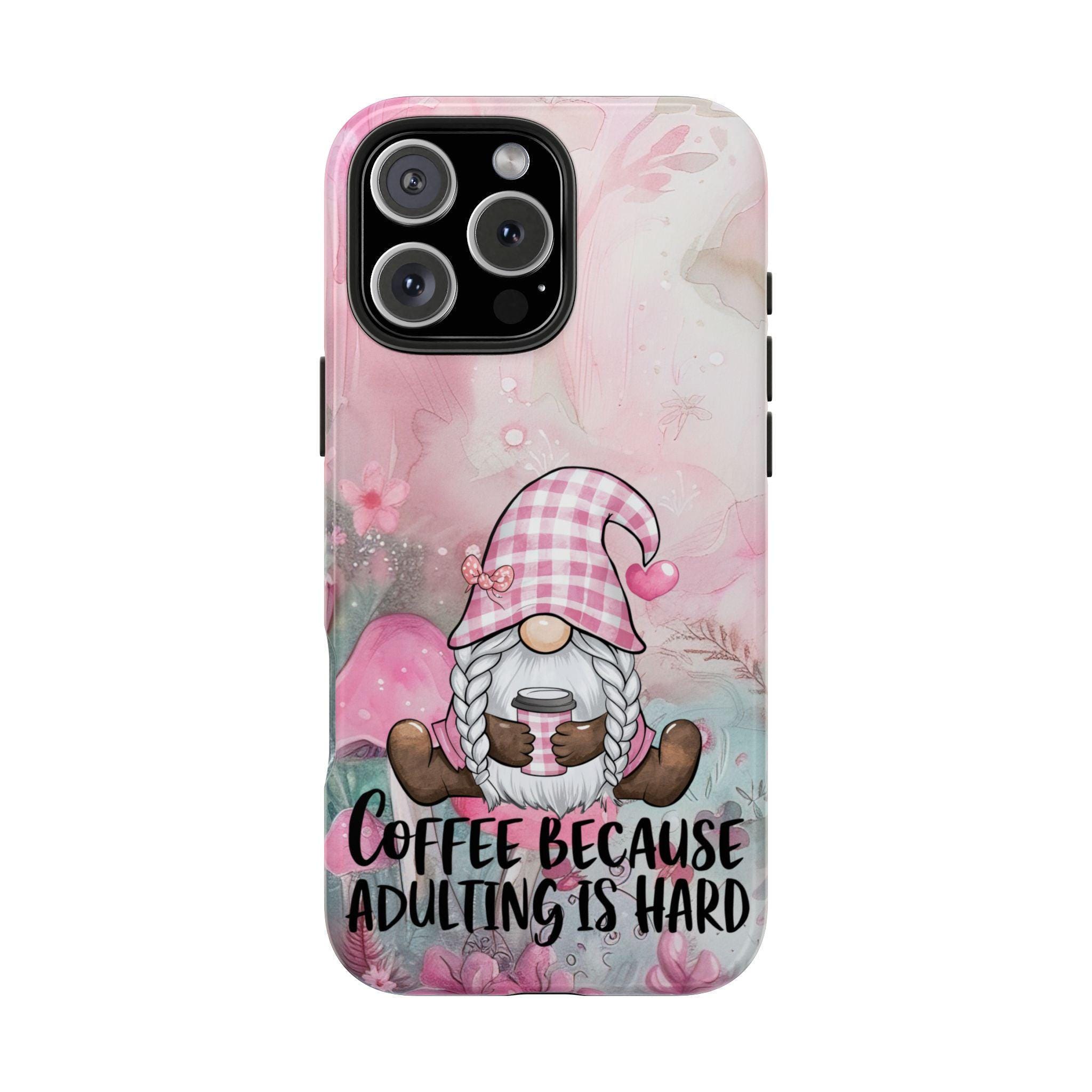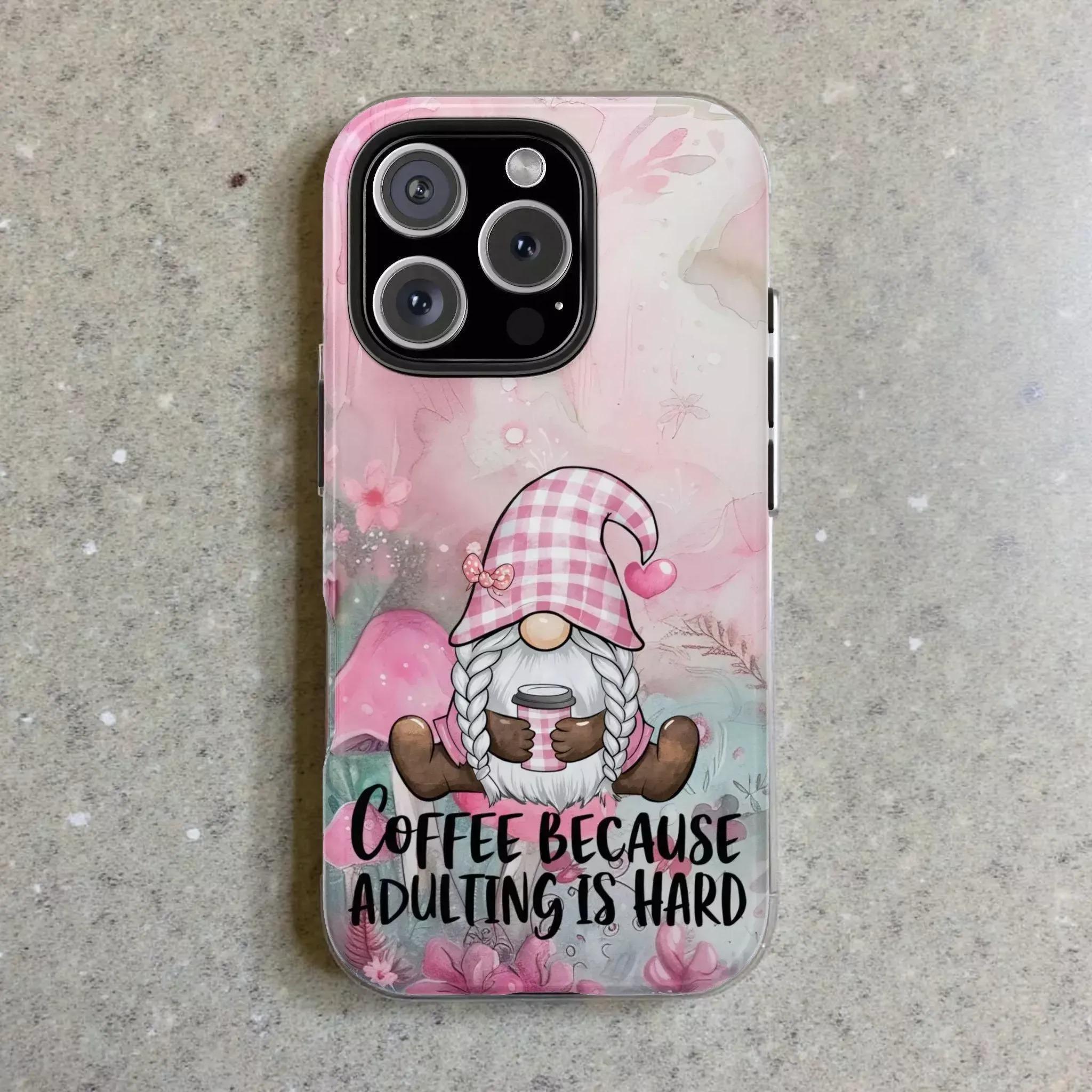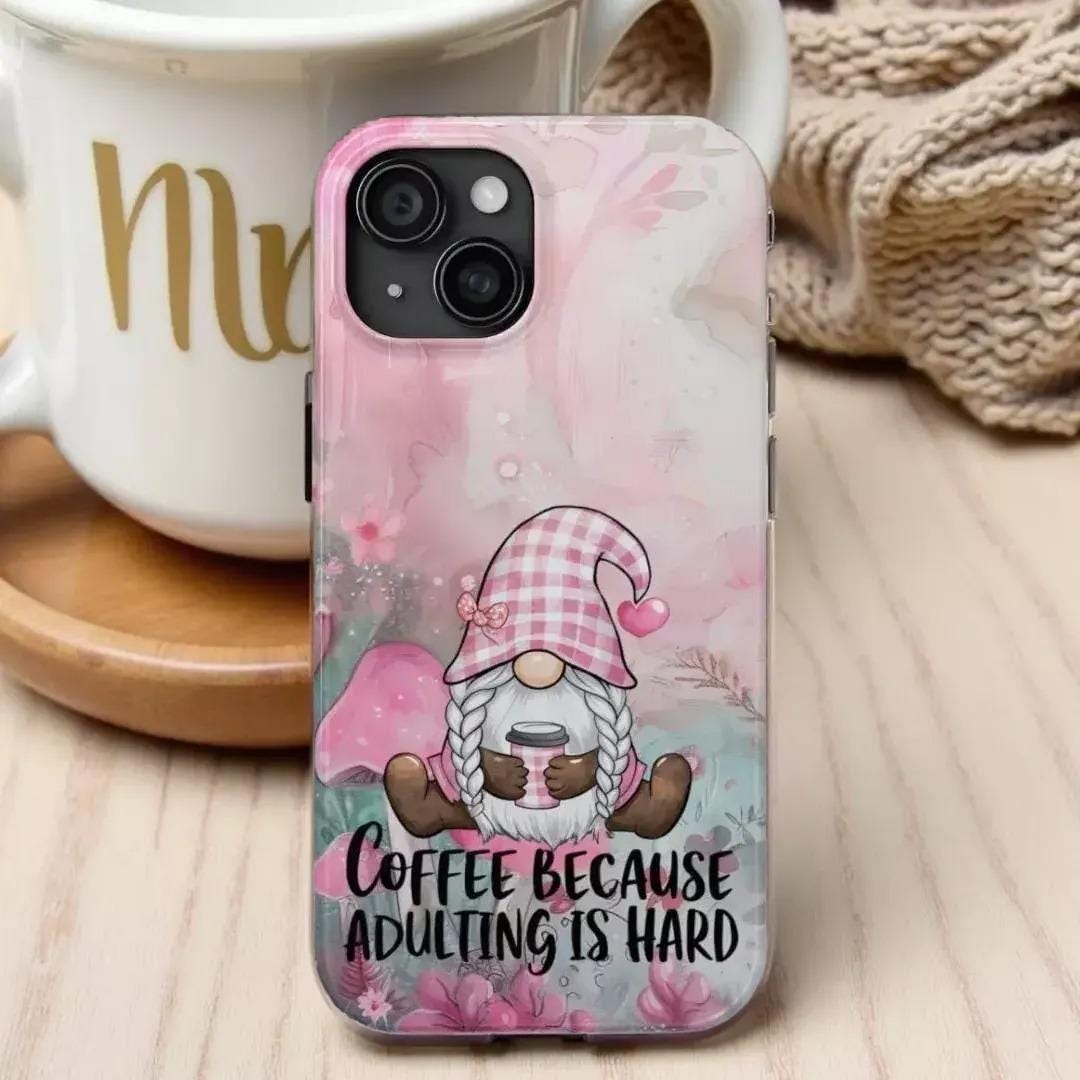 Celebrate the lighter side of life with this charming phone case that perfectly blends humor and practicality. Designed with coffee lovers and fans of adulting humor in mind, this cute gnome case brings a whimsical touch to your everyday essentials. Crafted to be both a colorful tough case and a delightful conversation starter, it’s ideal for anyone seeking a unique phone cover that stands out.