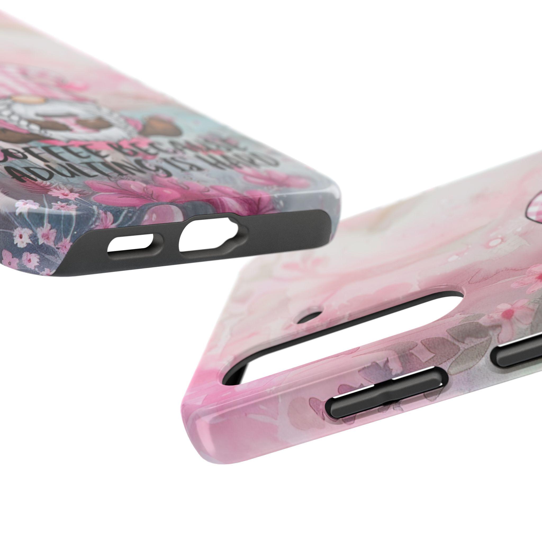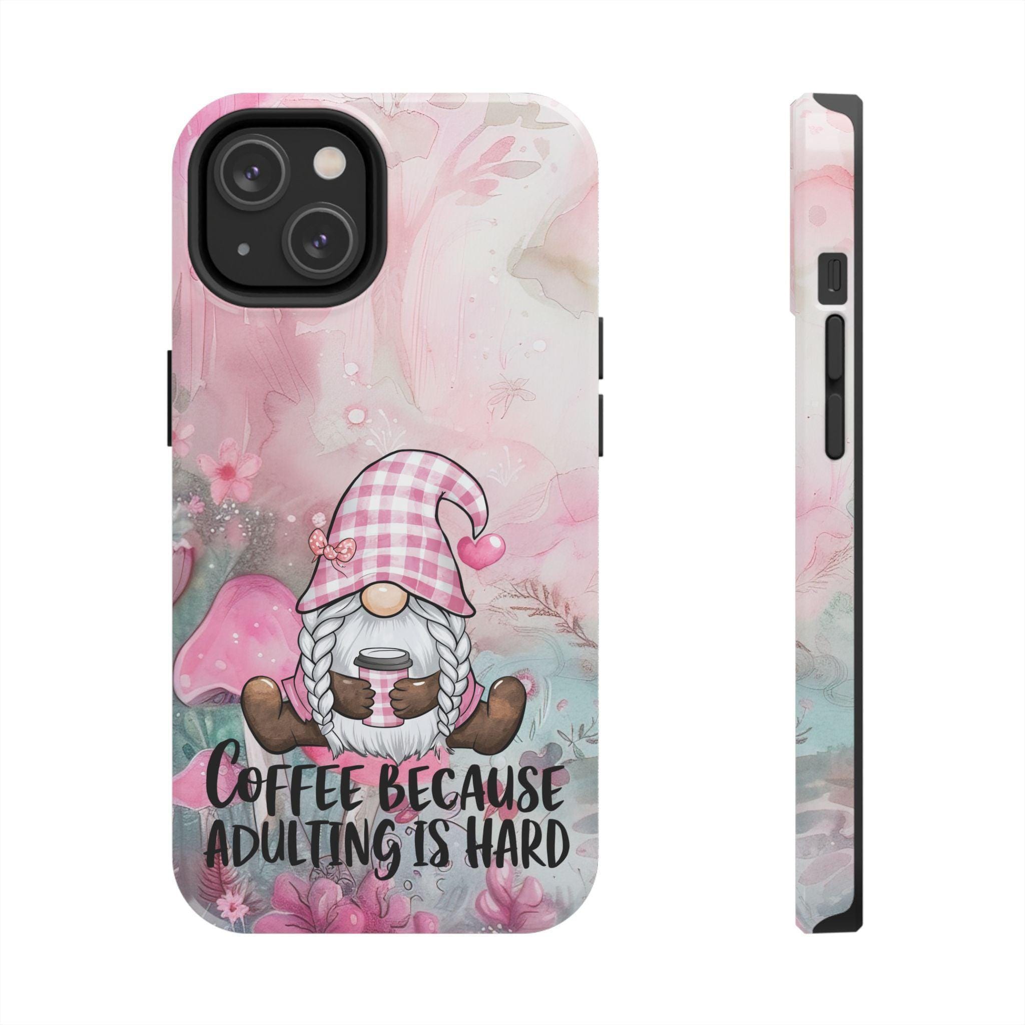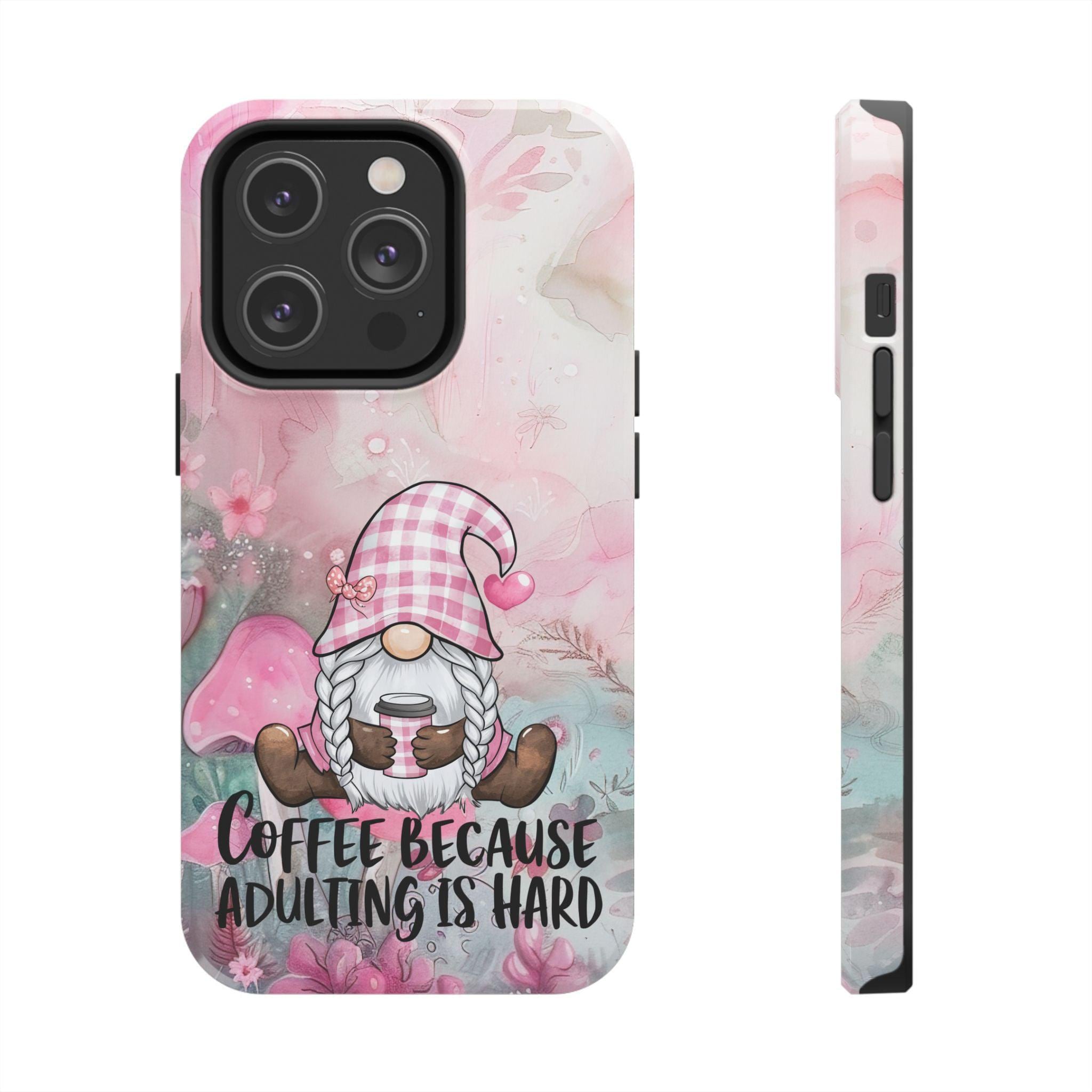 Celebrate the lighter side of life with this charming phone case that perfectly blends humor and practicality. Designed with coffee lovers and fans of adulting humor in mind, this cute gnome case brings a whimsical touch to your everyday essentials. Crafted to be both a colorful tough case and a delightful conversation starter, it’s ideal for anyone seeking a unique phone cover that stands out.