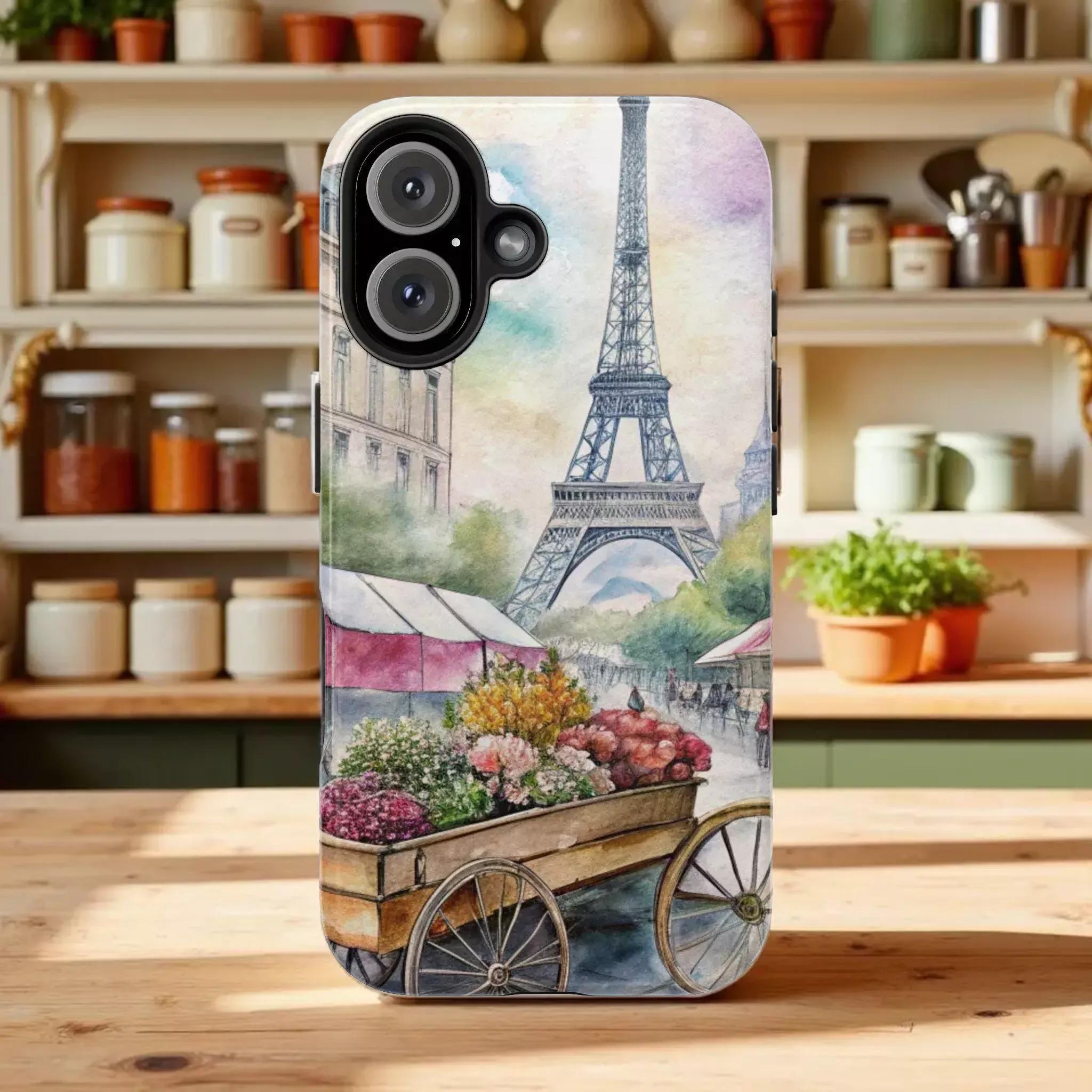Elevate your phone's style with this artistic phone case, featuring a vibrant floral print and the iconic Eiffel Tower design. Perfect for those who cherish unique phone accessories, this colorful phone case blends elegance with everyday functionality. Whether you're gifting a traveler or treating yourself, this Parisian phone cover adds a touch of chic sophistication to your device.