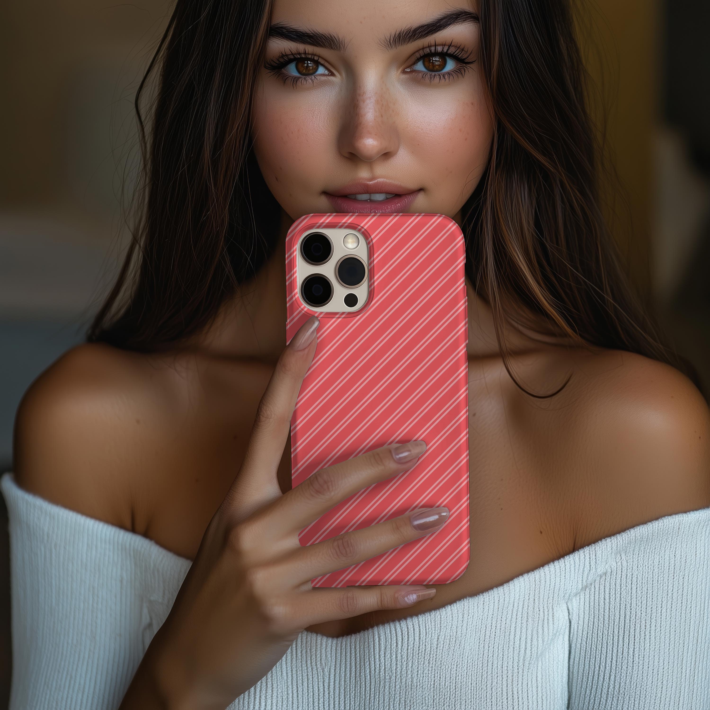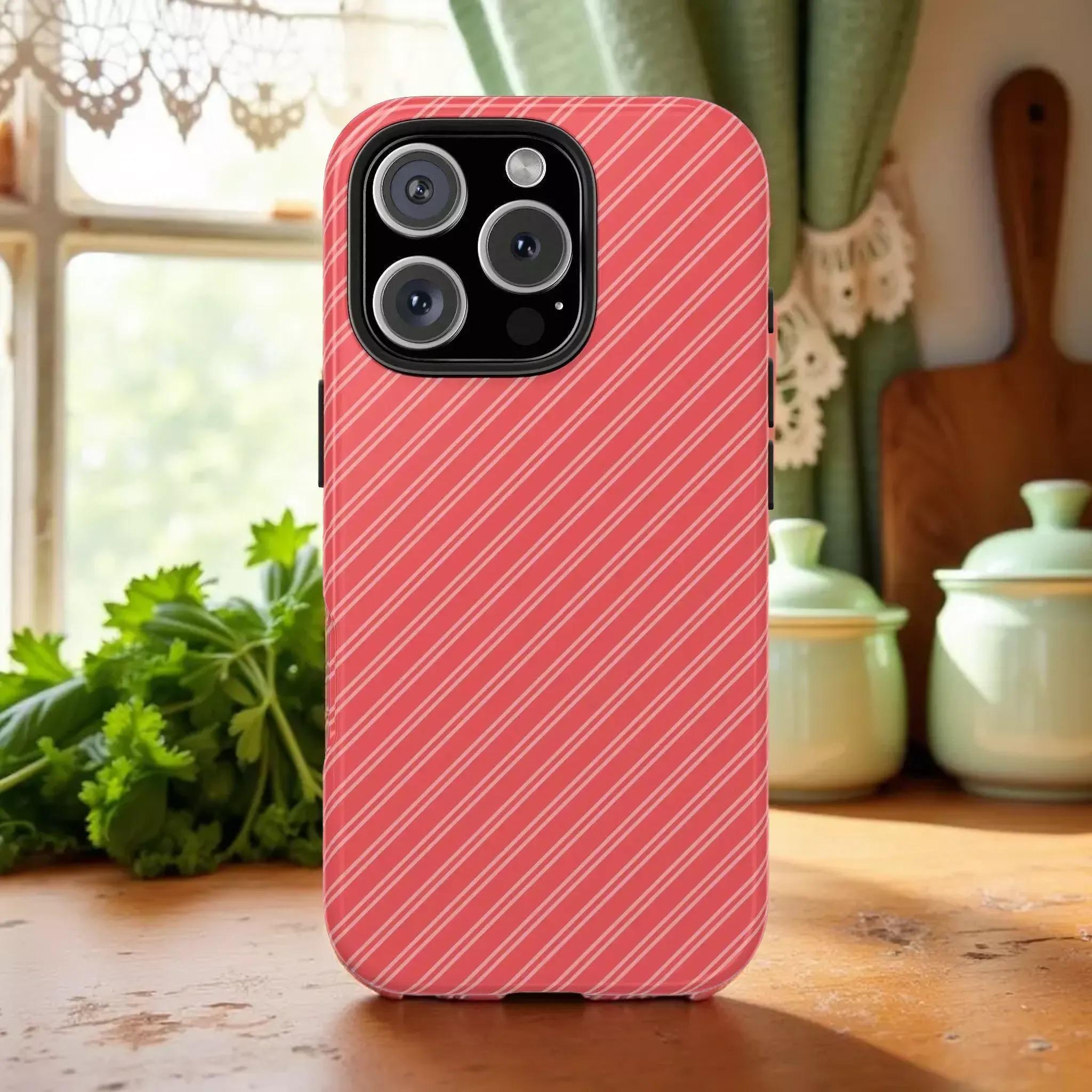 Stylish Impact Resistant Tough Phone Case with Coral Striped Design, perfect for
