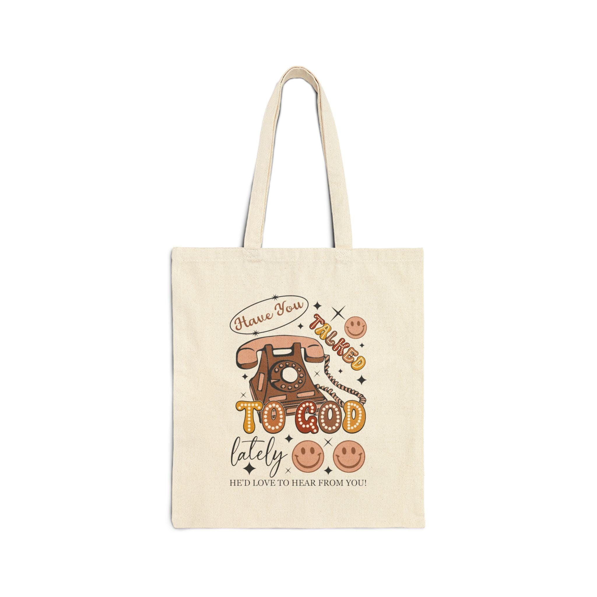 This 'Have You Talked To God Lately' Cotton Canvas Tote Bag is perfect for carrying your essentials while spreading a positive message. The durable fabric and reinforced stitching make it ideal for everyday use. This tote bag is relevant for those looking for a practical and stylish accessory that adds a touch of spirituality to their outfit. Perfect for religious holidays, church events, and spiritual gatherings.