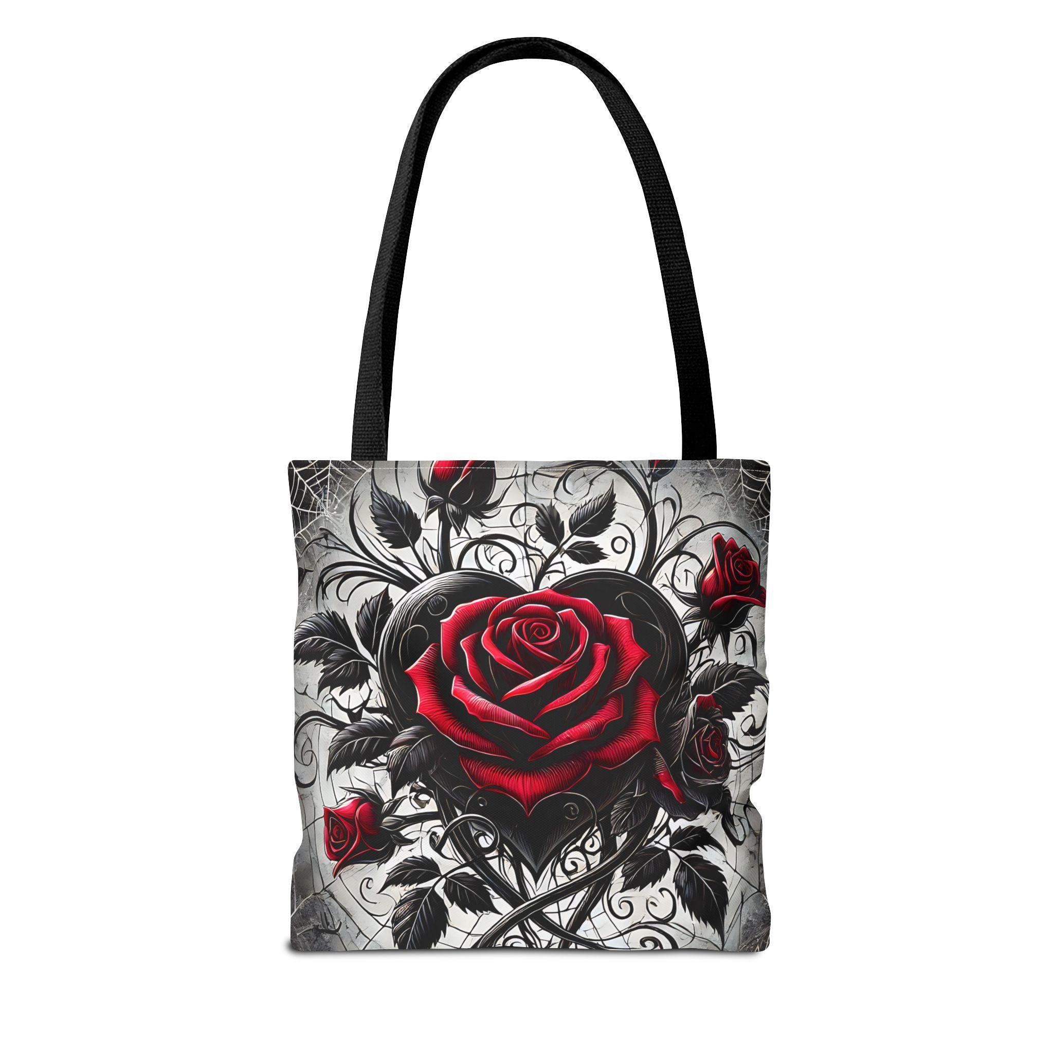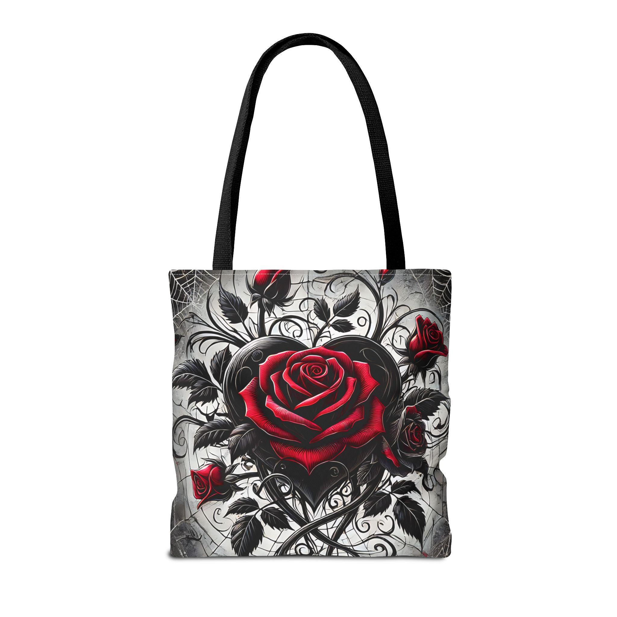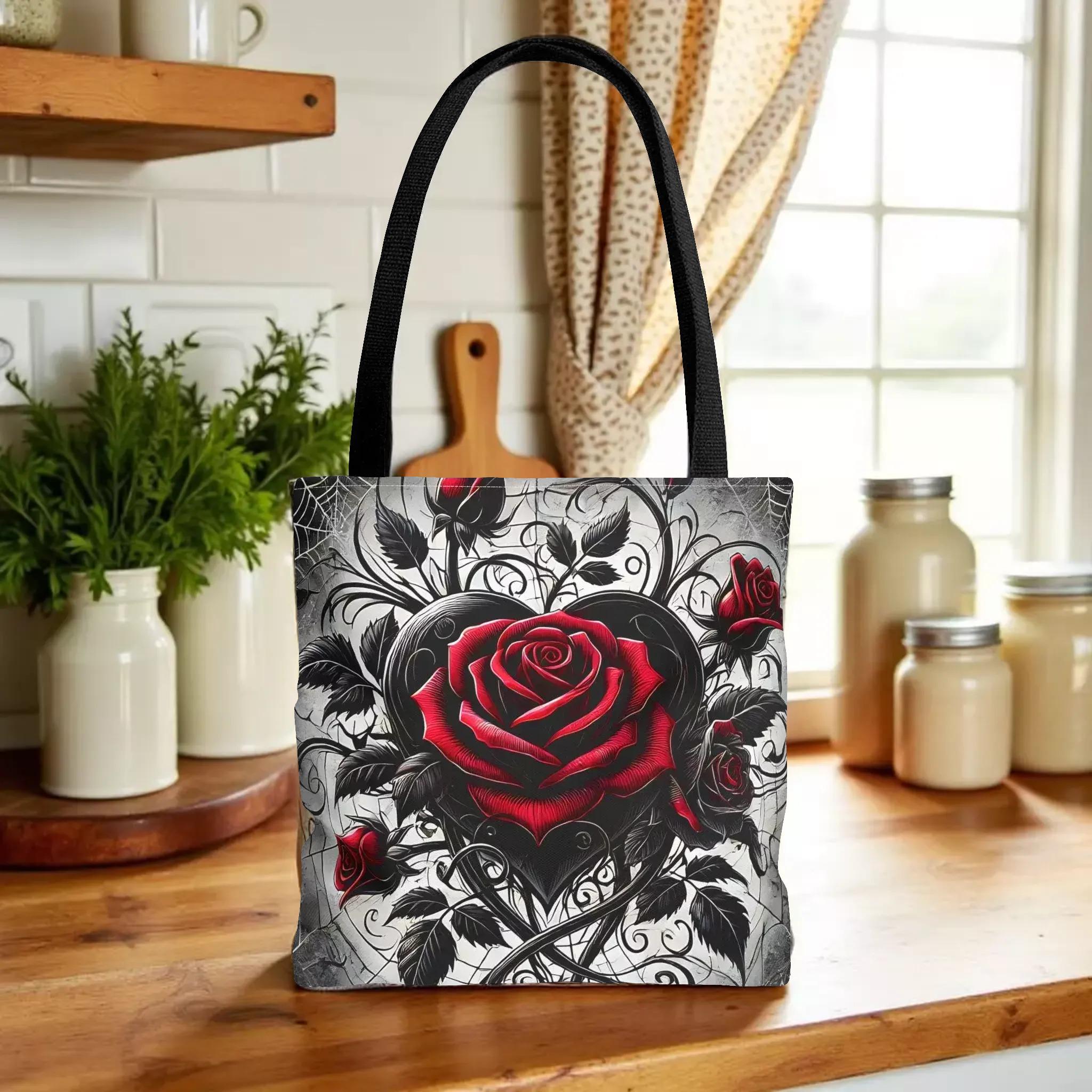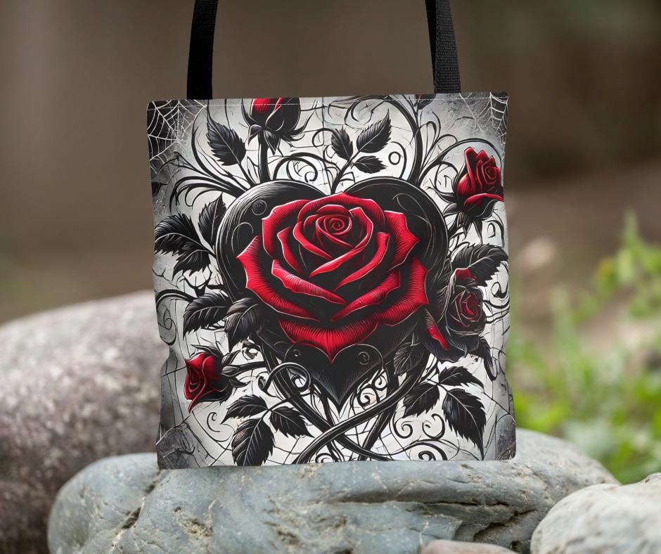 - **Design Excellence**: Adorned with an enchanting Gothic heart and roses design, this tote bag effortlessly blends elegance with edgy flair. It's not just a bag; it's a statement piece that reflects your unique personality and passion for gothic aesthetics.