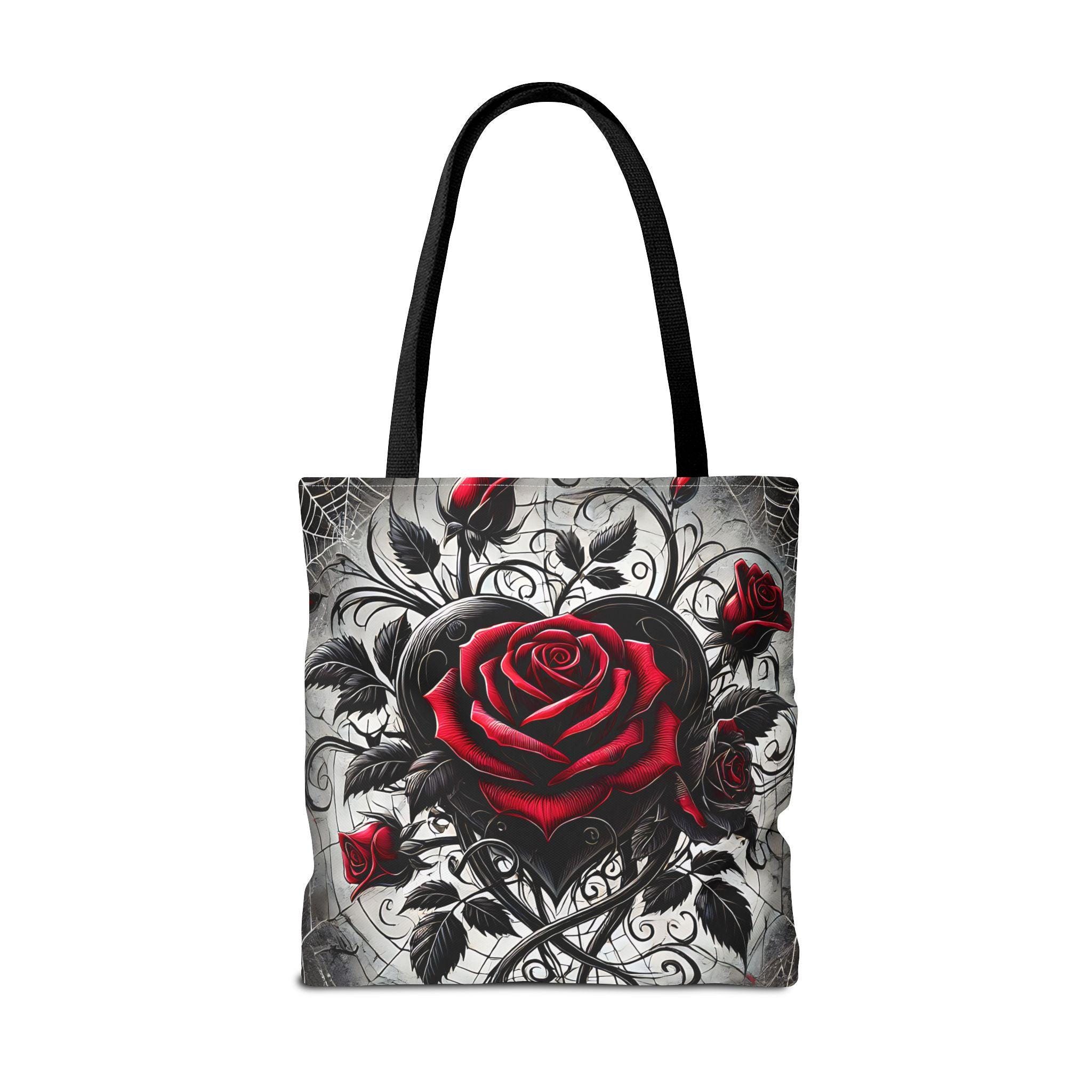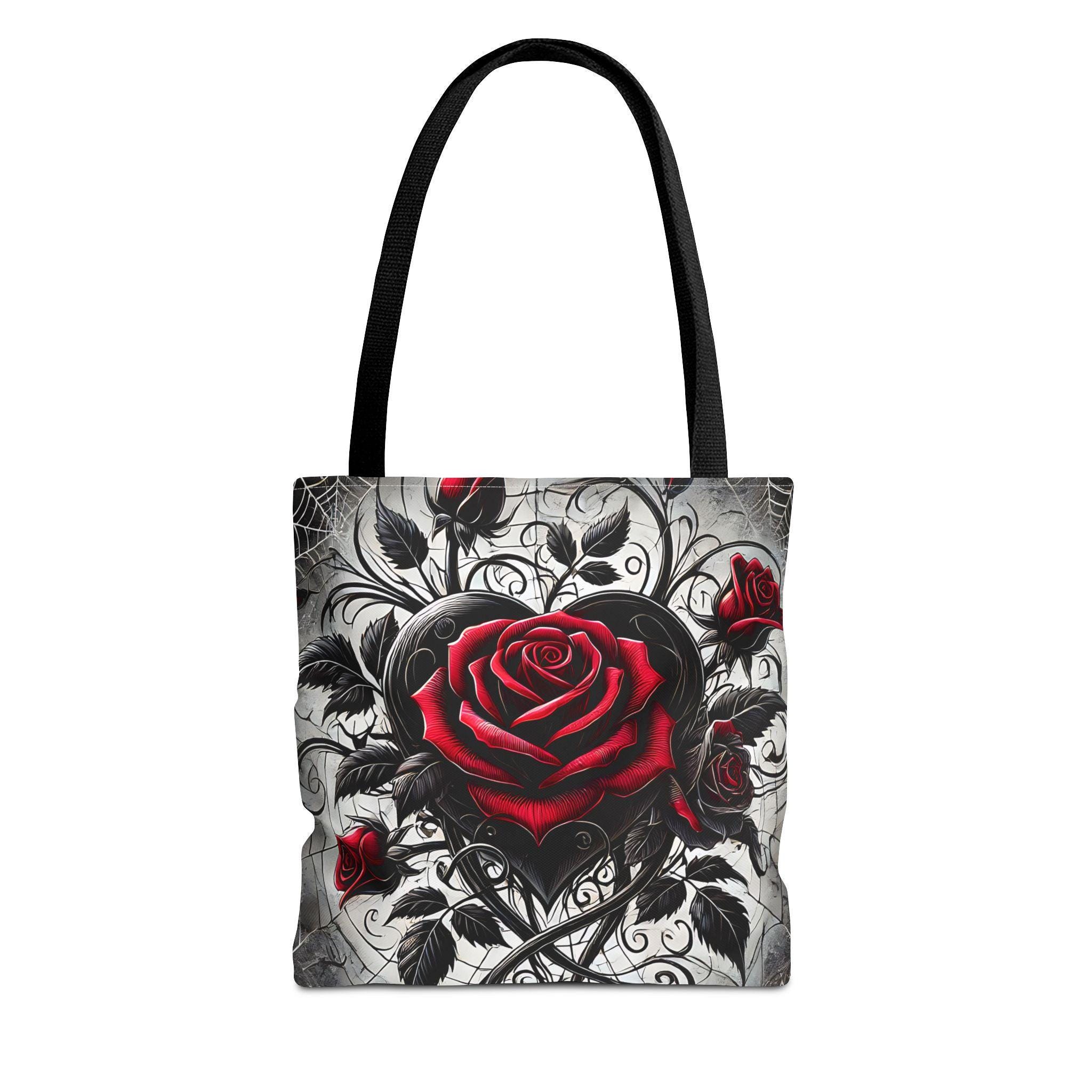 - **Design Excellence**: Adorned with an enchanting Gothic heart and roses design, this tote bag effortlessly blends elegance with edgy flair. It's not just a bag; it's a statement piece that reflects your unique personality and passion for gothic aesthetics.