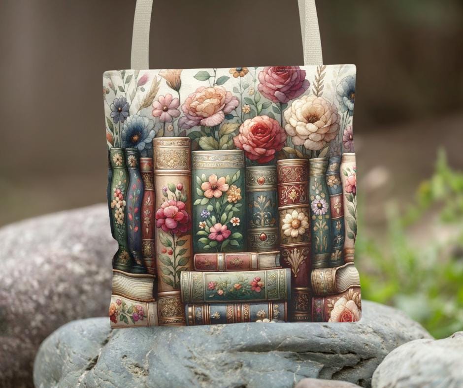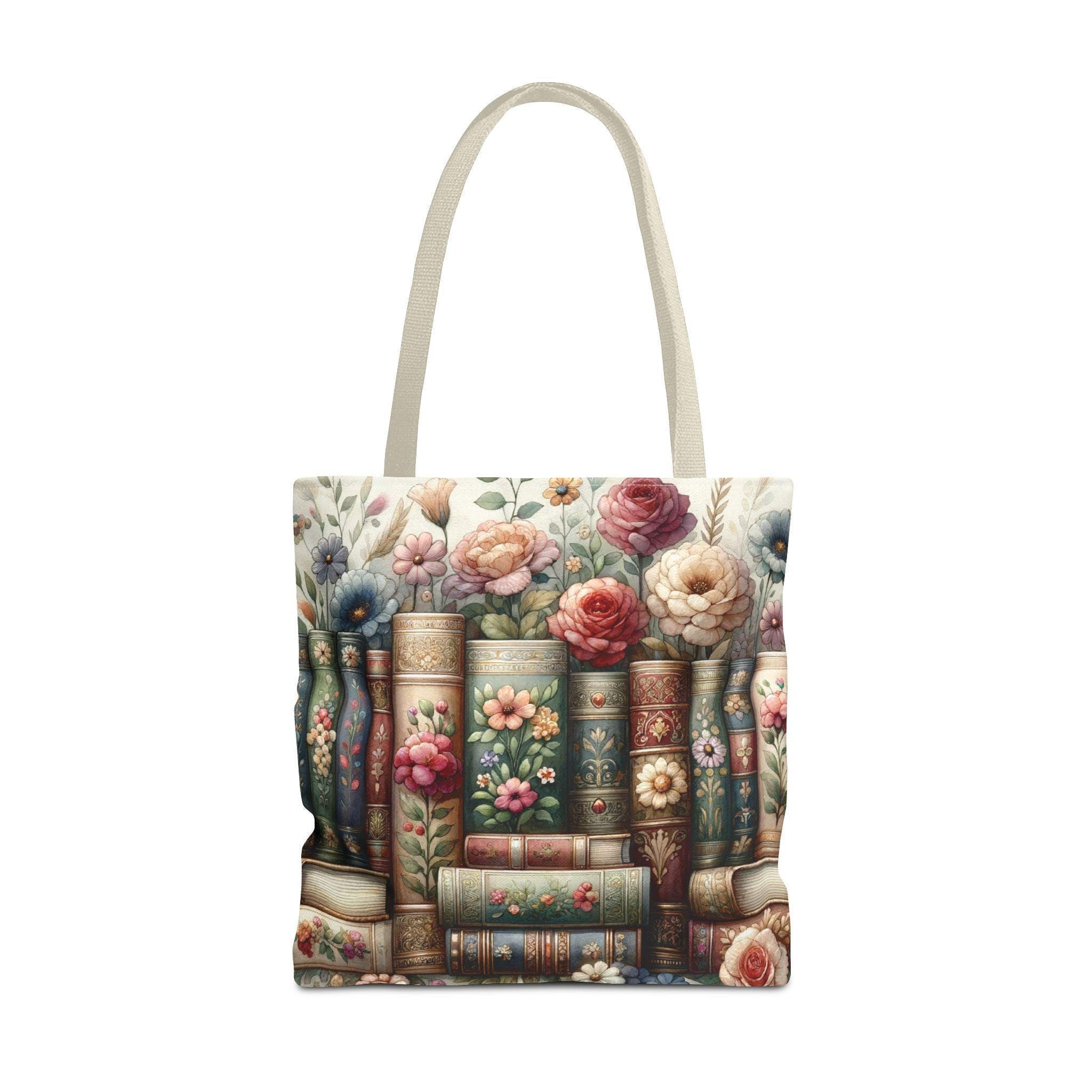 Books & Flowers Carryall Tote Bag is a stylish and durable tote bag perfect for carrying books, groceries, or any essentials. The design features books and flowers, creating a cozy and literary vibe. This tote bag is ideal for book lovers, students, teachers, and anyone who appreciates a touch of nature in their daily life. Perfect for gifting on birthdays, Valentine's Day, Mother's Day, or as a teacher appreciation gift.