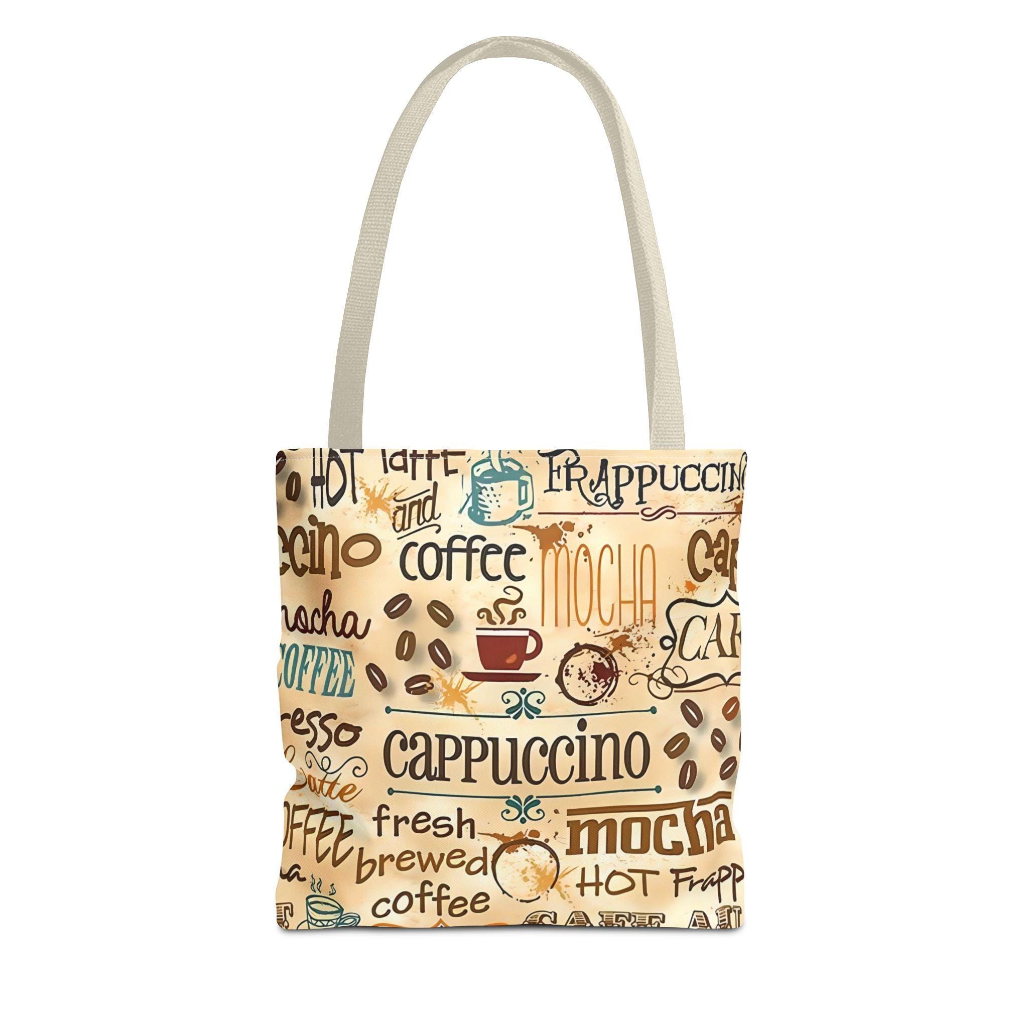 Coffee Enthusiast Carryall Tote Bag perfect for daily use. This tote bag is strong, durable, and spacious, making it ideal for carrying all your essentials with style. The black inner stitching and transparent thread details add a sleek touch, perfect for coffee lovers on the go. Great for grocery shopping, picnics, or as a gift for coffee enthusiasts.