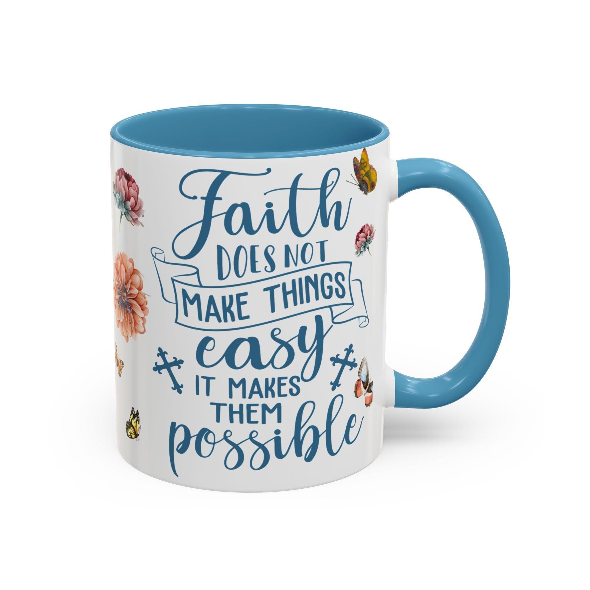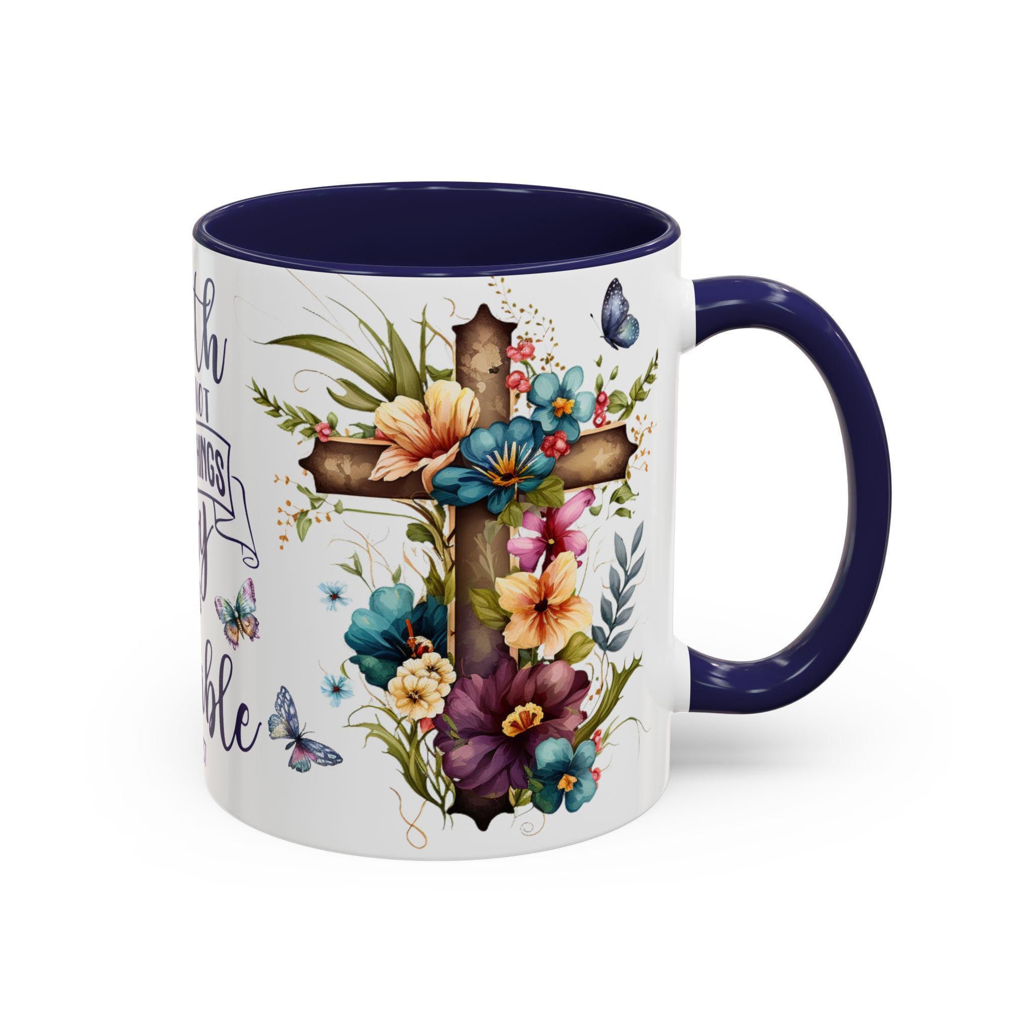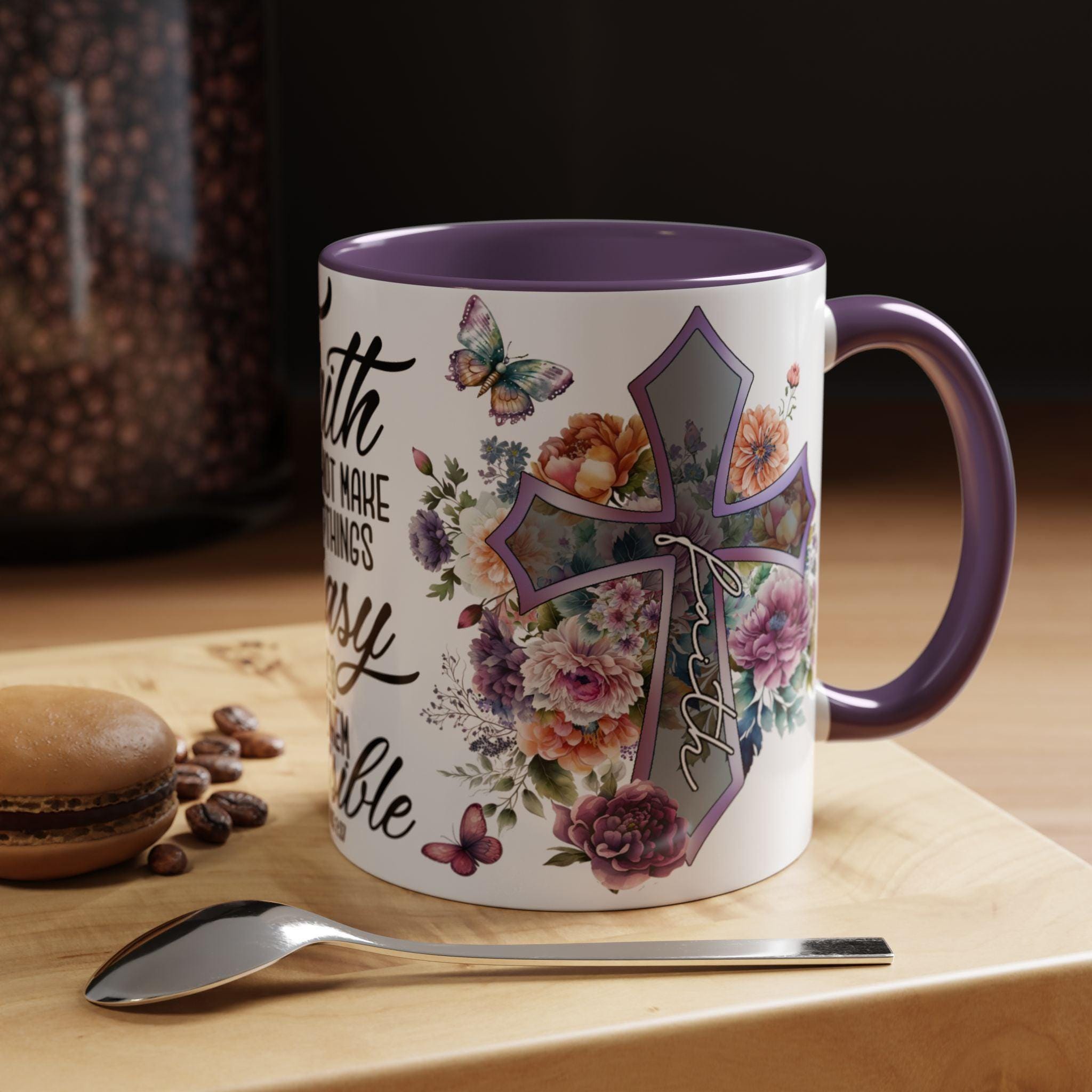 This scripture accent coffee mug is designed to inspire and uplift with its message of faith. Perfect for starting your day with a positive mindset or enjoying a cozy evening with a warm drink. Ideal for religious individuals or anyone seeking encouragement. Great for gifting on birthdays, holidays, or religious celebrations.