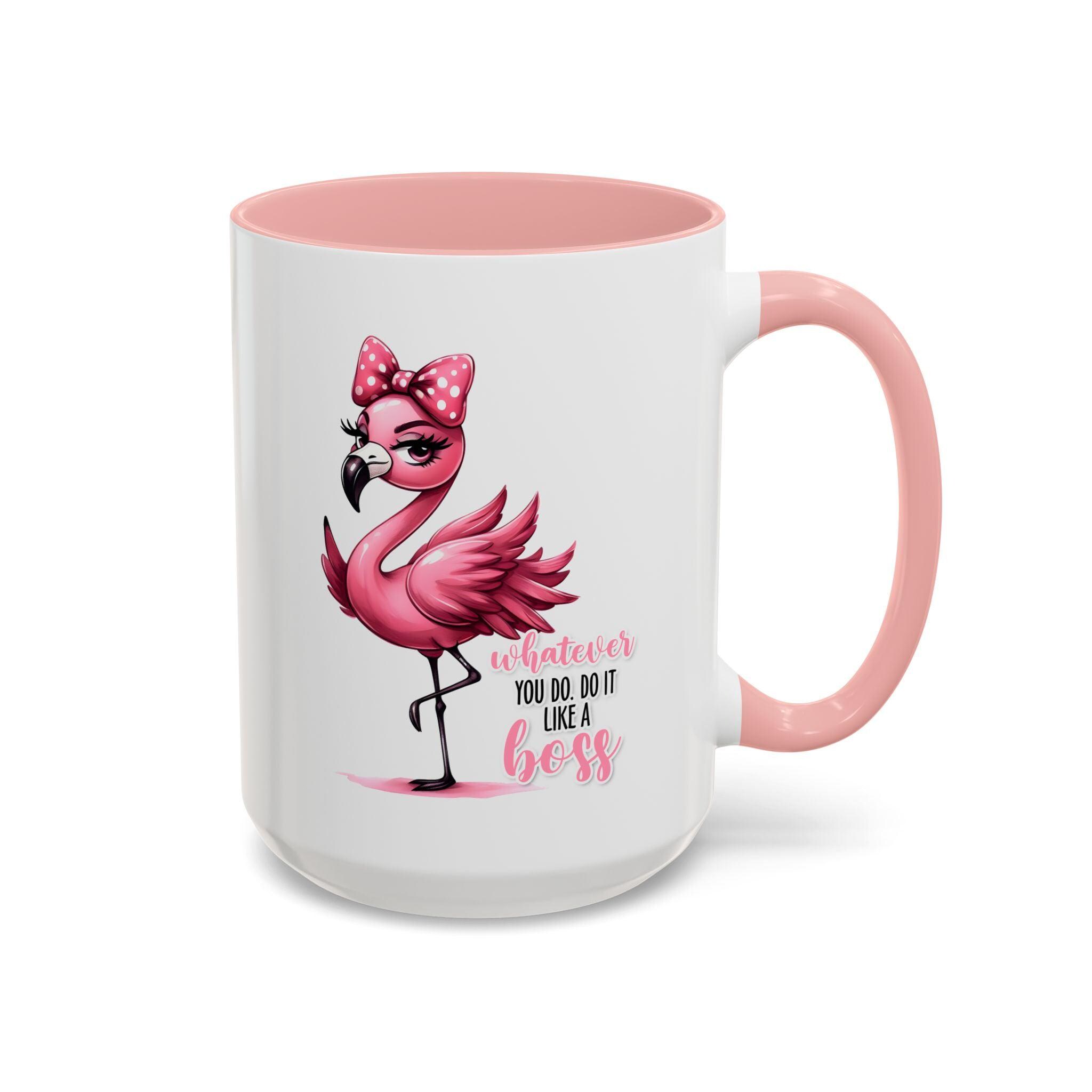 Introducing the Whatever You Do, Do It Like A Boss Flamingo Coffee Mug! If you're someone who takes charge like a flamingo in a flock of pigeons, then this mug is for you.