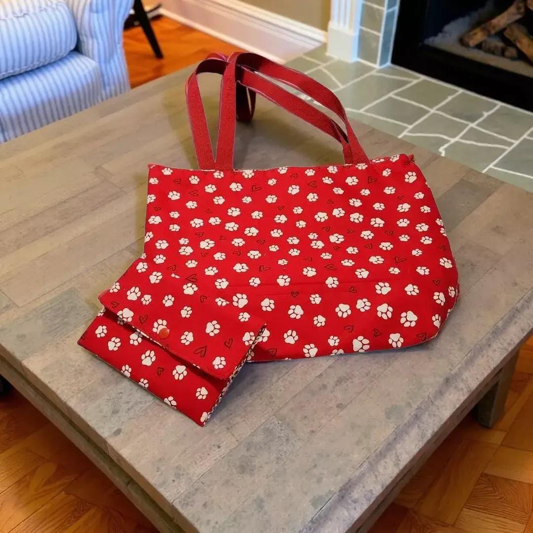 The playful red and white paw print design celebrates the unconditional love and joy our four-legged friends bring to our lives. It's not just a bag - it's a portable love letter to your canine companion!