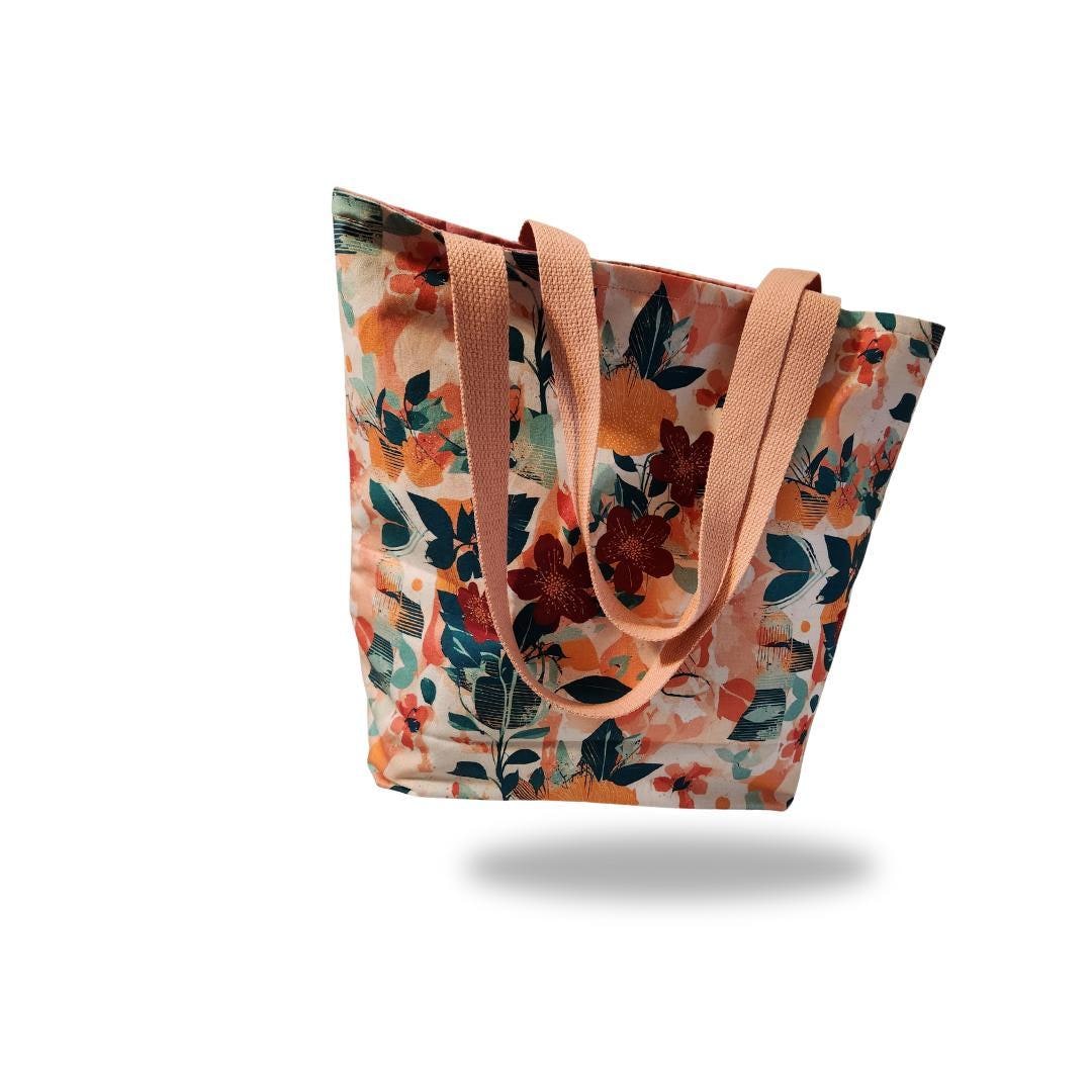 Discover your new favorite companion for every adventure with our Peach Floral Tote Bag – a delightful blend of functionality and feminine charm that will become your go-to accessory for daily life!