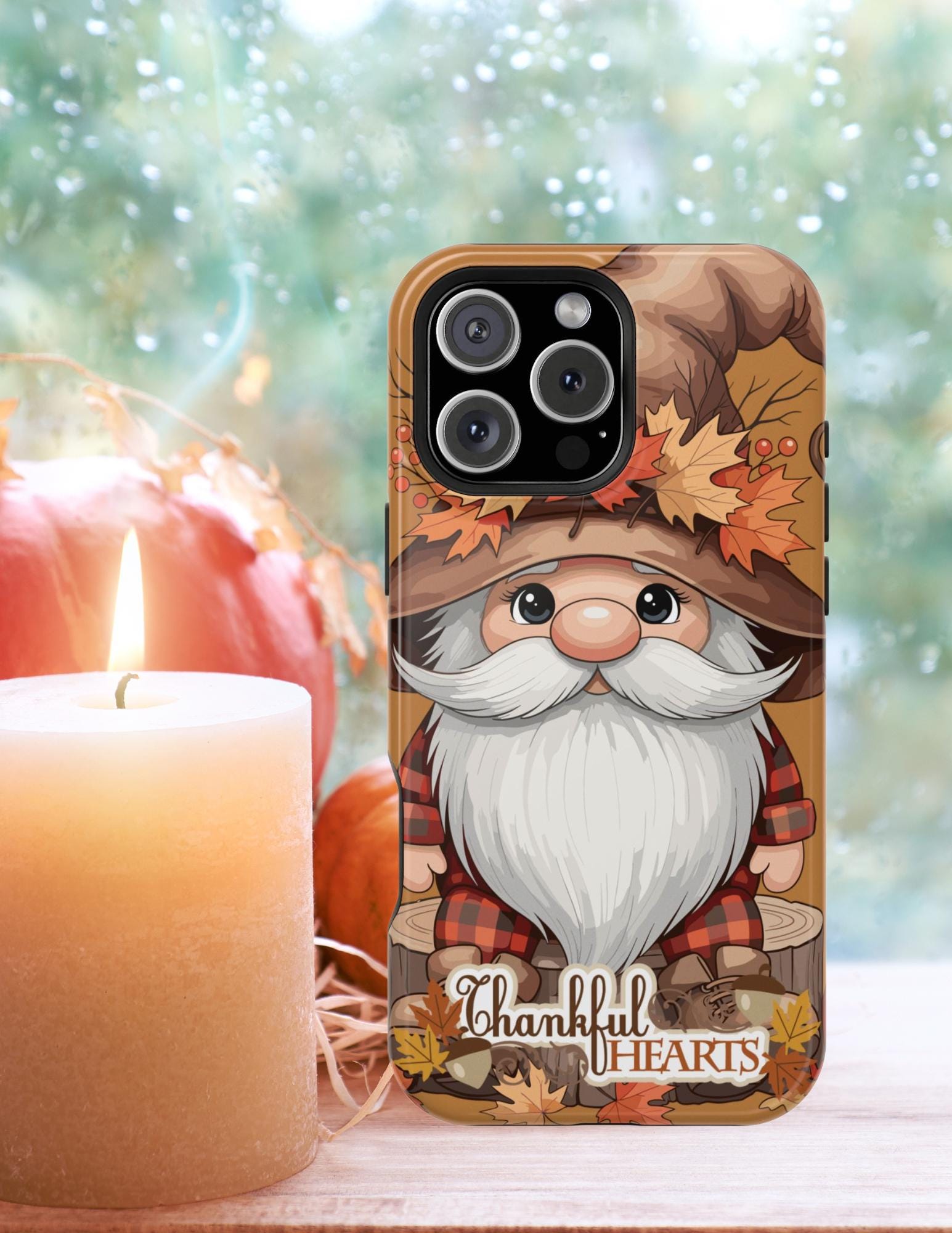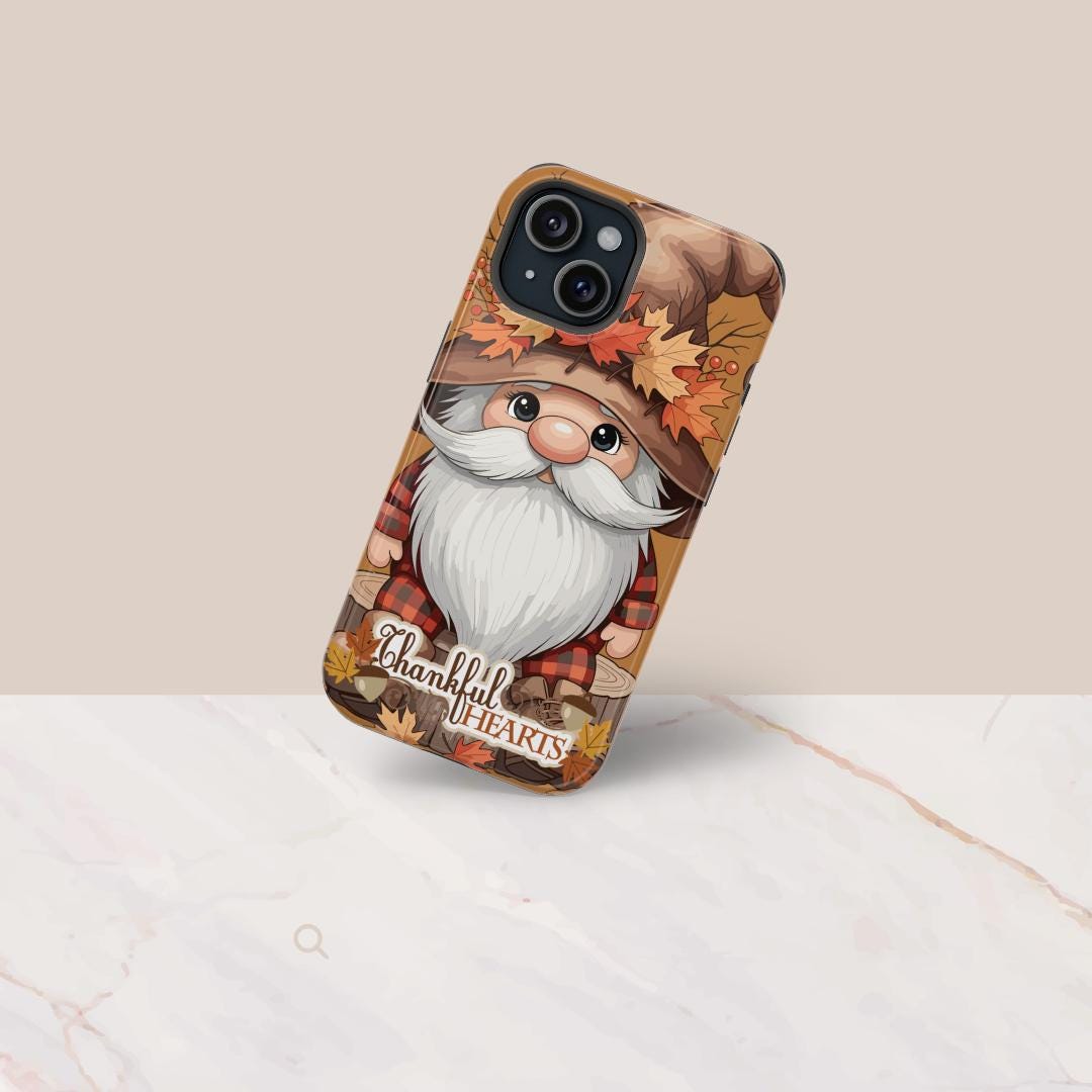 This impact-resistant case is the perfect blend of style and protection for your phone. With a whimsical design featuring a cheerful gnome amidst autumn leaves, it brings a warm, inviting vibe to your everyday tech. Ideal for those who appreciate unique and fun accessories, this case is perfect for anyone looking to showcase their personality. It's especially relevant during the fall season, making it a great gift for Thanksgiving, cozy gatherings, or just as a seasonal treat for loved ones. Whether you're at a family dinner or out enjoying the crisp autumn air, this case is a constant reminder to be thankful and festive!