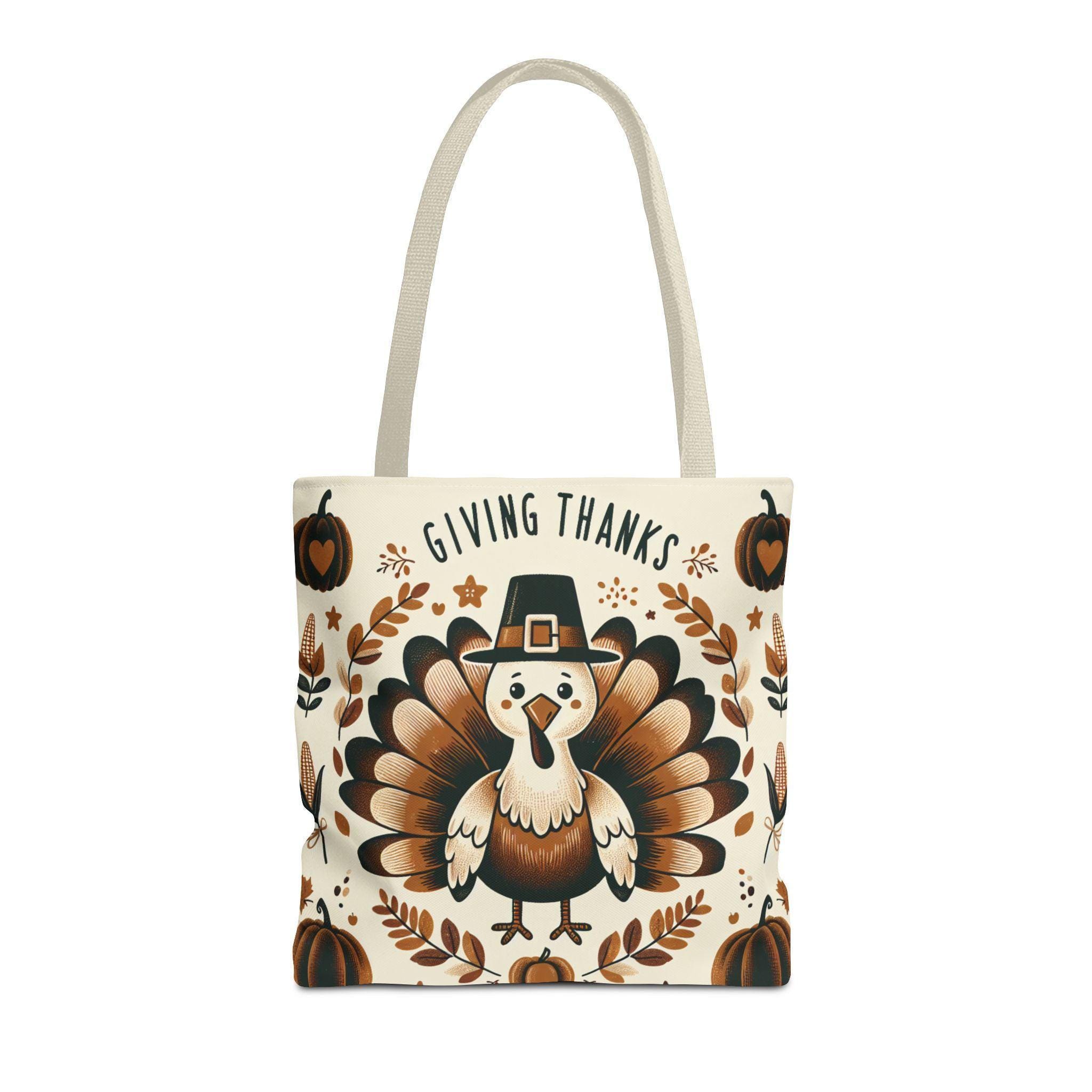 Embrace the warmth of autumn with this festive tote, designed to bring the thankful spirit to every outing. Featuring a whimsical turkey design in rich fall colors, this eco friendly carry bag perfectly captures the cozy vibes of the season. Whether you’re heading out for holiday shopping or looking for a seasonal gift idea, this charming tote adds a playful touch to your everyday style.