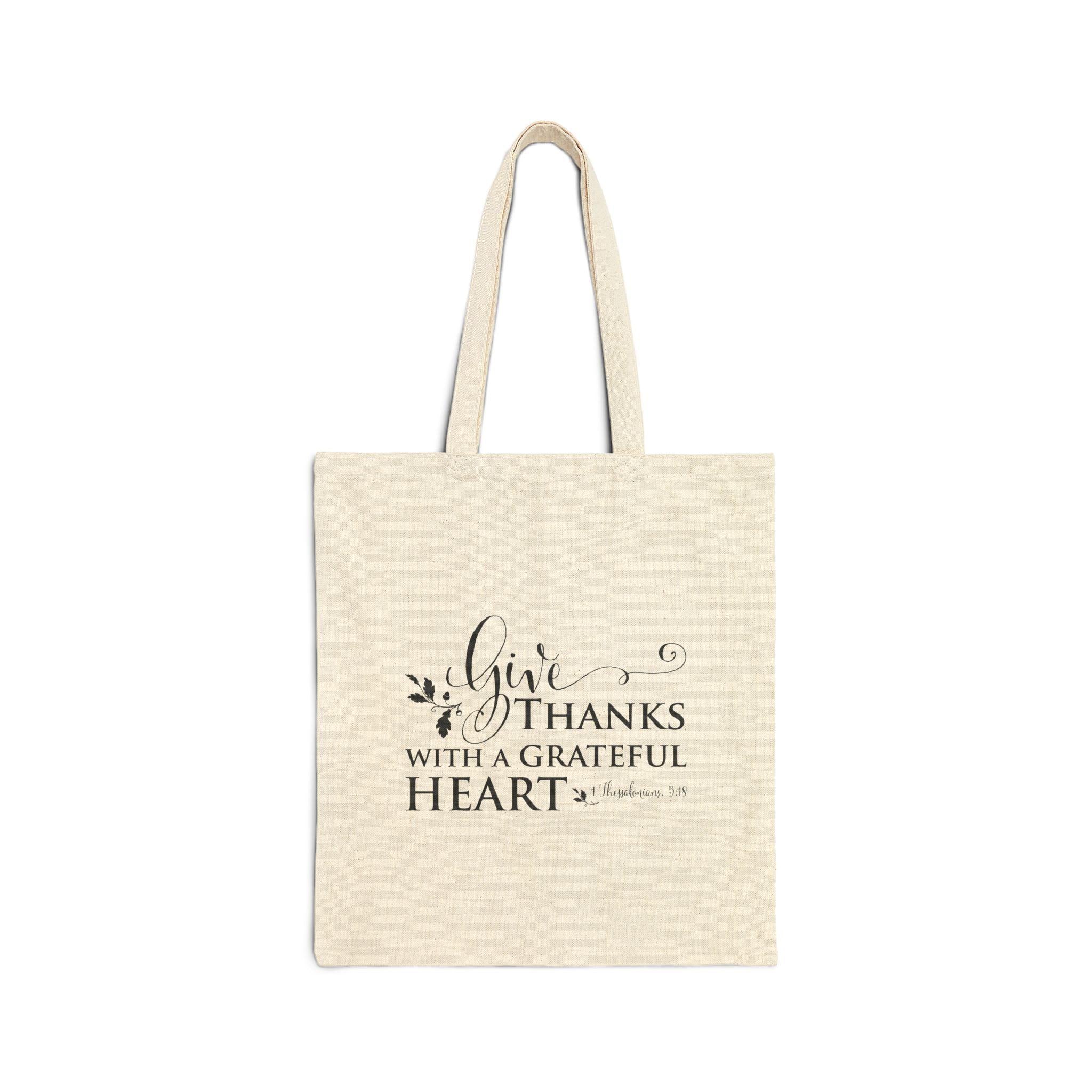 This Give Thanks With A Grateful Heart Cotton Canvas Tote Bag exudes a warm and thankful atmosphere, perfect for the holiday season or year-round use. It is relevant to those who are looking for a stylish and practical way to carry their belongings while spreading a positive message.