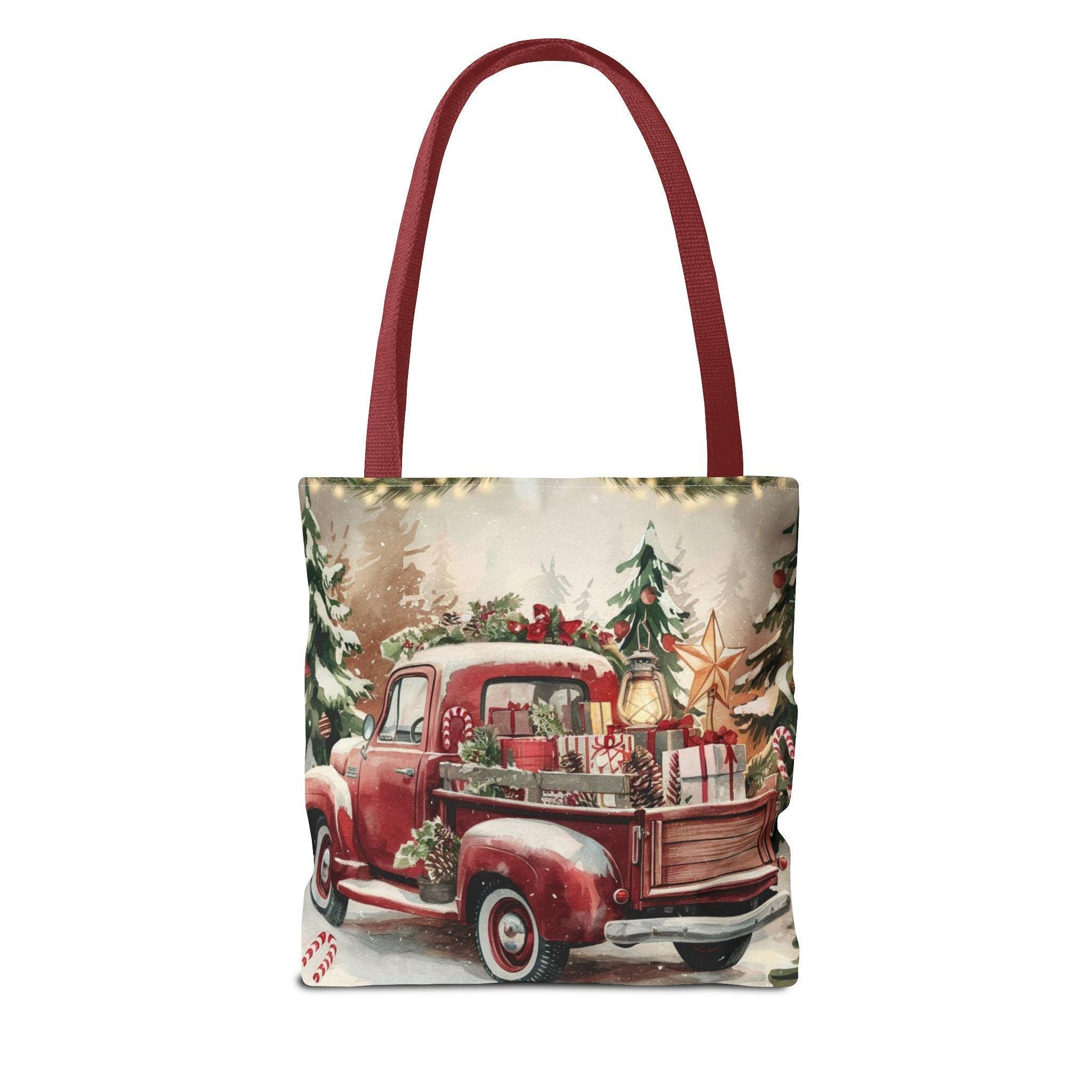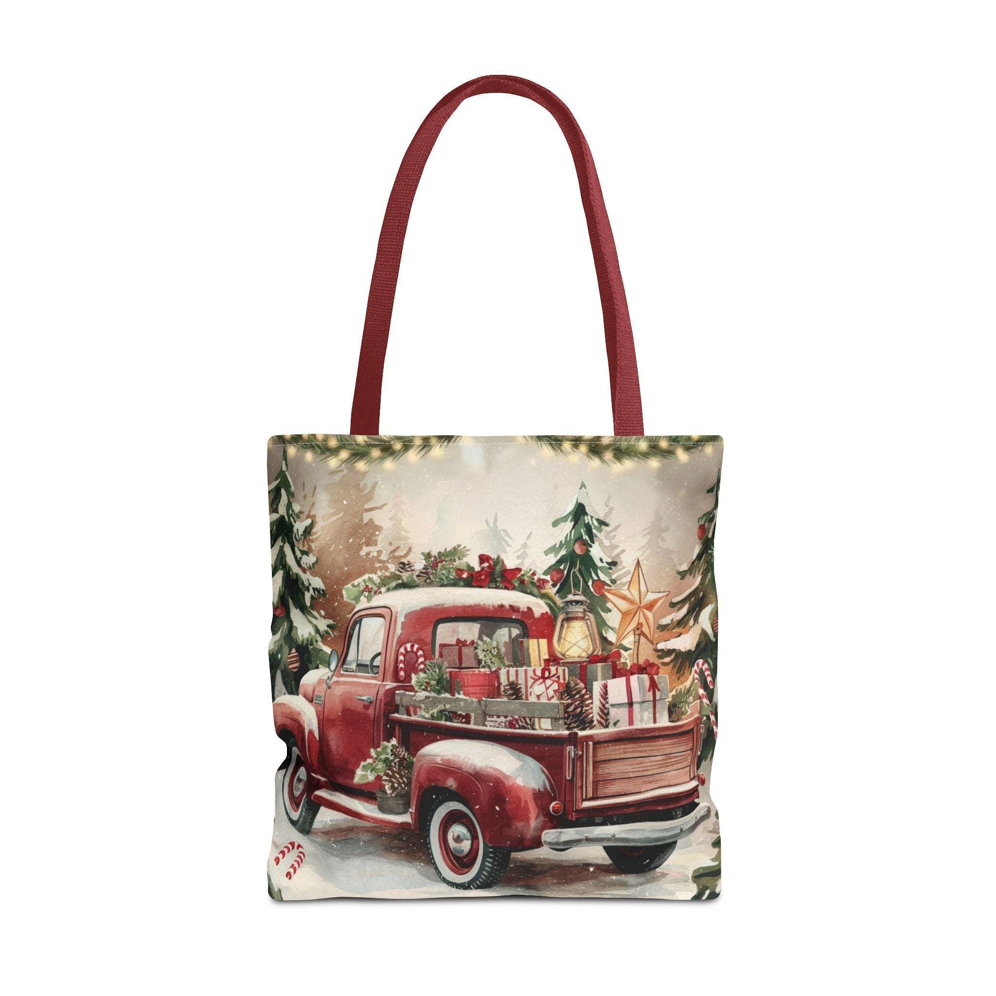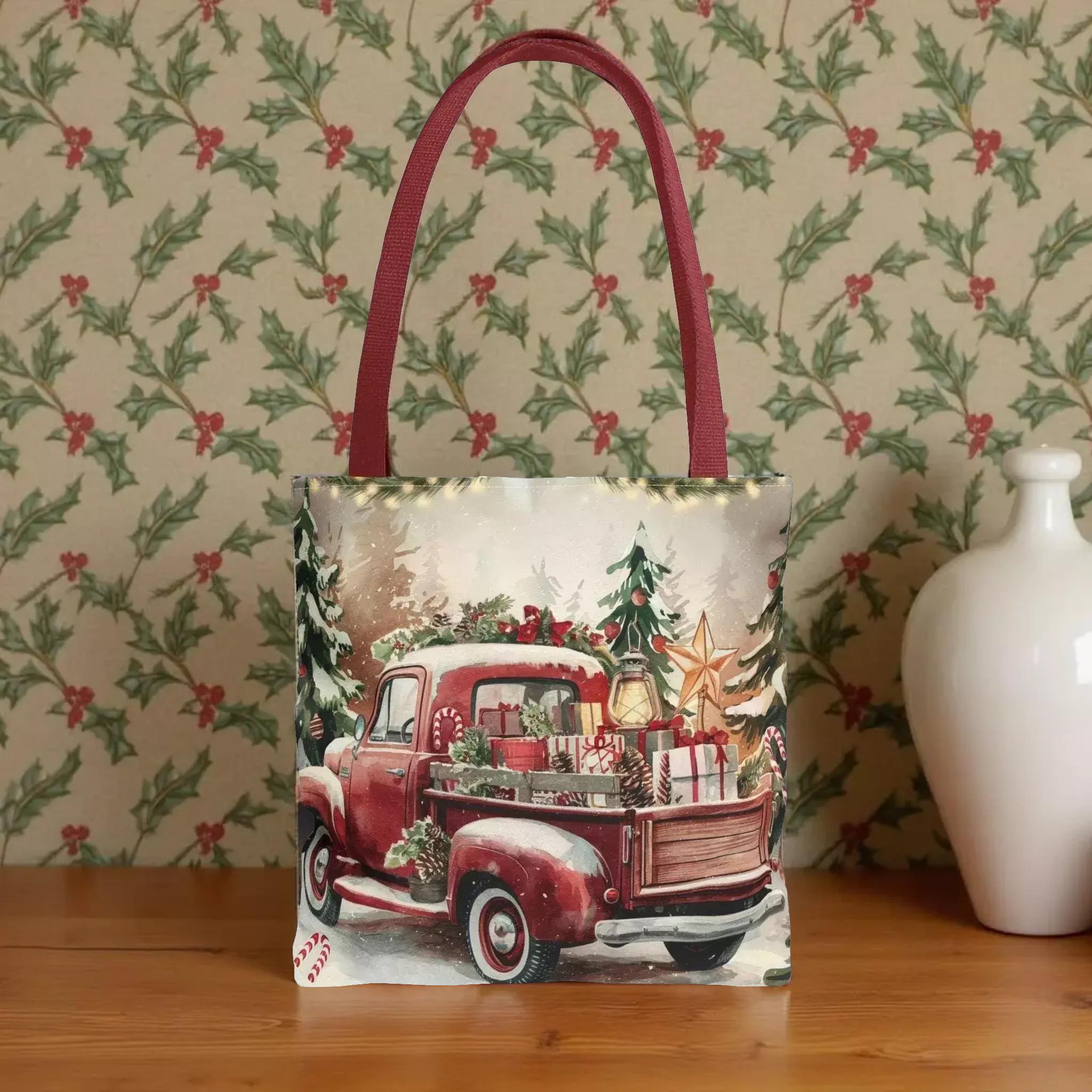 This Christmas Truck Gifts Carryall Tote Bag is perfect for carrying your holiday shopping or gifts. The festive design gives a cheerful and joyful vibe, making it a great accessory for the holiday season. It is relevant to anyone looking for a cute and practical tote bag for Christmas shopping or gift-giving occasions.