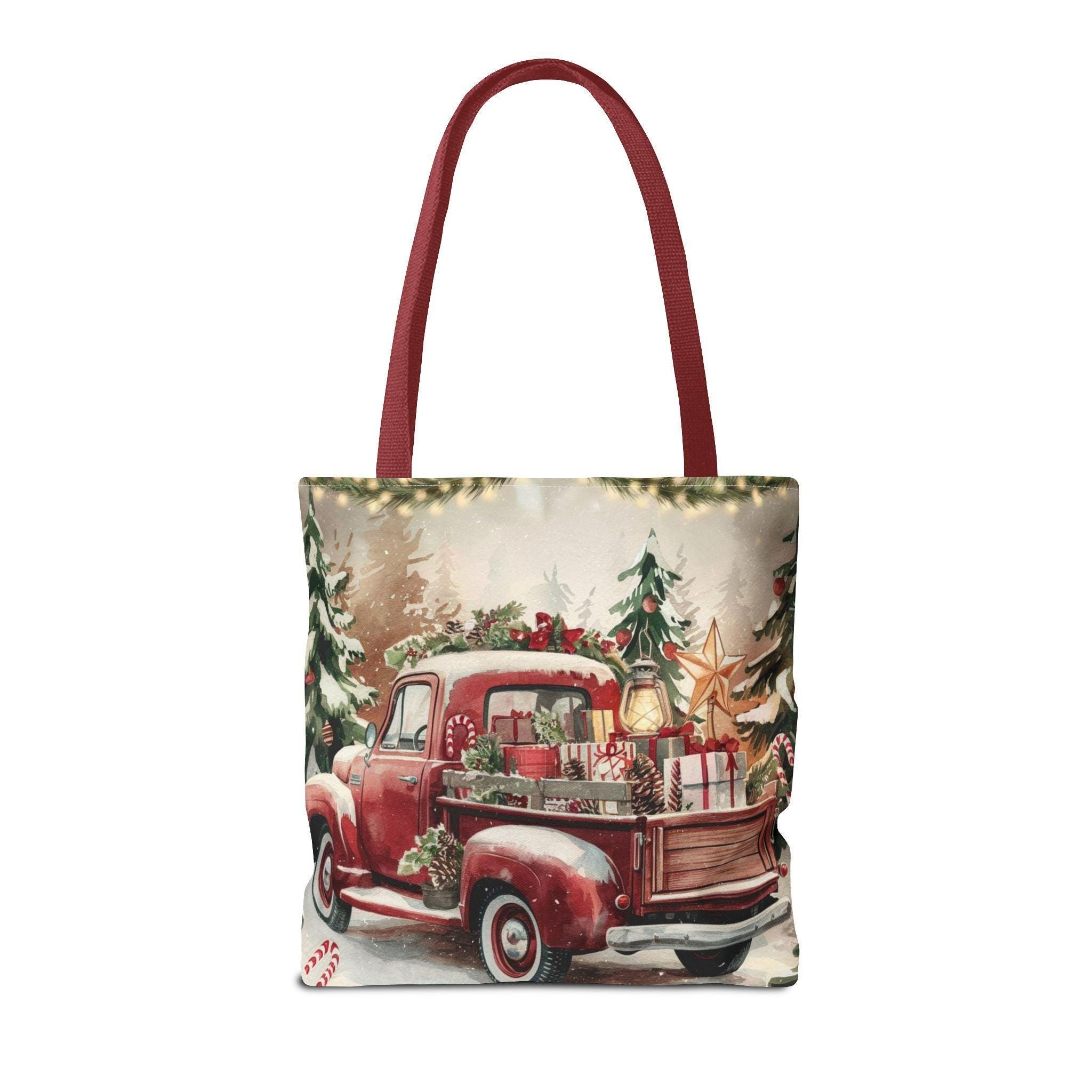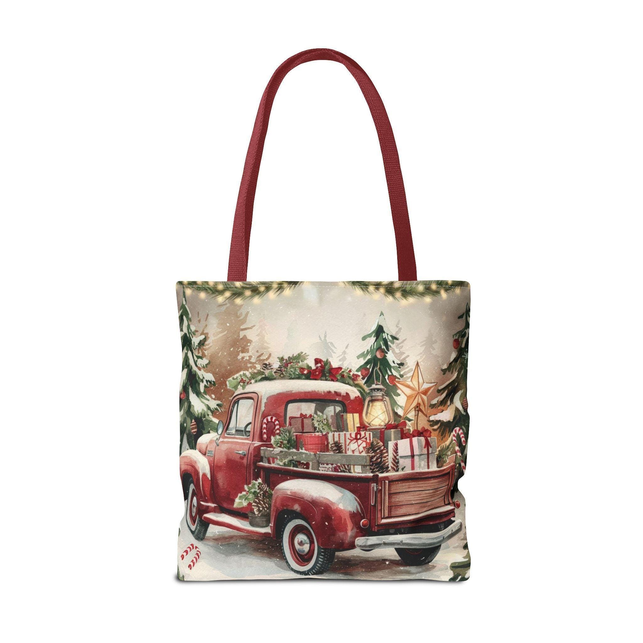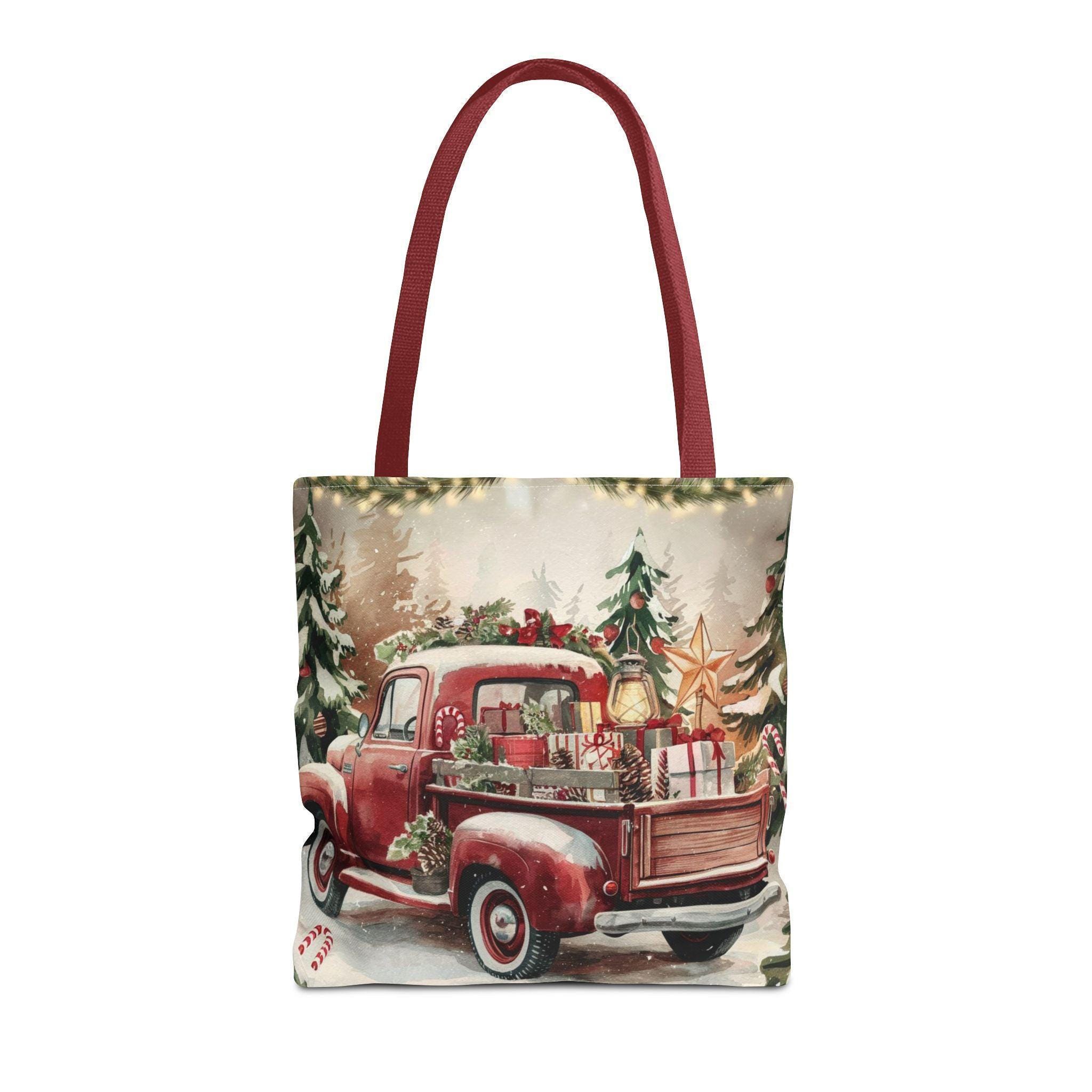 This Christmas Truck Gifts Carryall Tote Bag is perfect for carrying your holiday shopping or gifts. The festive design gives a cheerful and joyful vibe, making it a great accessory for the holiday season. It is relevant to anyone looking for a cute and practical tote bag for Christmas shopping or gift-giving occasions.