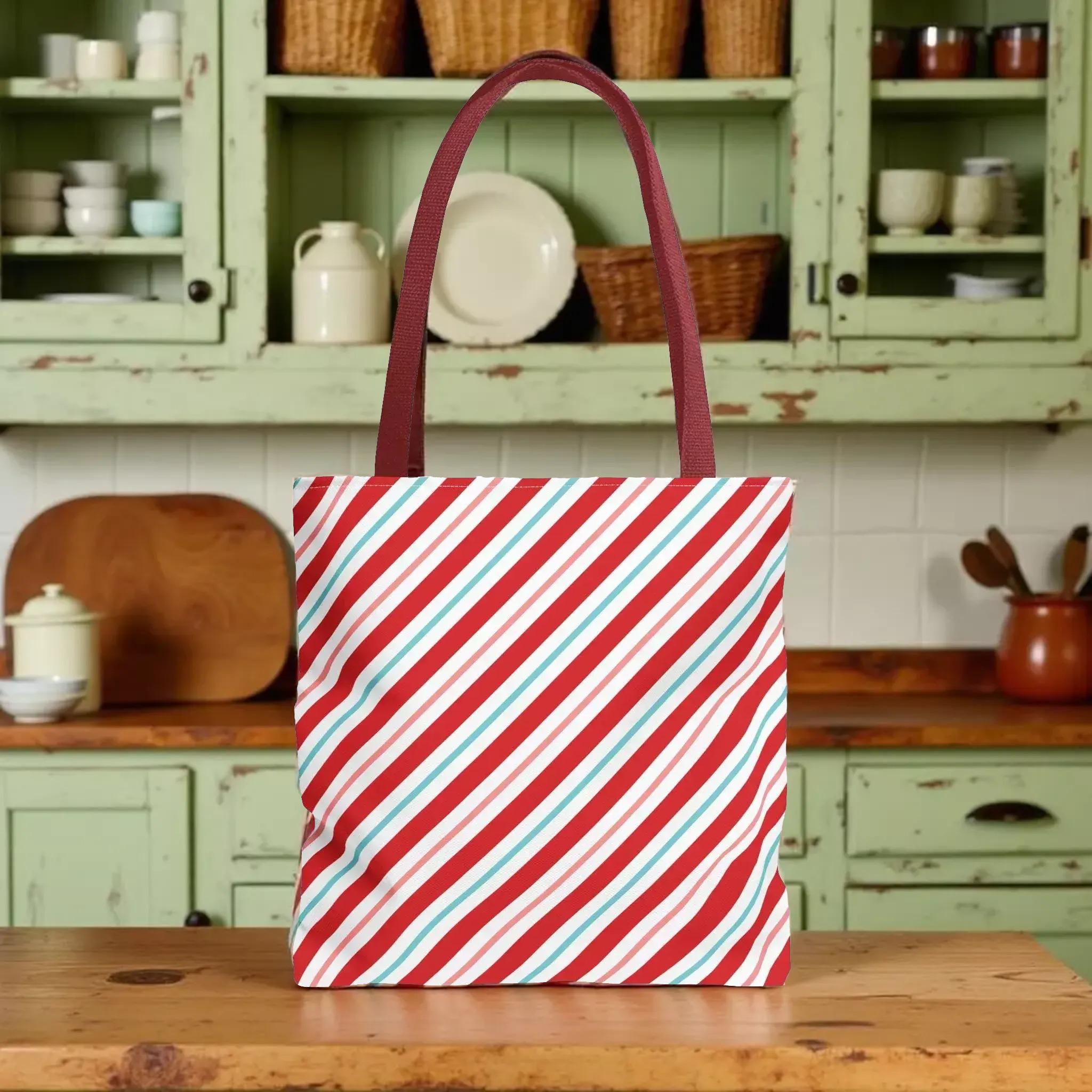 Embrace the holiday spirit with this festive tote bag, designed to brighten your everyday errands and special occasions alike. Crafted with eco friendly materials and adorned with vibrant stripes, this stylish tote bag is a perfect Christmas gift bag that combines cheerful design with practical use. Whether you're heading to the market or packing for a beach day, this holiday tote bag offers a joyful and spacious solution.
