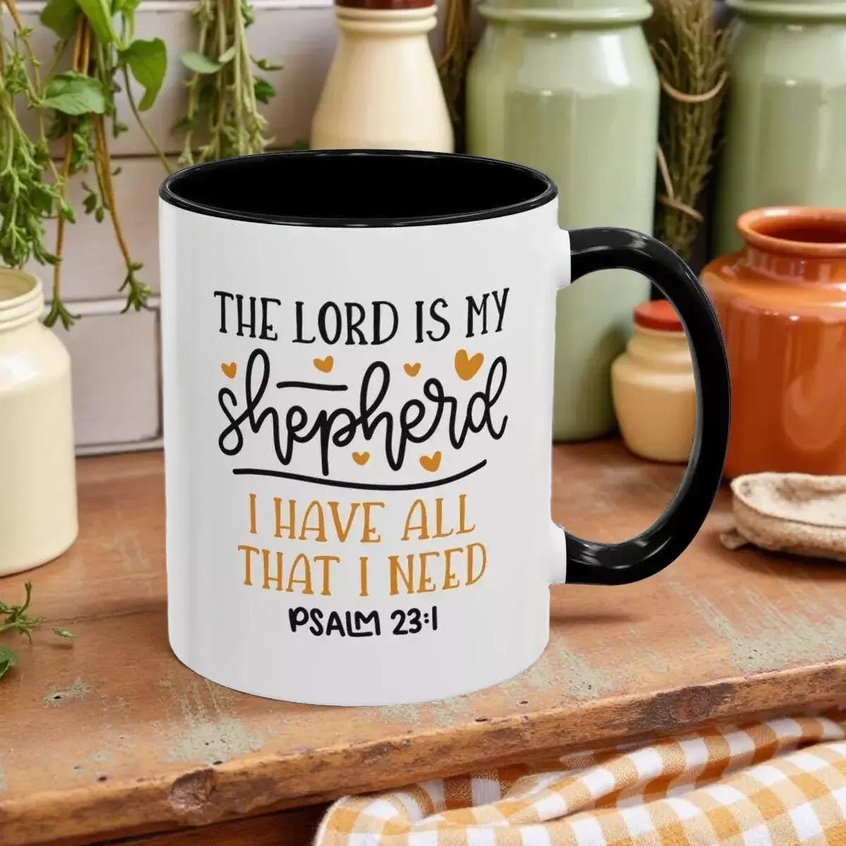 Start your day with a moment of peace and inspiration using this beautiful Christian accent mug, thoughtfully designed to uplift your spirit with the scripture quote "The Lord Is My Shepherd I Have All That I Need." This two-tone ceramic mug adds a splash of color to your kitchen routine, blending faith and functionality seamlessly. Perfect for those who cherish meaningful coffee mugs, it brings comfort and encouragement with every sip.