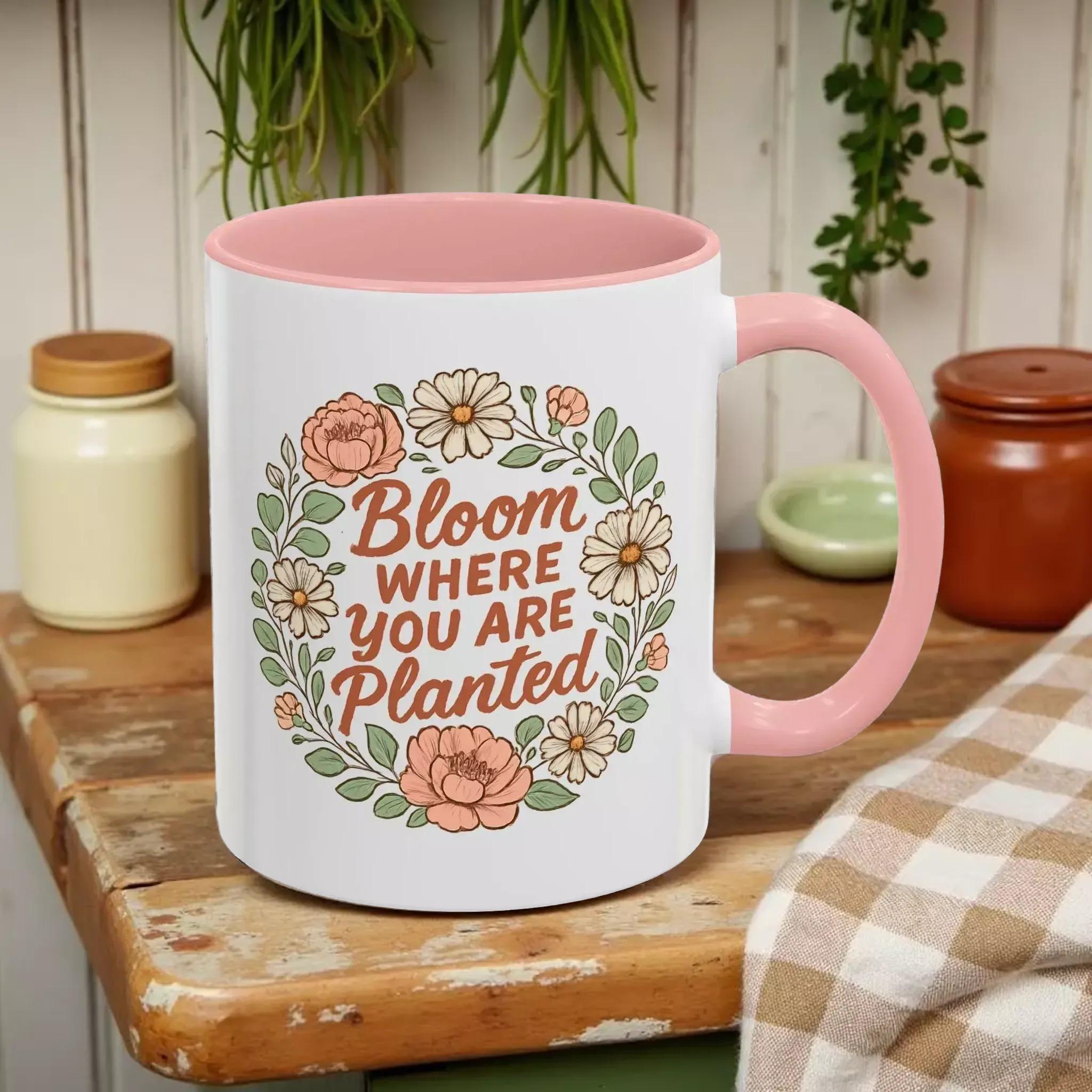 This mug’s cheerful bloom where you are planted message makes it an uplifting companion for daily moments.