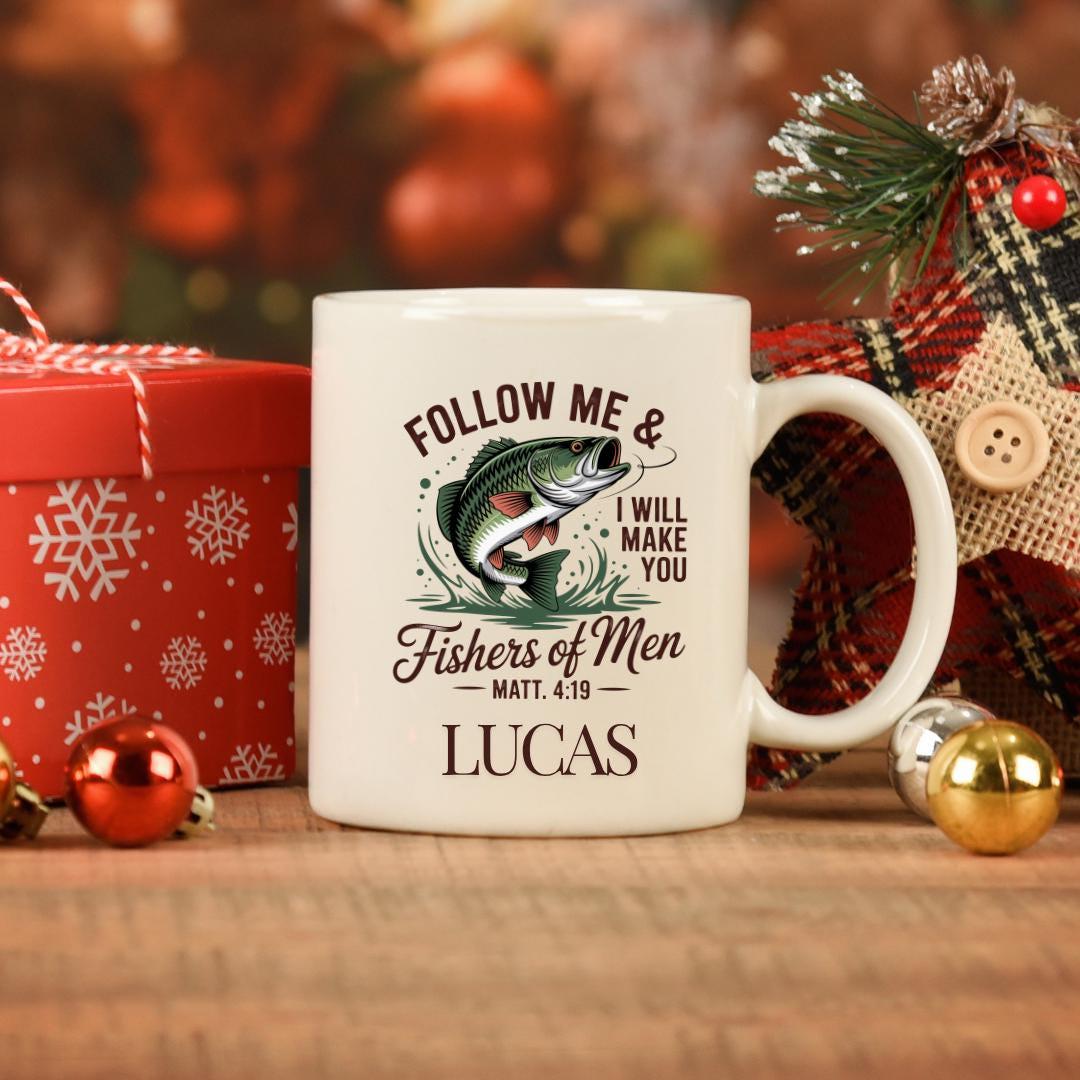 Begin your mornings with a warm embrace of faith and inspiration through this personalized Christian gift mug, designed especially for those who cherish scripture and the peaceful joy of fishing. Featuring a heartfelt fishing design and the uplifting Matthew 4:19 scripture quote, this mug brings a meaningful touch to your daily coffee or tea ritual. Perfect as a Christmas coffee mug or a thoughtful birthday gift, it celebrates both spirituality and nature in vibrant style.