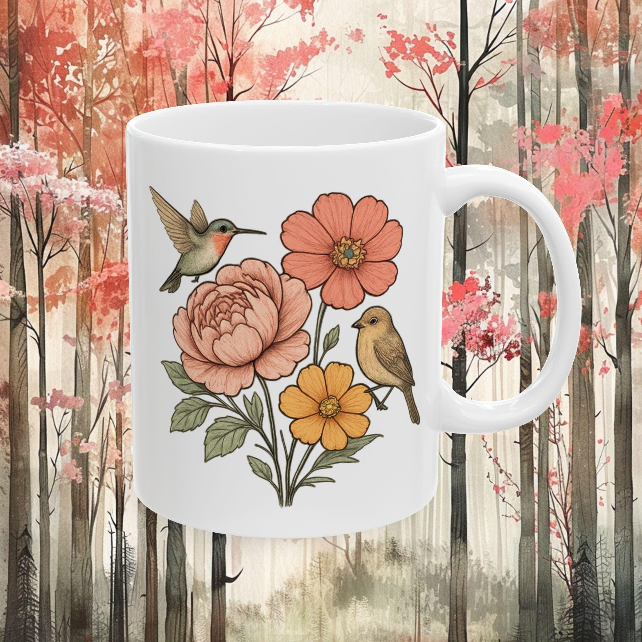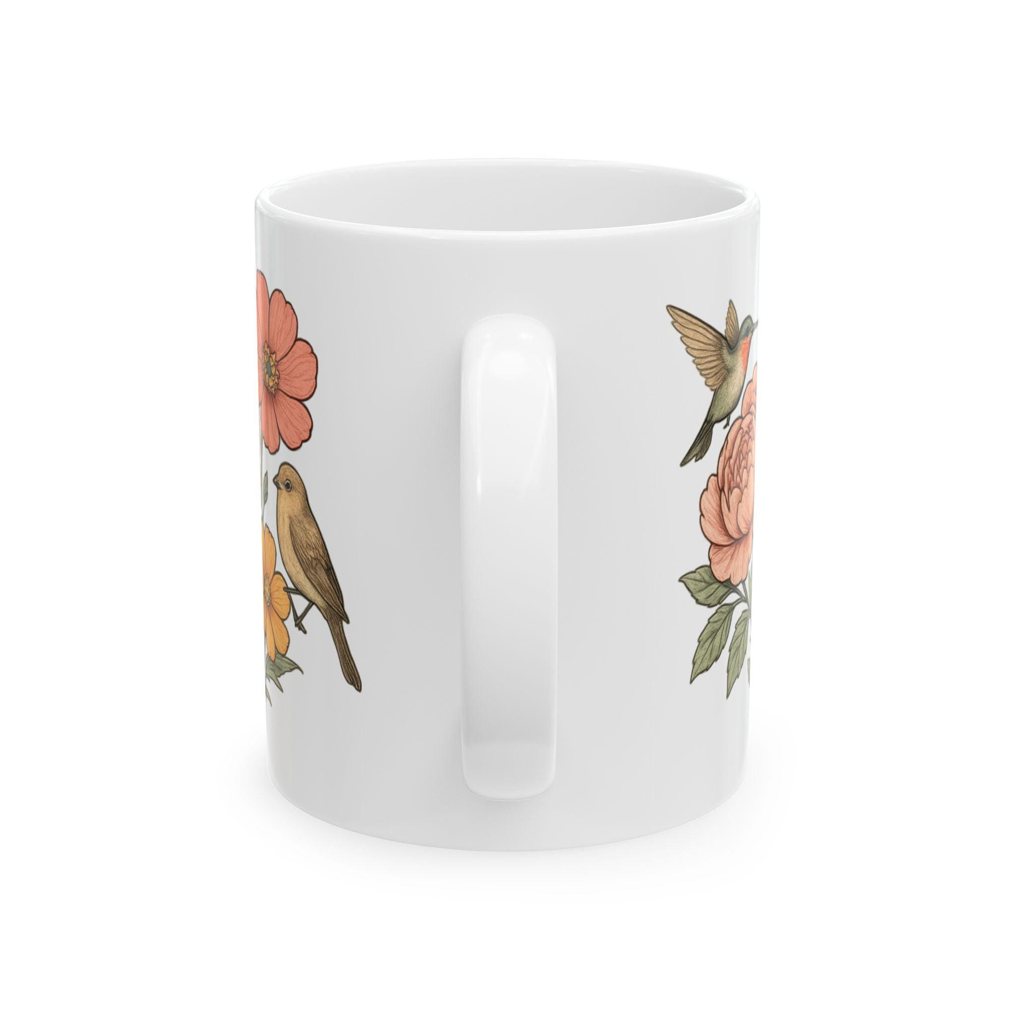 Start your day with the serene beauty of nature captured in this artisan ceramic mug, where delicate bird art and botanical themes intertwine to create a truly elegant mug design. Perfect for sipping your favorite coffee or tea, this floral design mug brings a touch of springtime decor to your home or office. Whether you're treating yourself or searching for a thoughtful gift for her, this eco friendly mug blends style and function effortlessly.