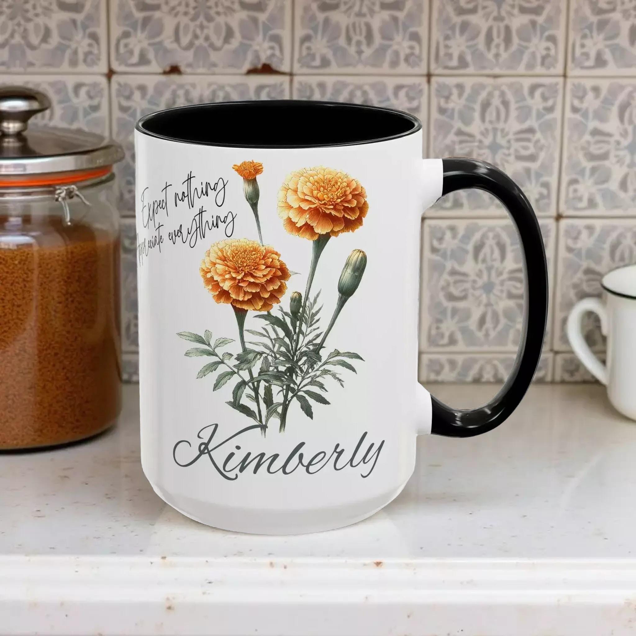 Start your day with a personalized touch using this beautifully crafted coffee cup, designed to celebrate your birth month flower with vibrant colors and crisp printing. Whether you're searching for a unique birthday present or a thoughtful holiday gift, this custom mug adds warmth and personality to every sip. Perfect for coffee lovers who appreciate a one-of-a-kind design that brightens their morning routine.