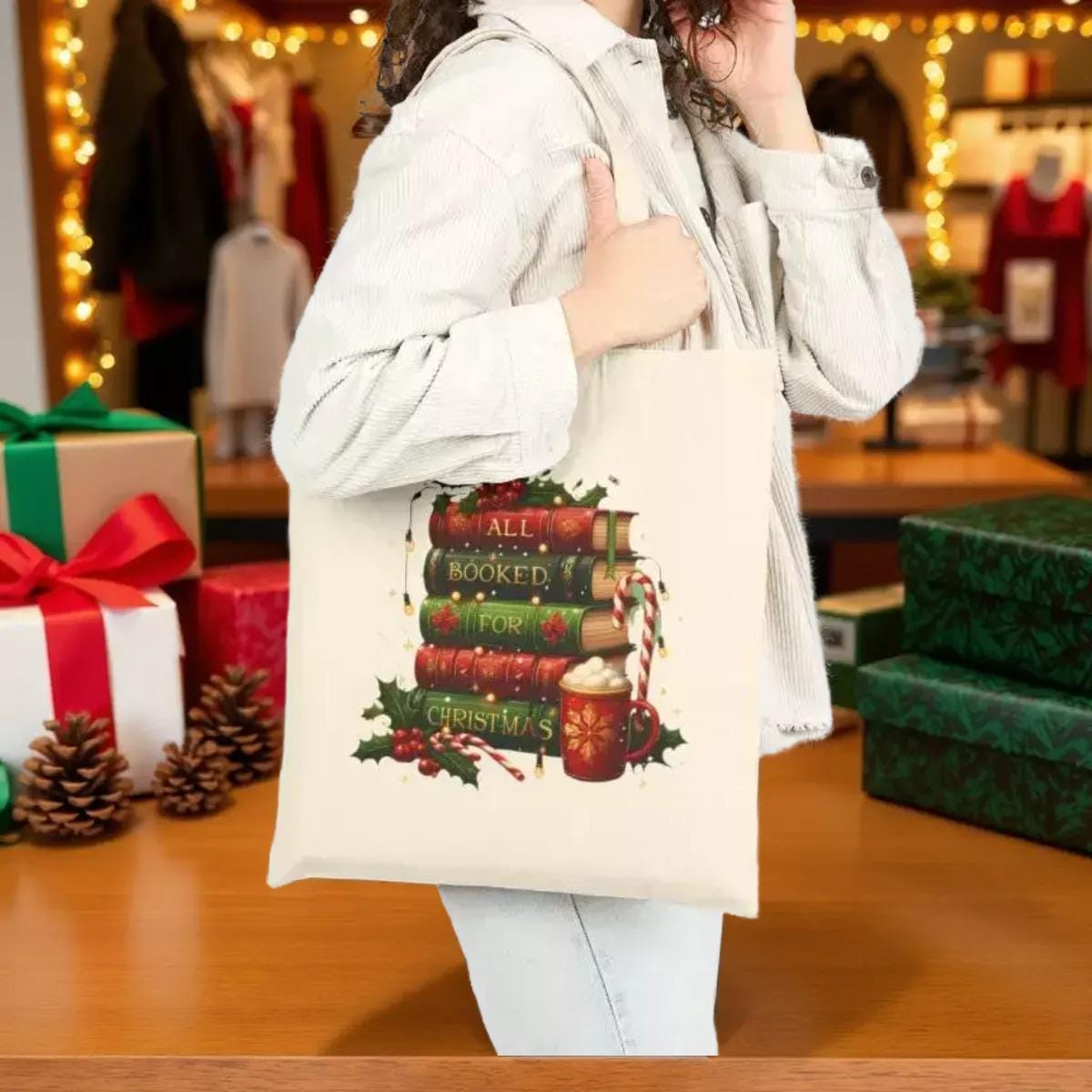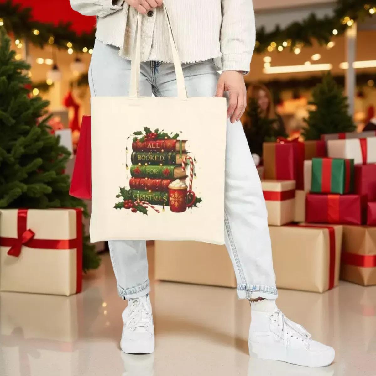 For book lovers and holiday enthusiasts alike, this cotton canvas tote bag is a charming and practical companion. Designed with festive elements that evoke warmth and joy, it’s perfect for carrying your favorite books, holiday gifts, or everyday essentials. Crafted to be reusable and durable, this carryall blends style with sustainability for all your seasonal adventures.