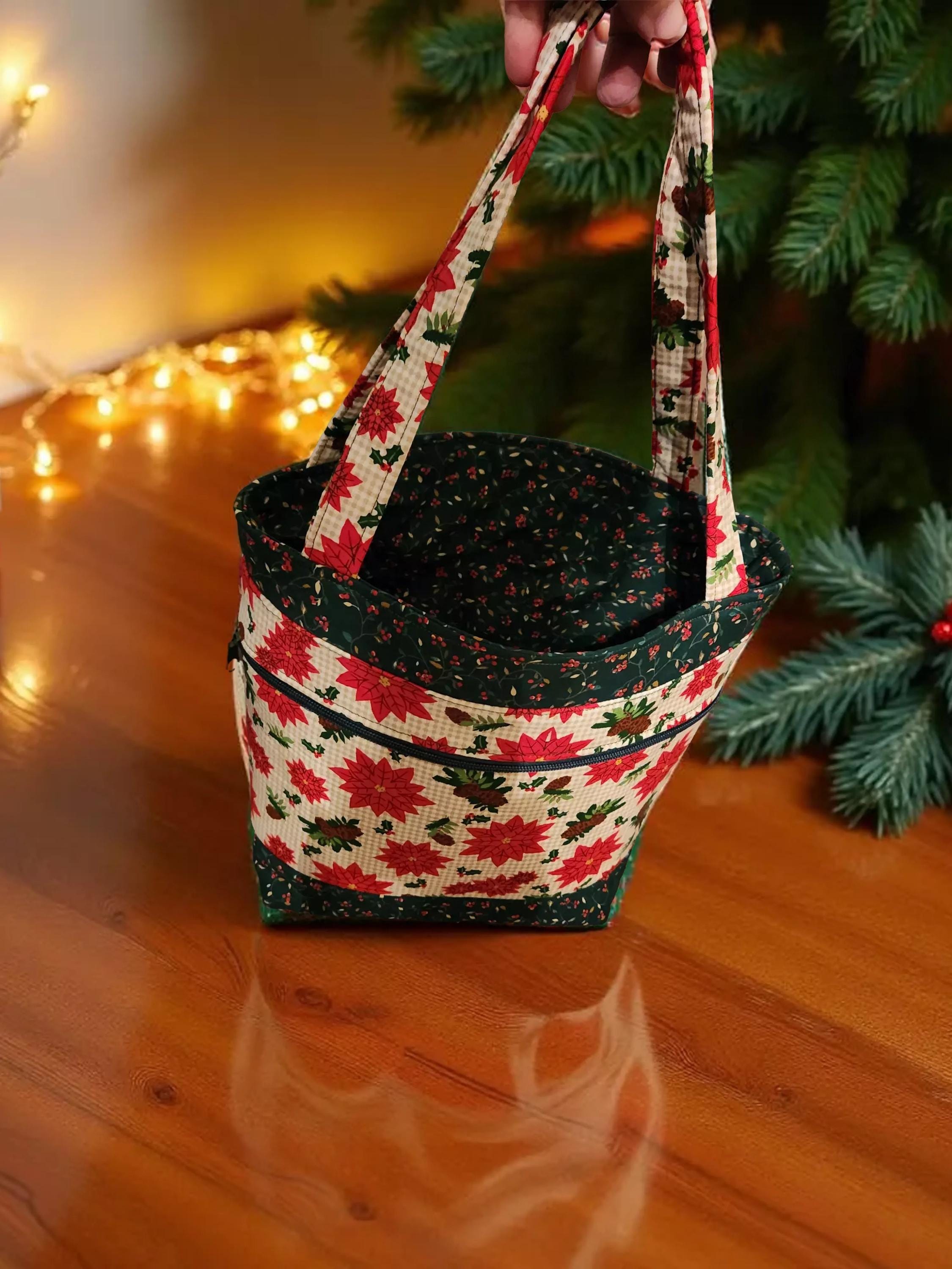 Embrace the festive spirit with this beautifully crafted Christmas tote bag, featuring vibrant red poinsettias and lush green leaves that capture the essence of holiday cheer. Designed with both style and practicality in mind, this festive floral tote is perfect for carrying gifts, groceries, or everyday essentials. Handmade from 100% cotton with a soft fusible fleece inner, it offers durability and a charming seasonal touch.