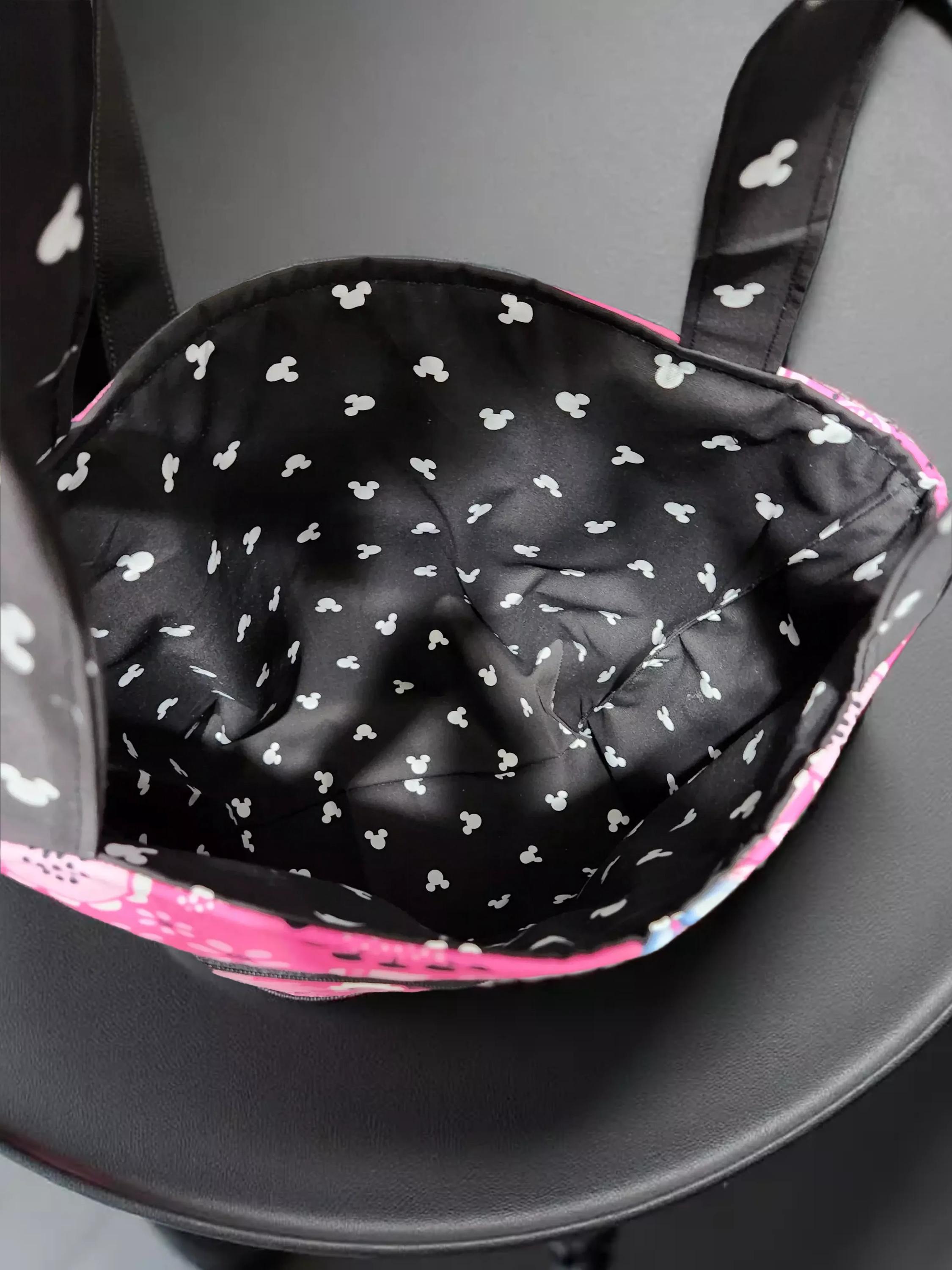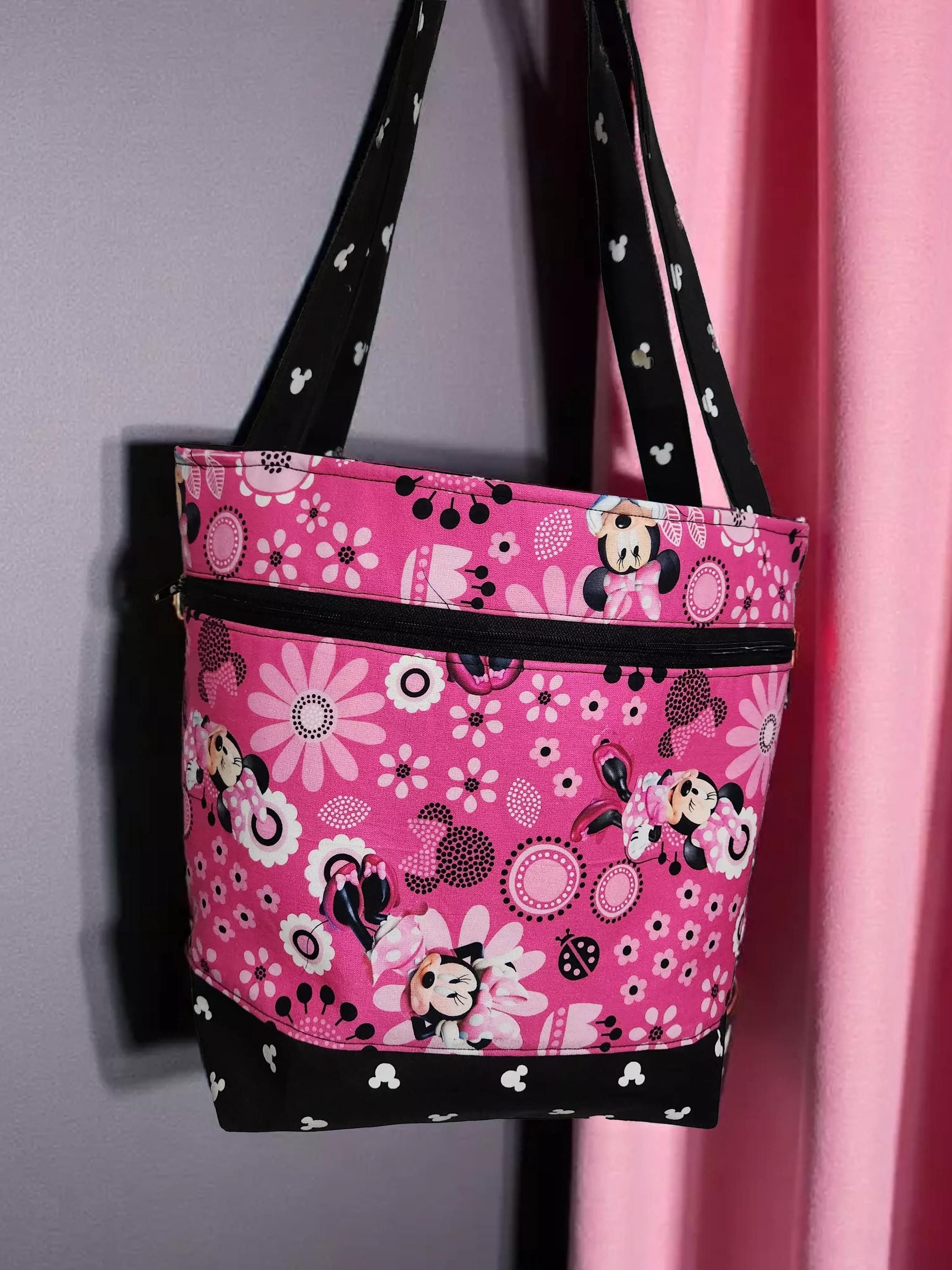 Discover the charm of this Minnie Mouse tote bag, crafted from soft pink cotton that brings a playful yet practical touch to your everyday carry. Featuring a spacious design with a big front zippered pocket, this bag is perfect for keeping your essentials organized on the go. Whether for a casual outing or a fun gift, this Minnie Mouse tote combines style and convenience effortlessly.