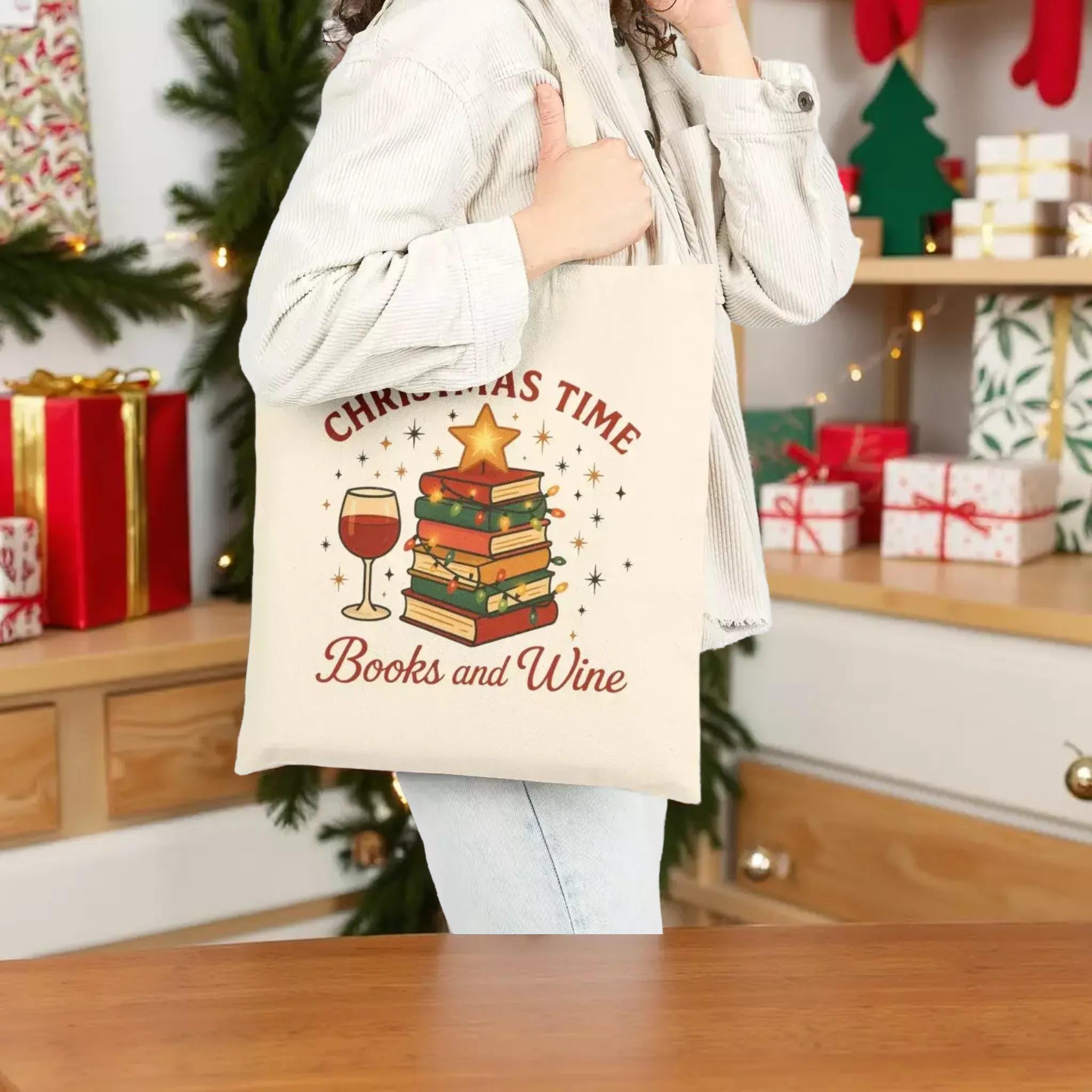 Embrace the cozy charm of the holiday season with this Christmas books and wine tote, perfect for book lovers who cherish festive moments. Crafted from durable cotton canvas, this tote beautifully captures the warmth of winter reading nights and holiday gatherings. Whether you're heading to a book club or a market run, this bag blends practicality with seasonal spirit.