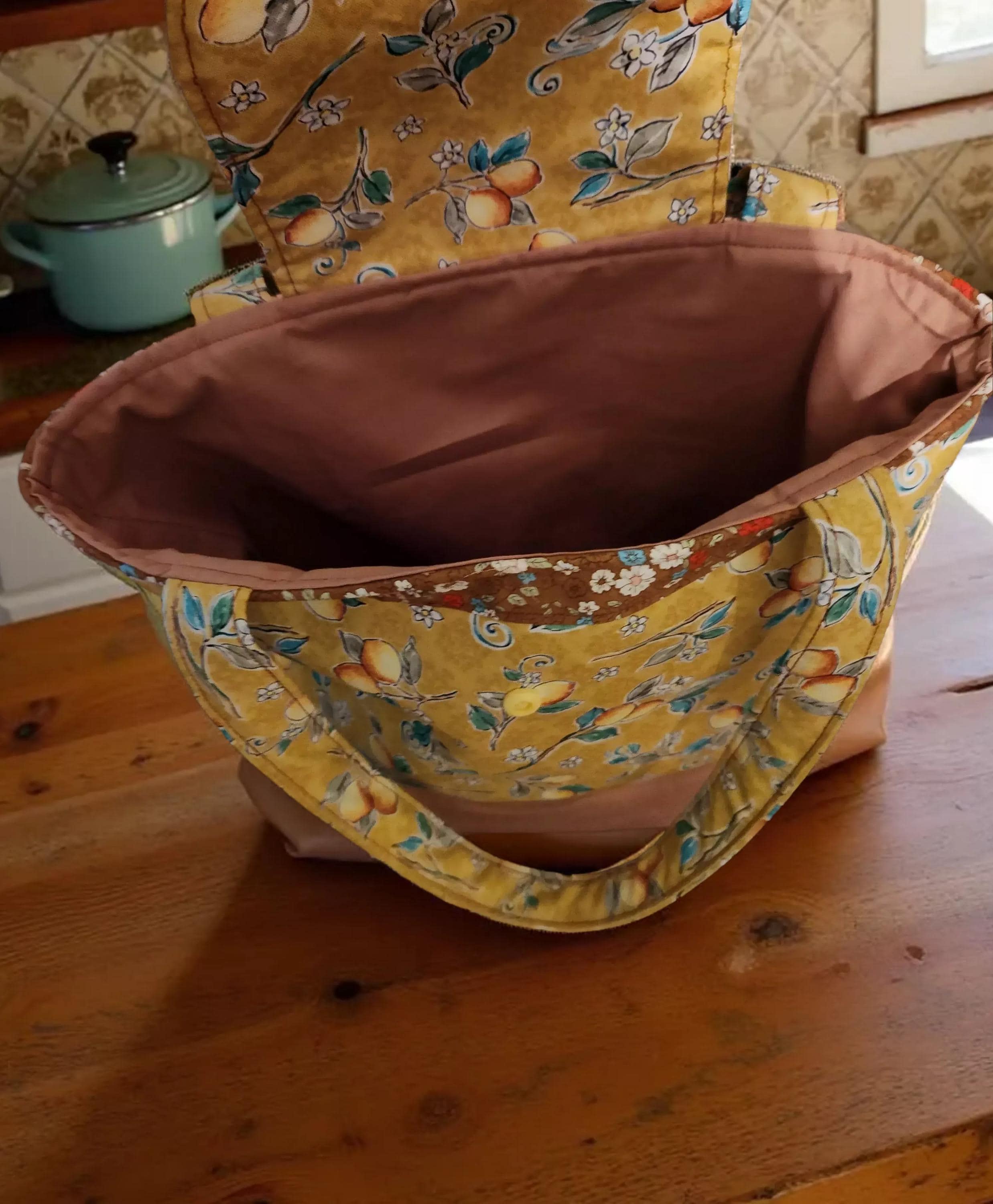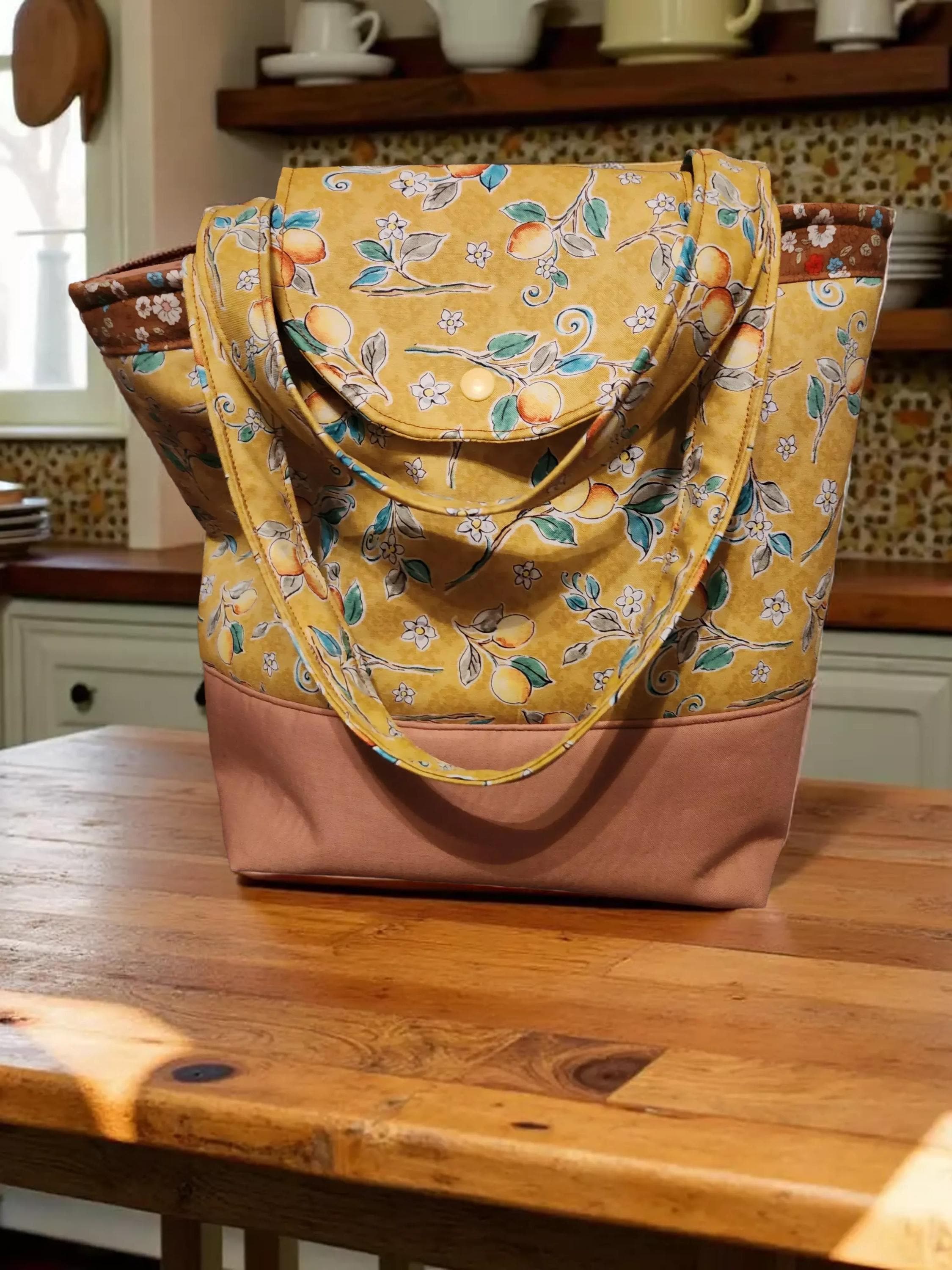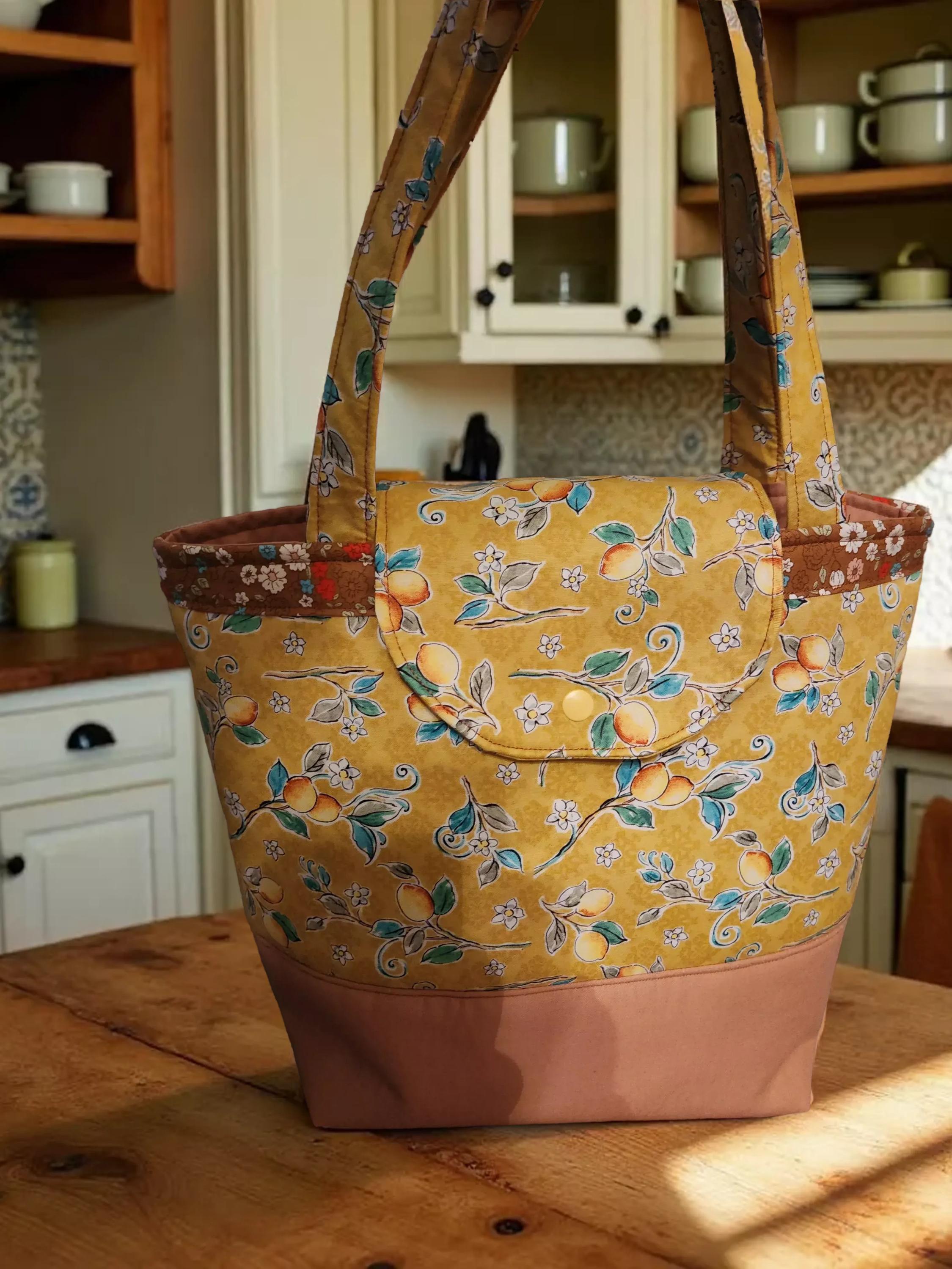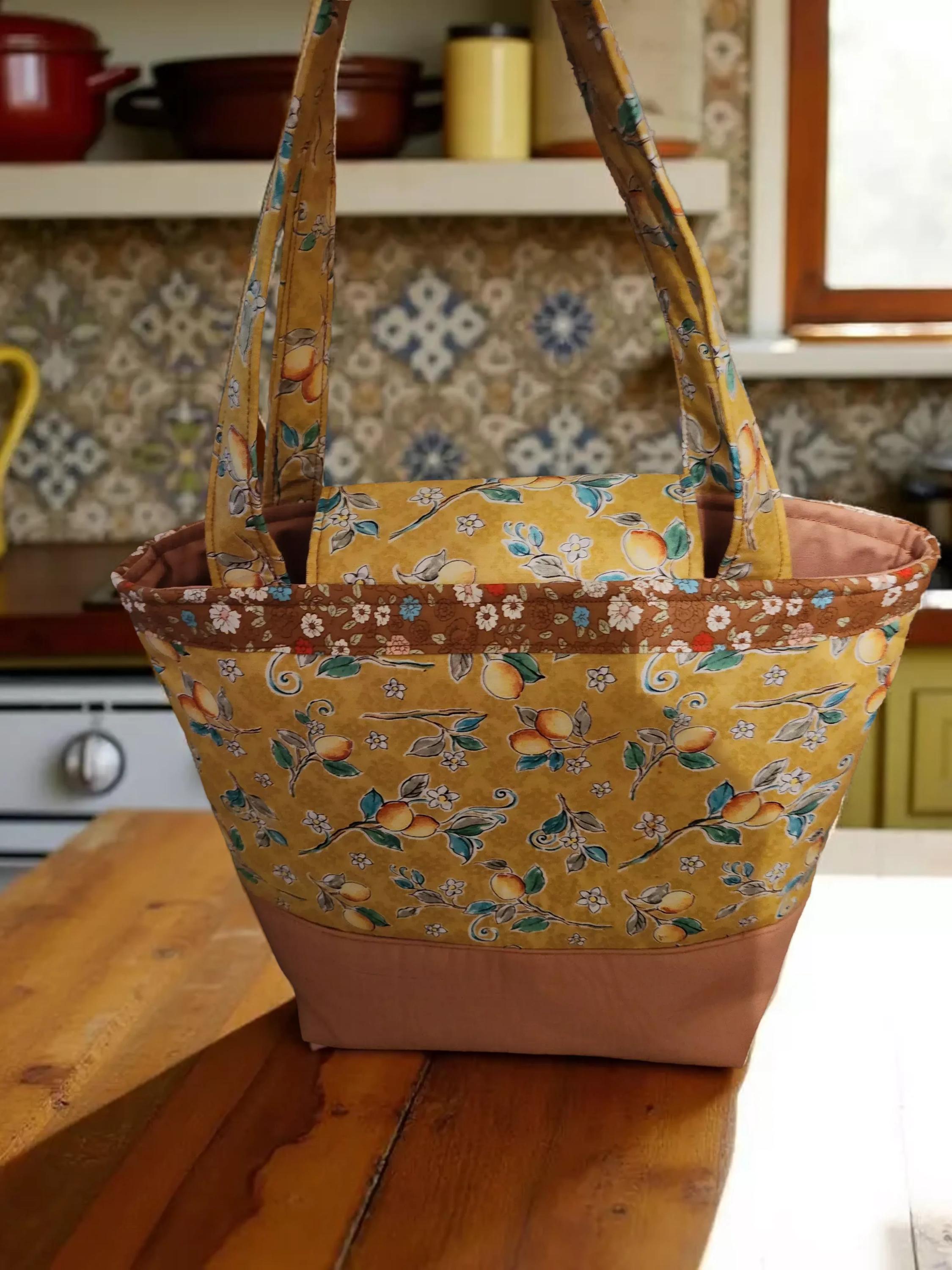 Brighten your daily errands or book outings with this charming fruit-themed tote, crafted from 100% cotton fabric that blends yellow and brown hues for a warm, inviting look. Designed for durability and style, this shopping bag features double-stitched handles and a thick, sturdy fusible fleece lining that adds structure and strength. Whether you're heading to the market or carrying your favorite reads, this versatile tote combines practicality with a playful design.