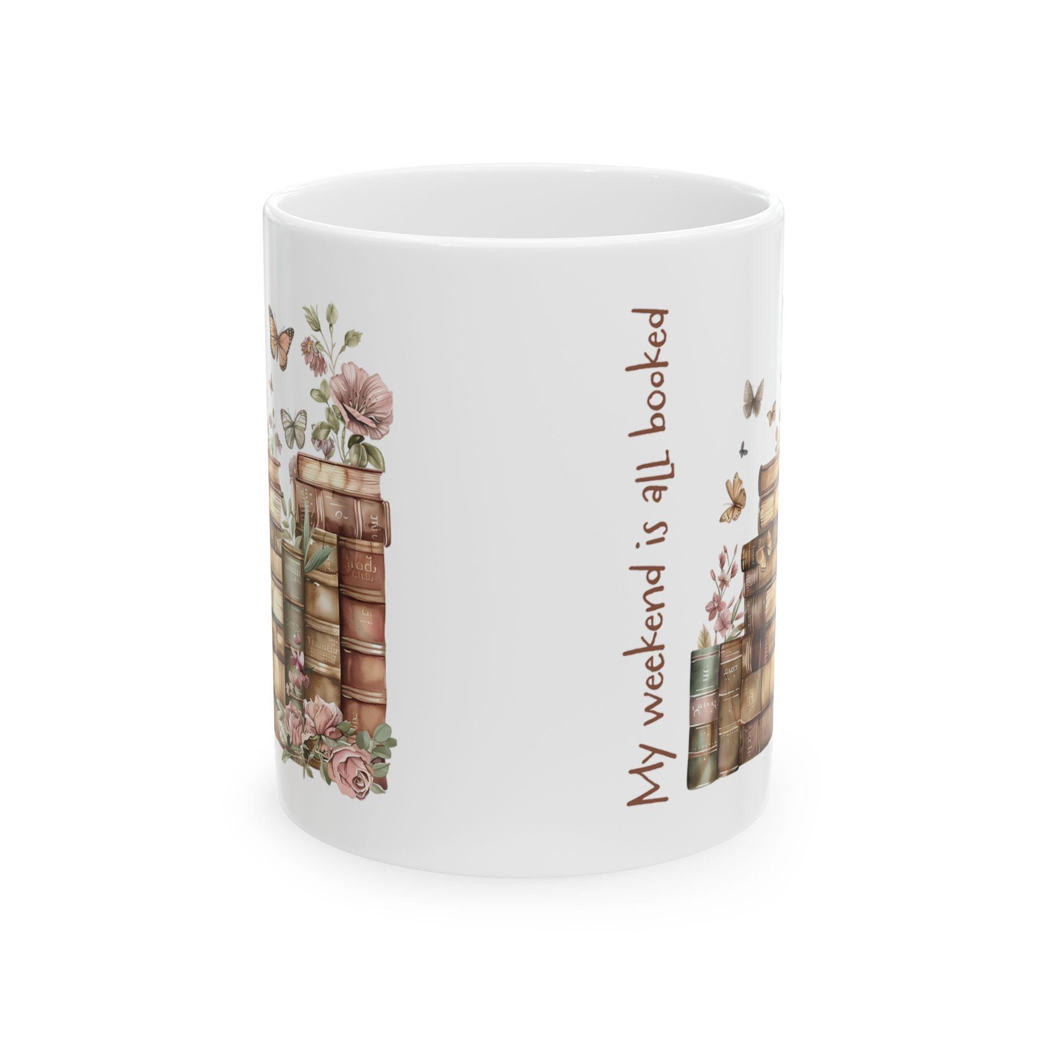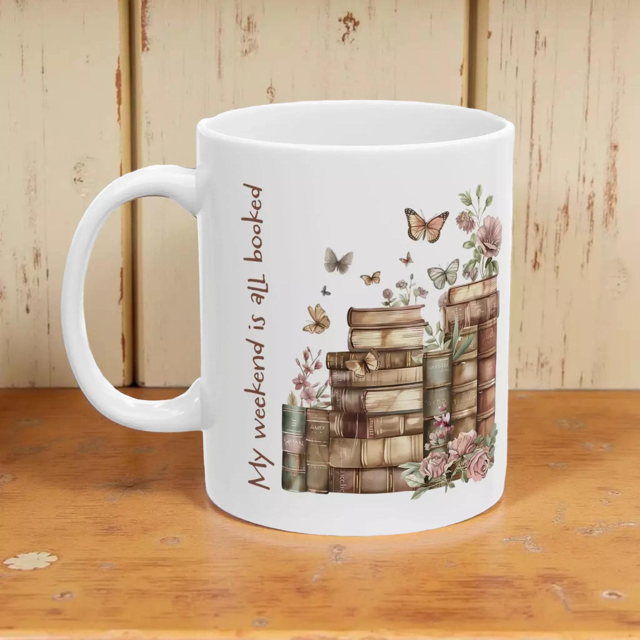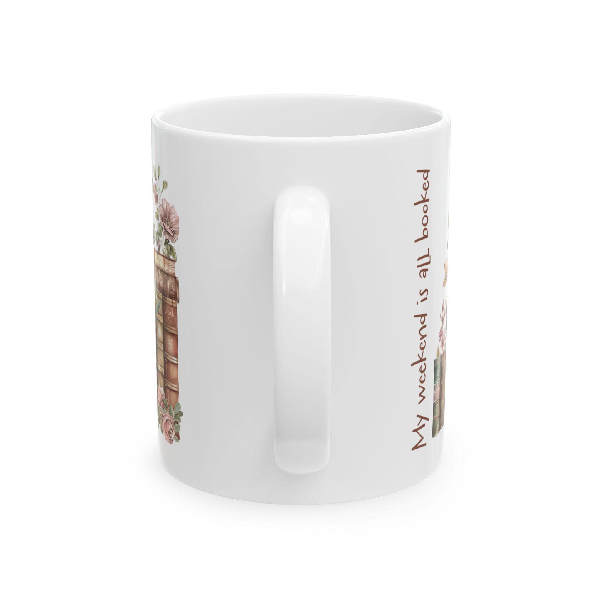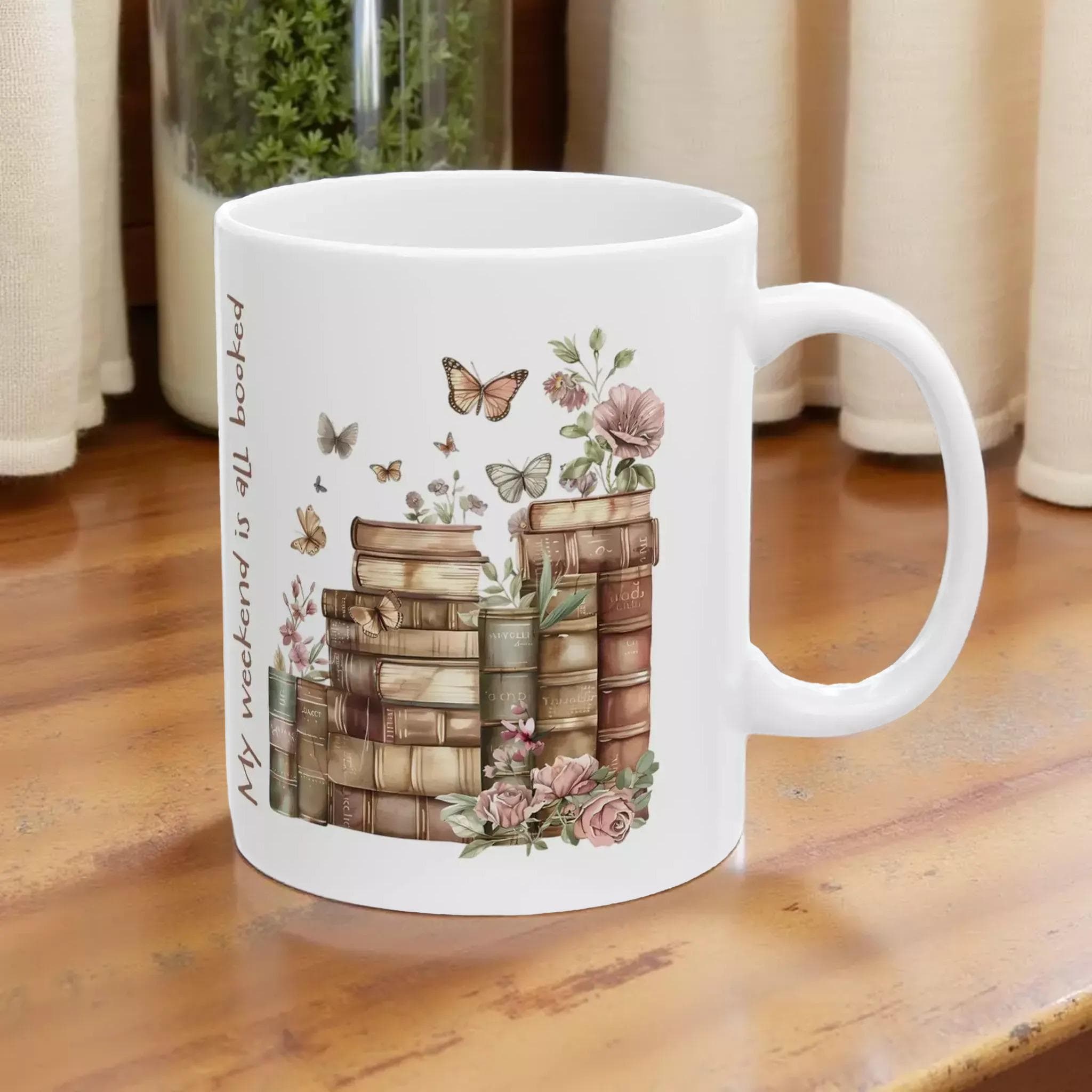Imagine curling up with a warm cup of coffee in your favorite reading nook, the steam rising gently from a ceramic mug that celebrates your love for books and cozy moments. This charming mug features delicate florals and a stack of books alongside the handwritten phrase "My weekend is all booked," perfectly blending comfort and bookish charm. Whether you're enjoying a quiet morning or a slow weekend ritual, this floral book lover ceramic coffee cup brings warmth and inspiration to every sip.