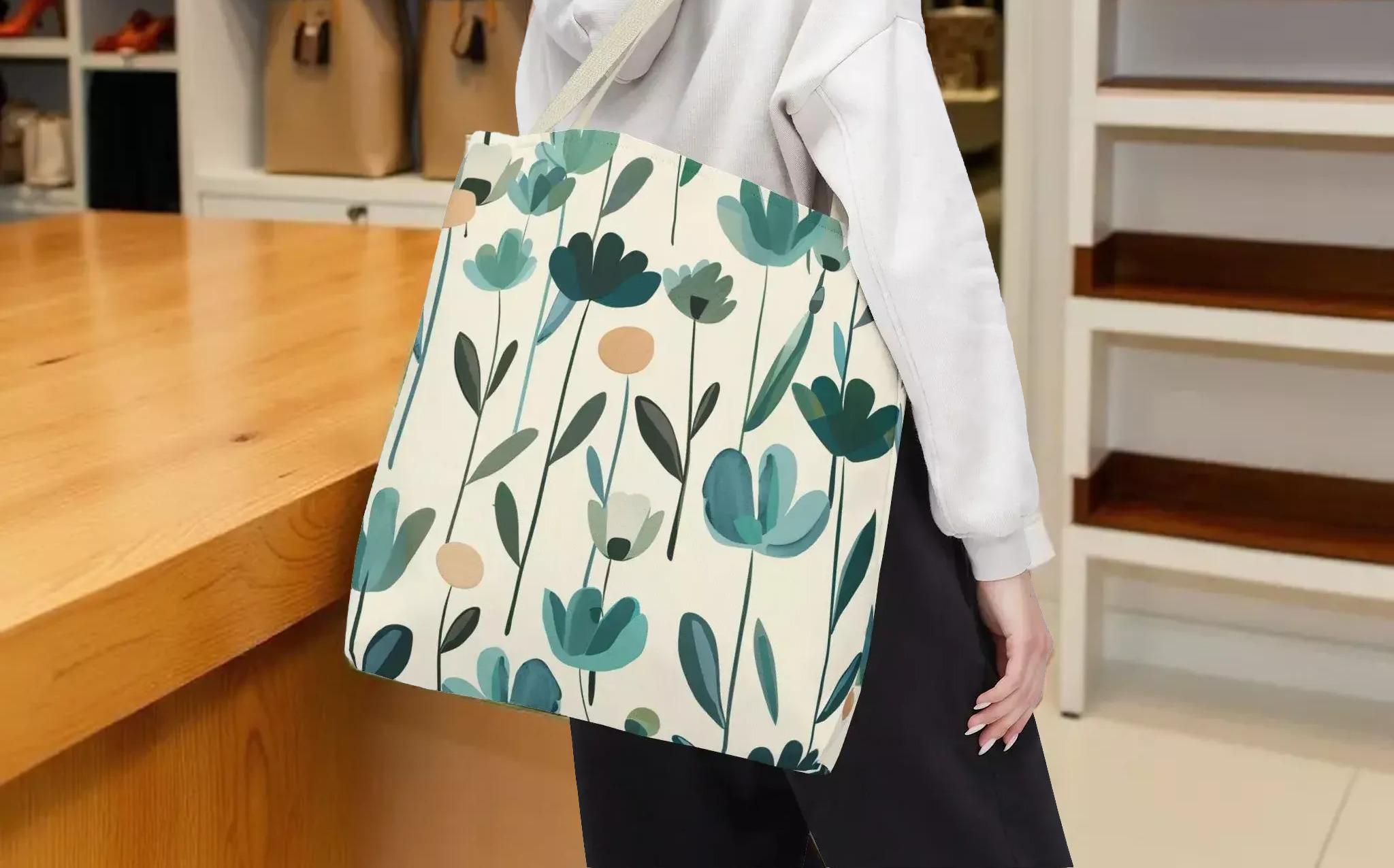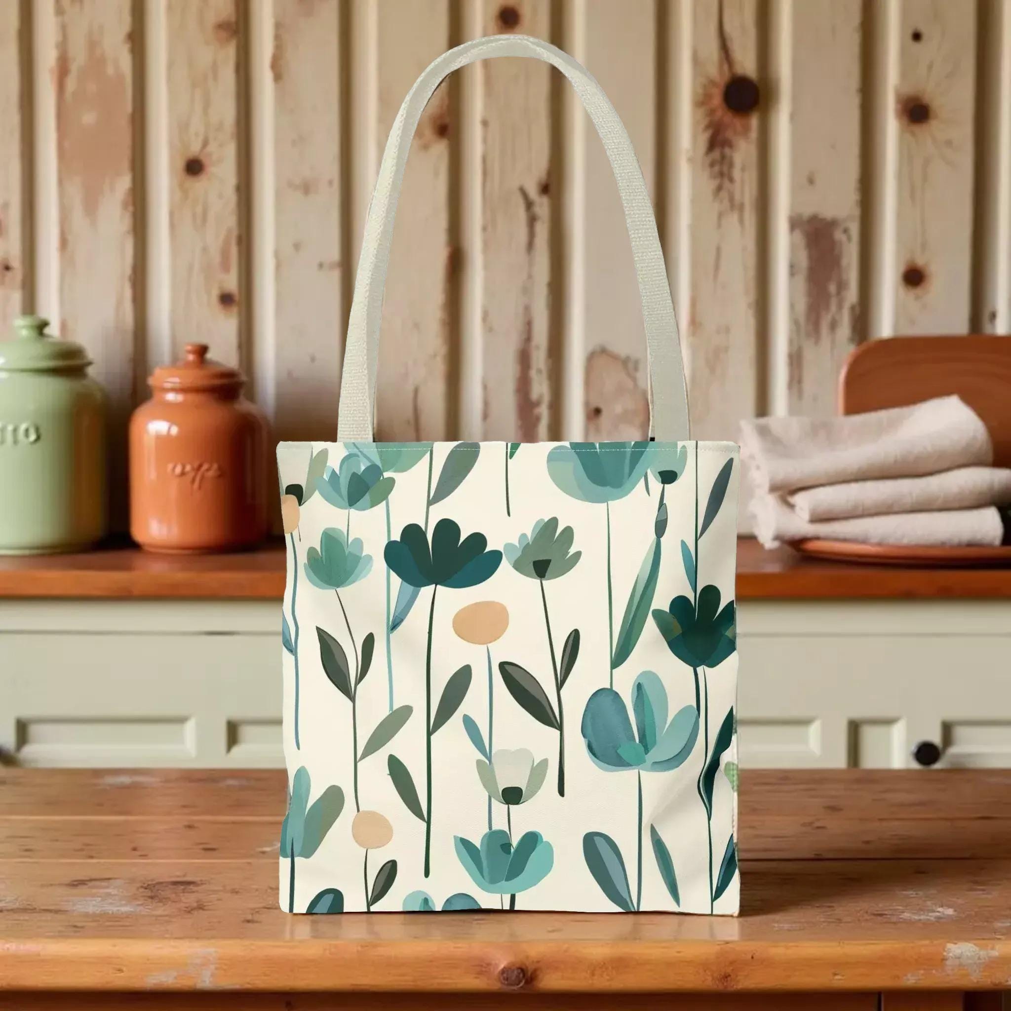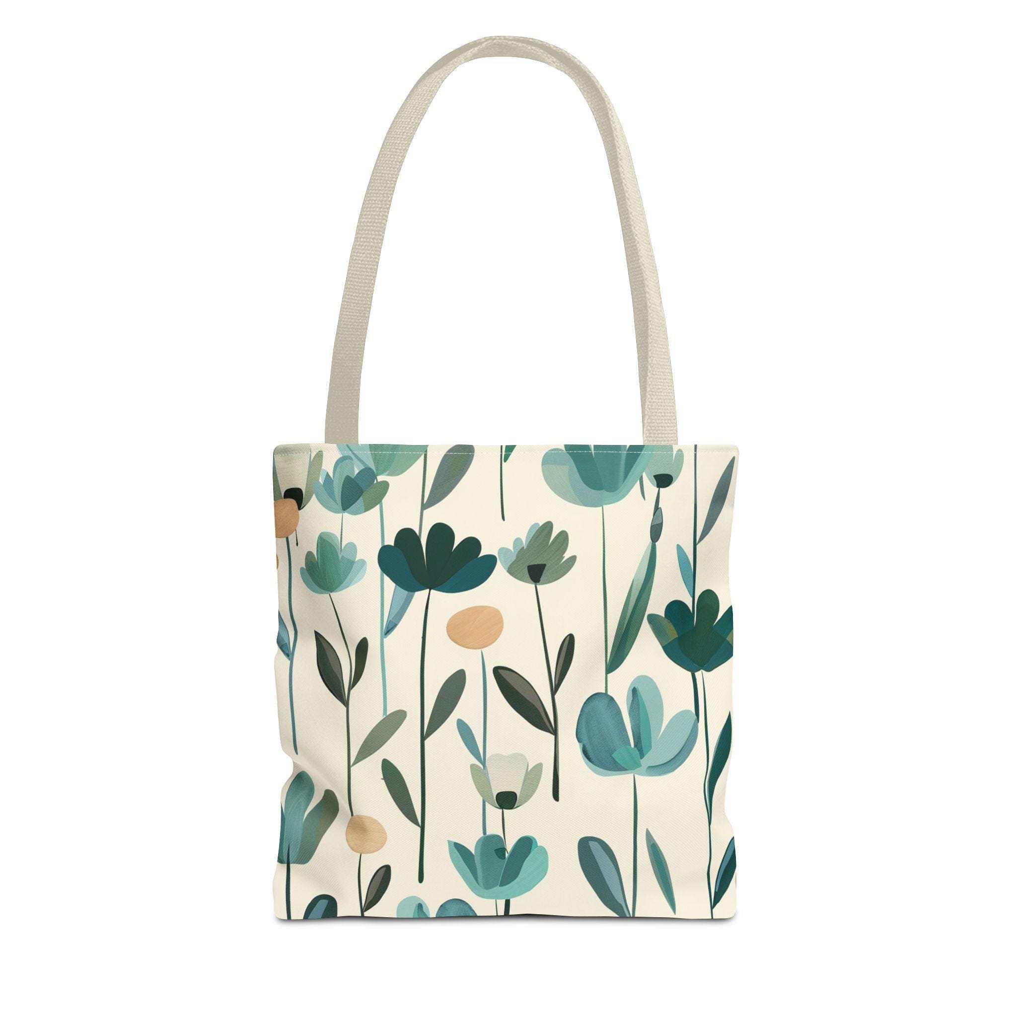 Embrace the charm of nature with this floral meadow tote bag, featuring a delicate teal wildflower pattern that evokes the serenity of a peaceful garden. Crafted with care, the soft watercolor-inspired blooms on a warm cream background bring a touch of artistry to your daily routine. Whether you're headed to a neighborhood market, a café, or simply carrying your essentials, this tote combines style and practicality with its roomy design and reinforced handles.