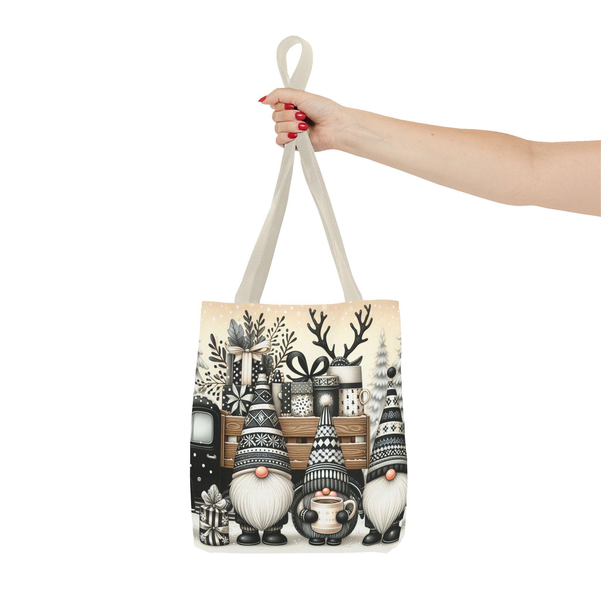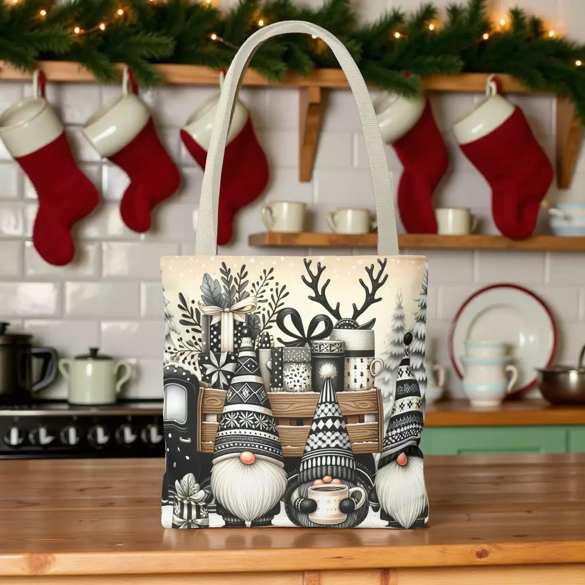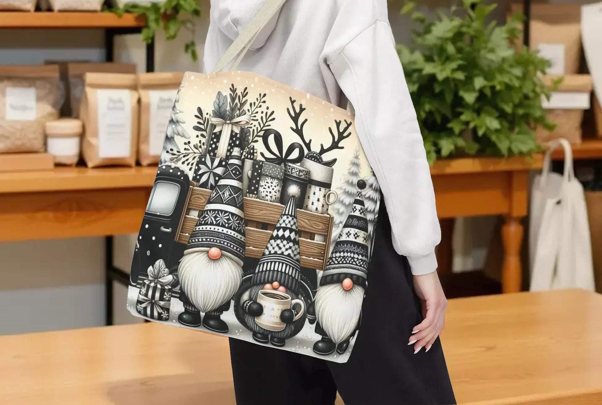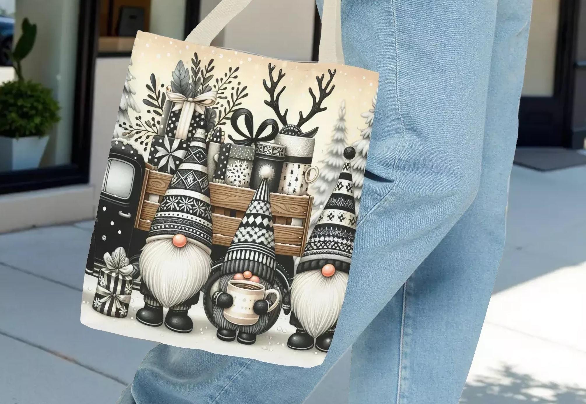 Embrace the cozy charm of the holiday season with this delightful tote bag featuring hand-drawn winter gnomes, perfect for holiday shopping and winter markets. Inspired by rustic woodland scenes and quiet moments, the neutral palette and whimsical gnome characters evoke a warm, slow-living vibe that fits seamlessly into your everyday errands. Whether you're heading to a holiday market or exchanging small gifts, this tote brings thoughtful seasonal cheer with every use.