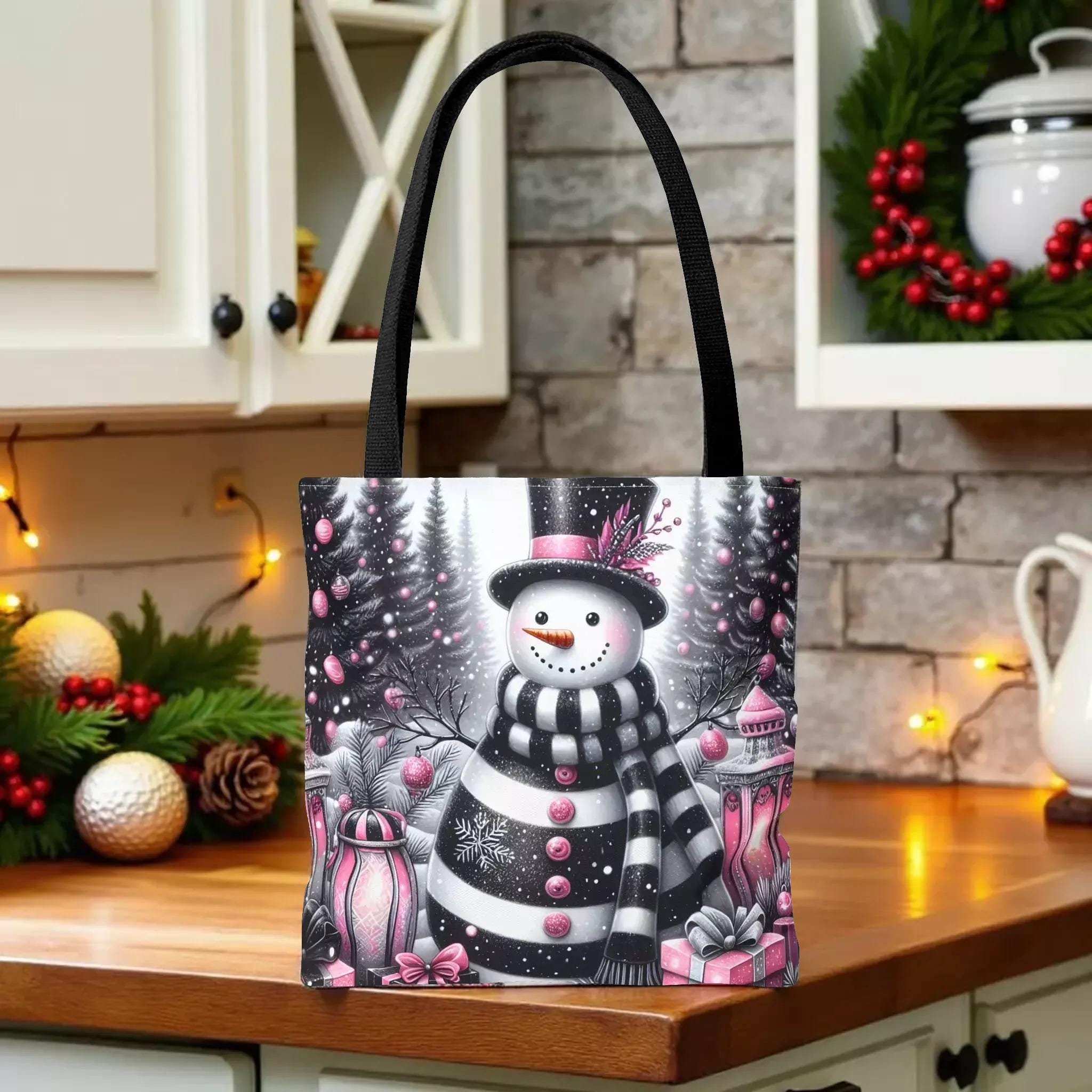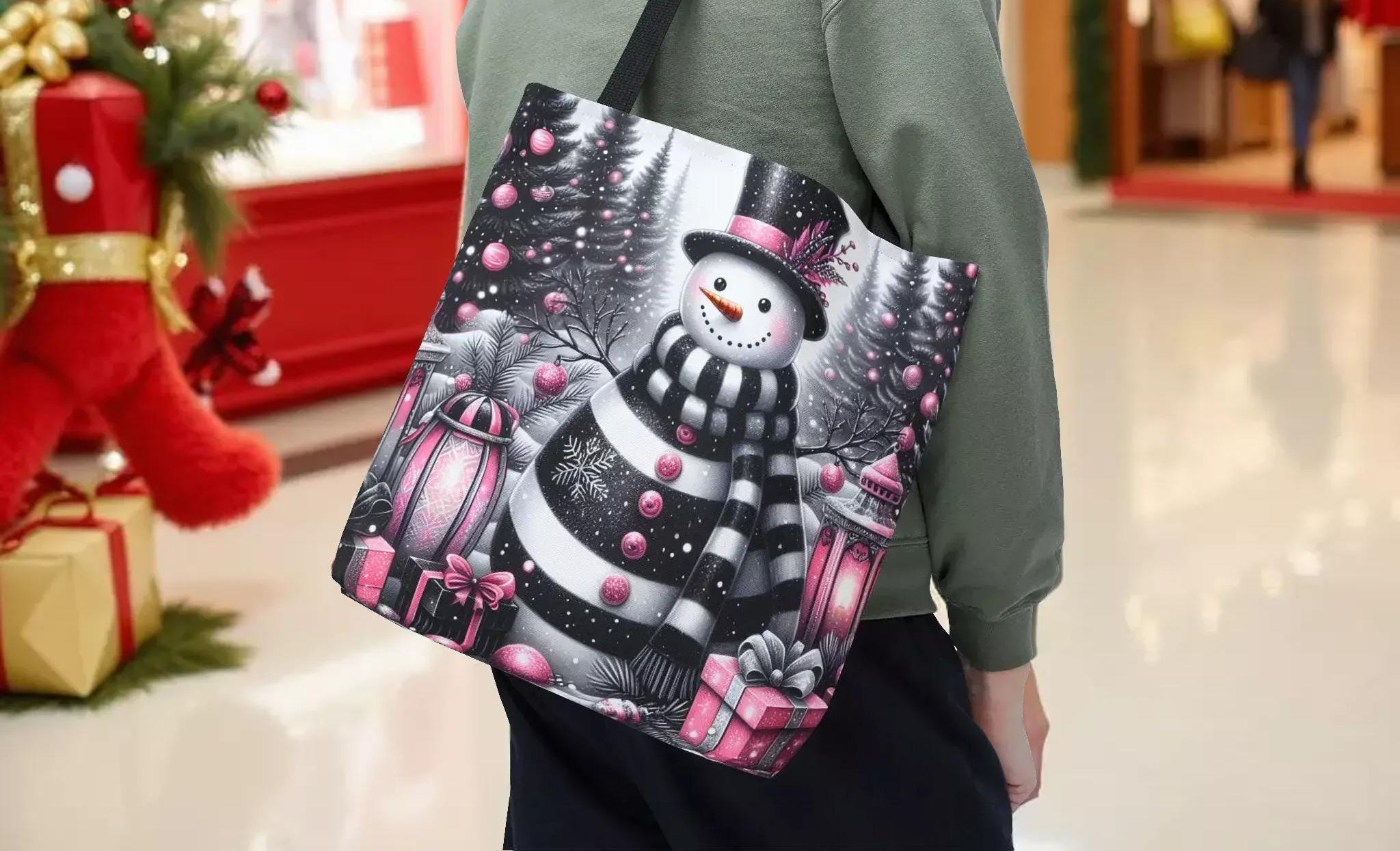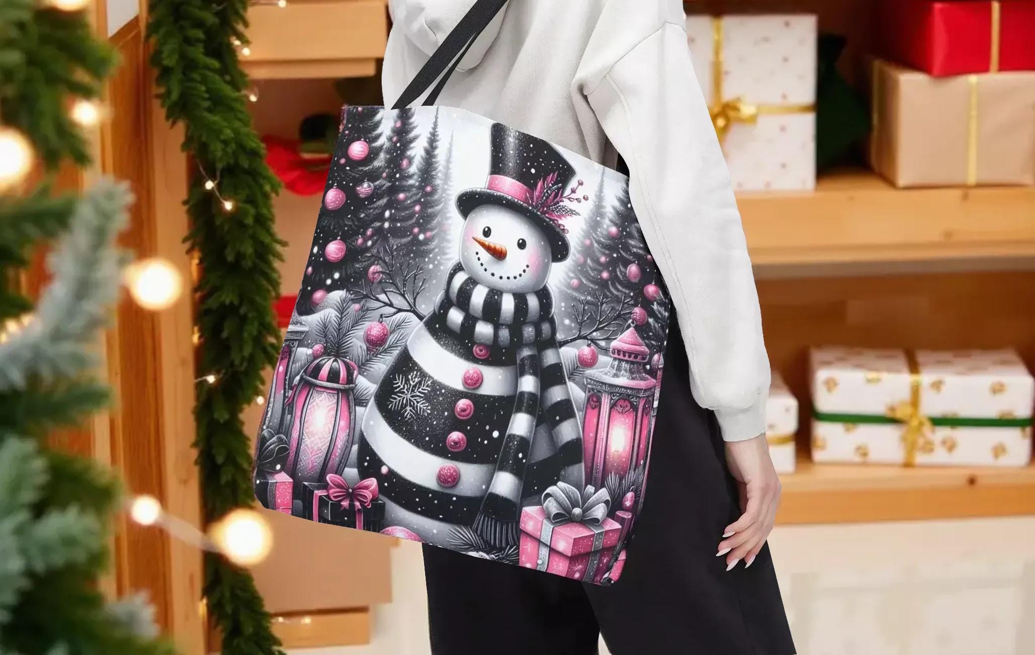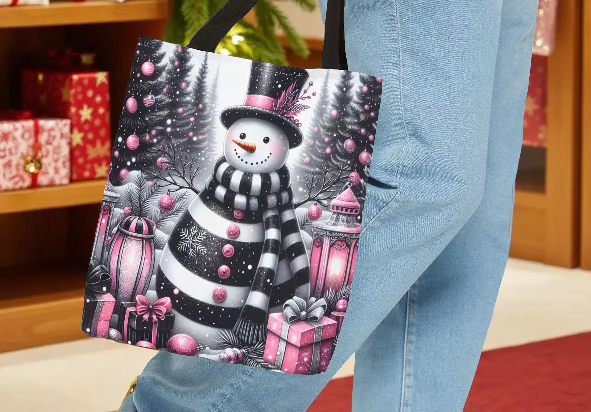 Embrace the spirit of the season with this charming snowman tote bag, perfect for holiday style and festive shopping trips. Crafted with playful pink accents and a cozy winter design, it’s an ideal companion for carrying your gifts and essentials in cheerful holiday style. Whether you’re heading to a market or a neighborhood stroll, this tote brings a touch of whimsy and nostalgia to your everyday errands.