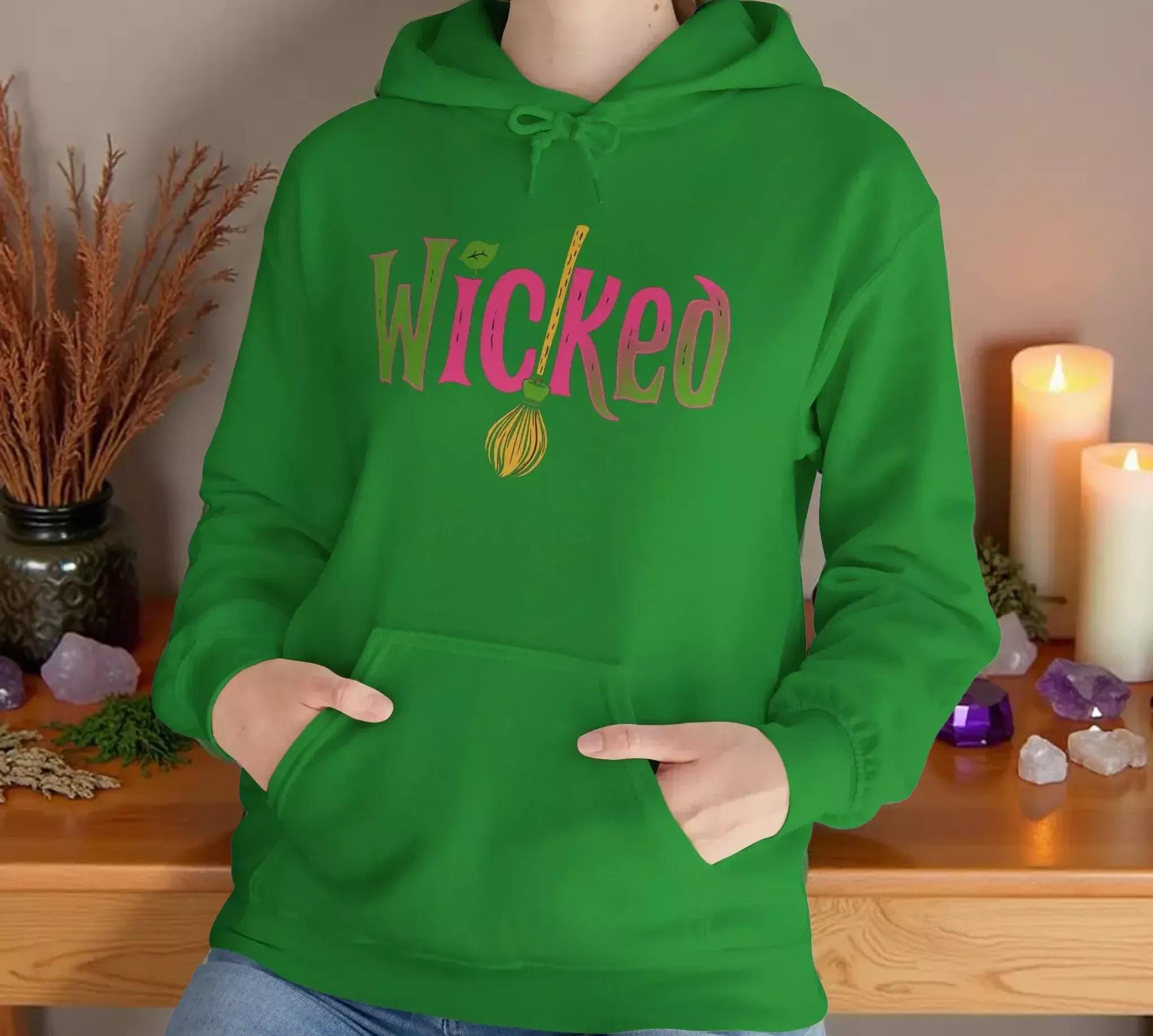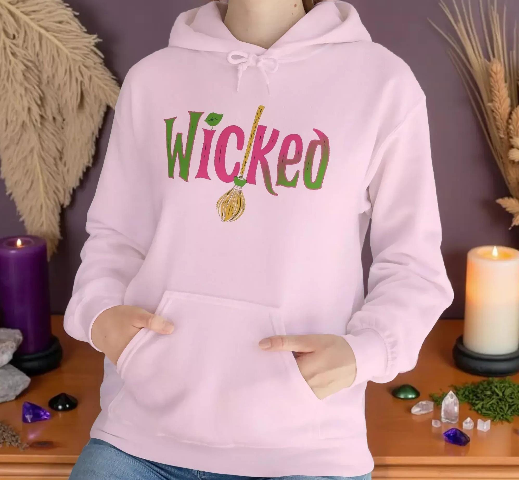 Embrace cozy comfort with a playful twist in this witchy graphic pullover, perfect for slow mornings and crisp evenings. Featuring a hand-lettered "Wicked" design in warm green and rosy pink, it captures a whimsical charm that’s both personal and inviting. Whether you're layering up for a bonfire or enjoying a weekend thrift run, this hoodie blends relaxed style with subtle magical energy.