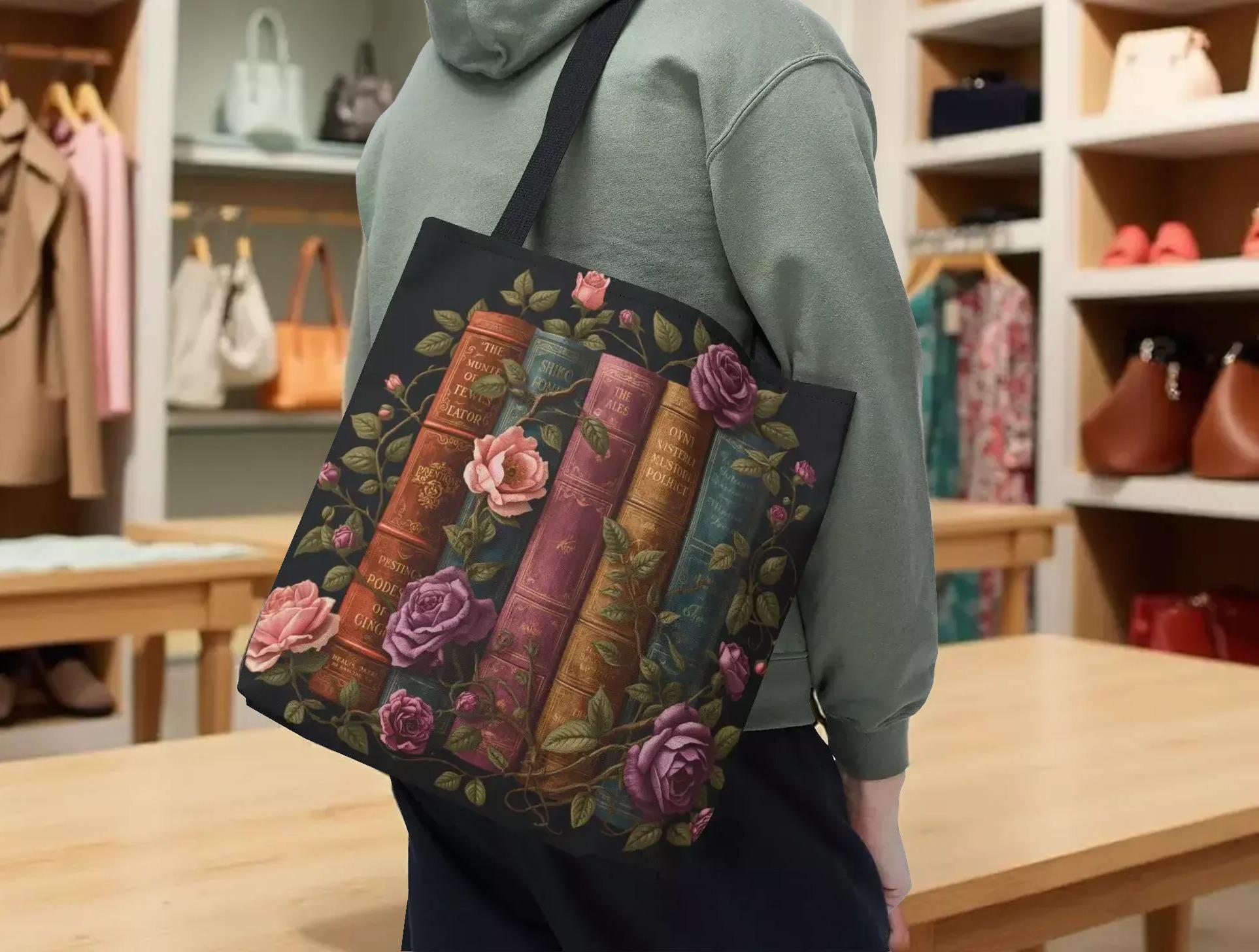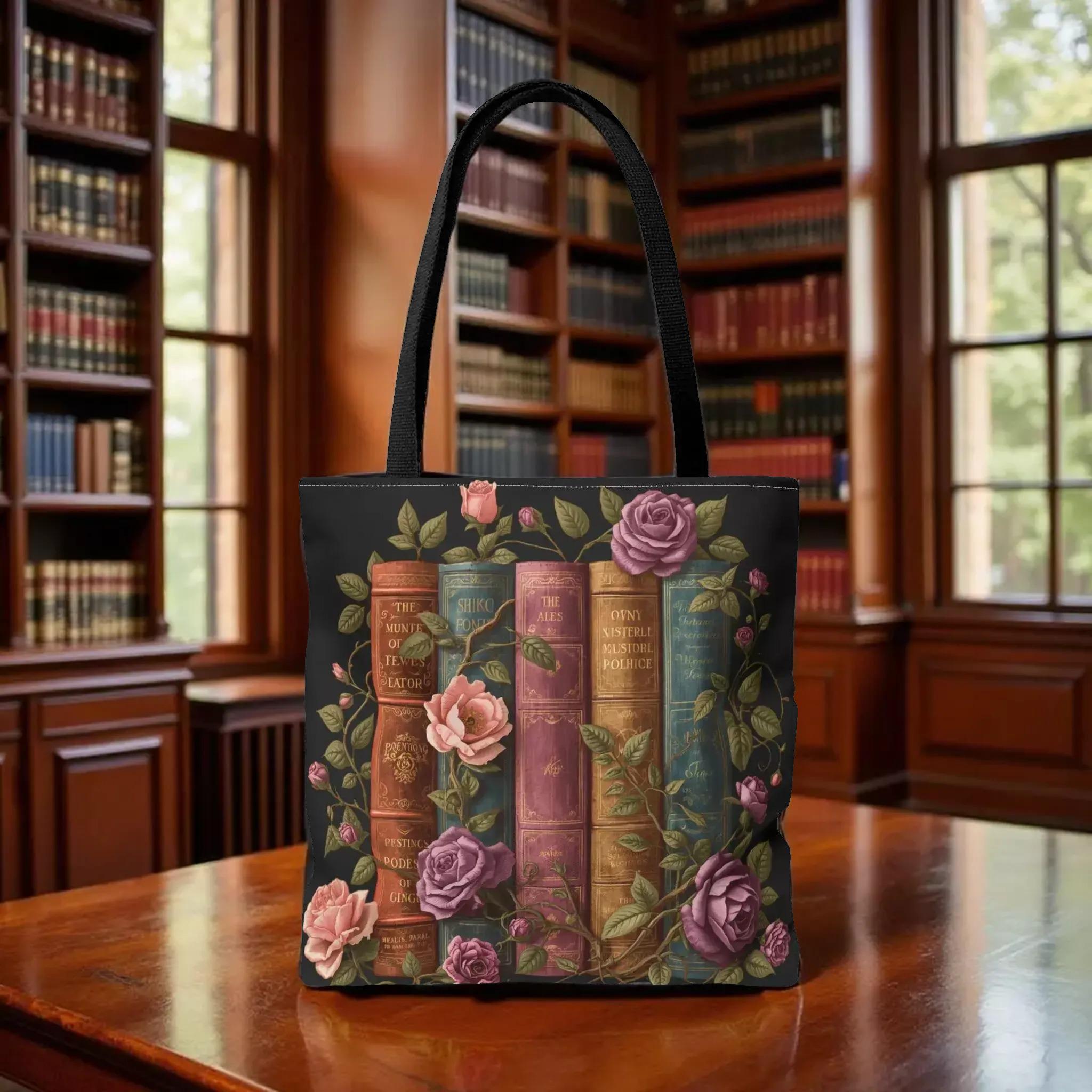 Step into a world where vintage floral charm meets practical design with this rosebound library carryall tote. Inspired by the quiet corners of used-bookshops, this tote captures the essence of climbing roses entwined around leather-bound books, making it a perfect companion for lovers of unique, story-filled objects. Whether you're heading to the market or carrying your favorite reads, this vintage floral tote blends timeless beauty with everyday function.