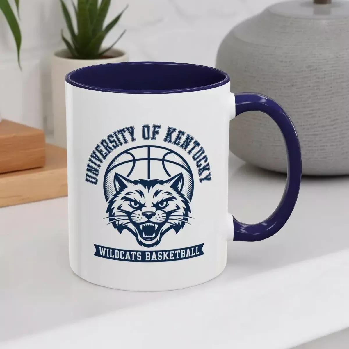 Start your day energized with this University Kentucky Wildcats basketball mug, designed for fans who want to showcase their team spirit in style. Featuring a vibrant Wildcats basketball crest, this ceramic mug combines a glossy white exterior with a contrasting colored interior and a comfortable C-shaped handle. Perfect for coffee, tea, or cocoa, it’s an ideal companion for game days, study sessions, or desk moments that call for a bold collegiate touch.