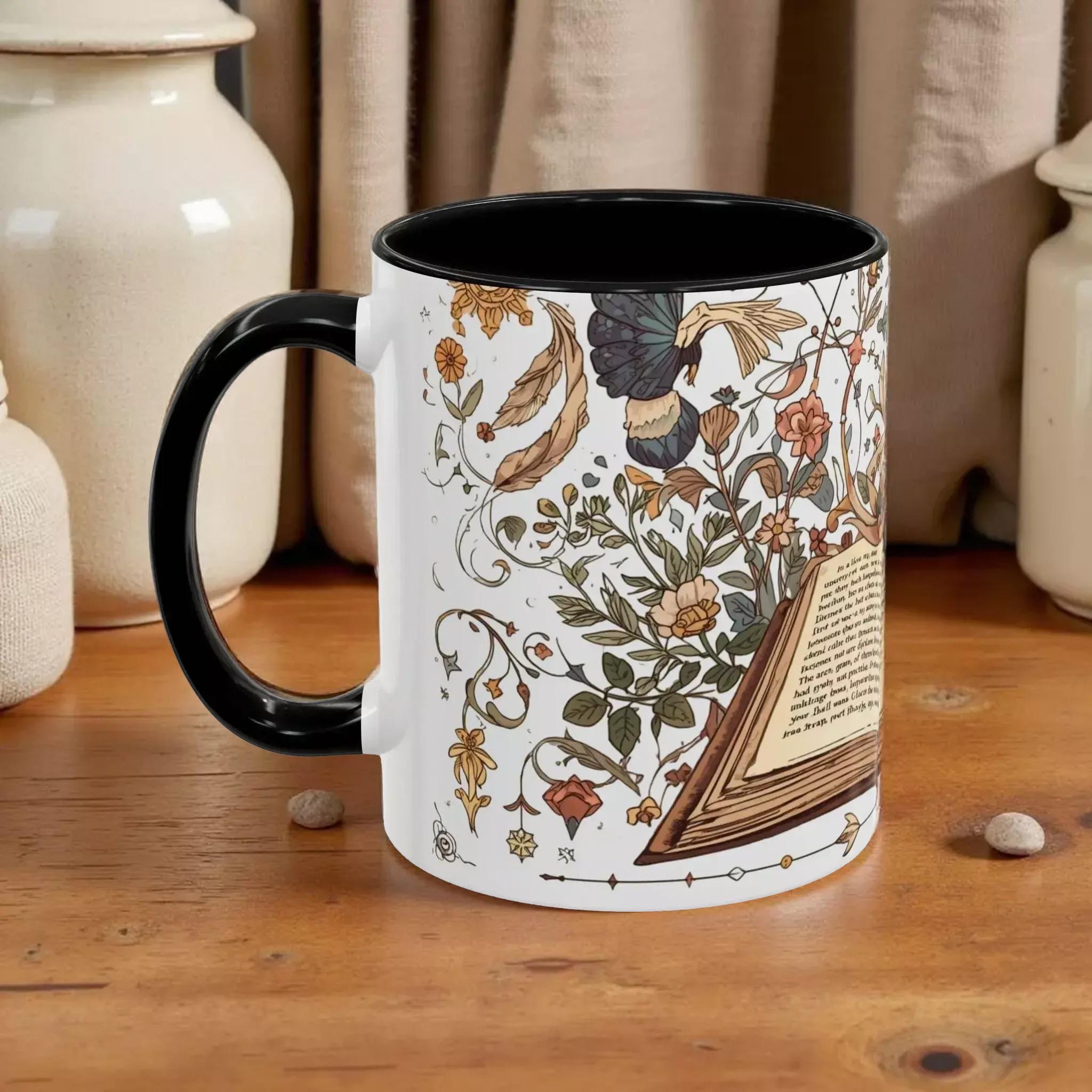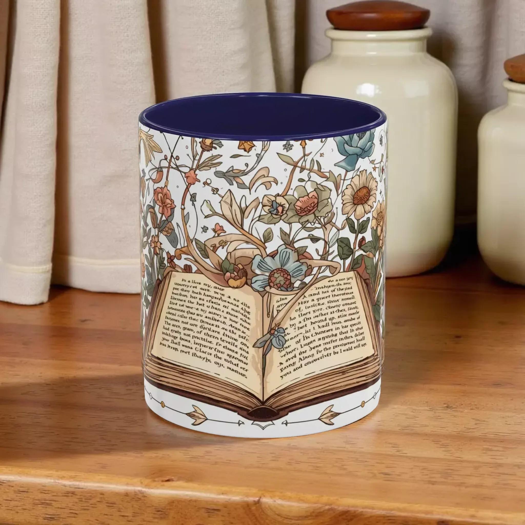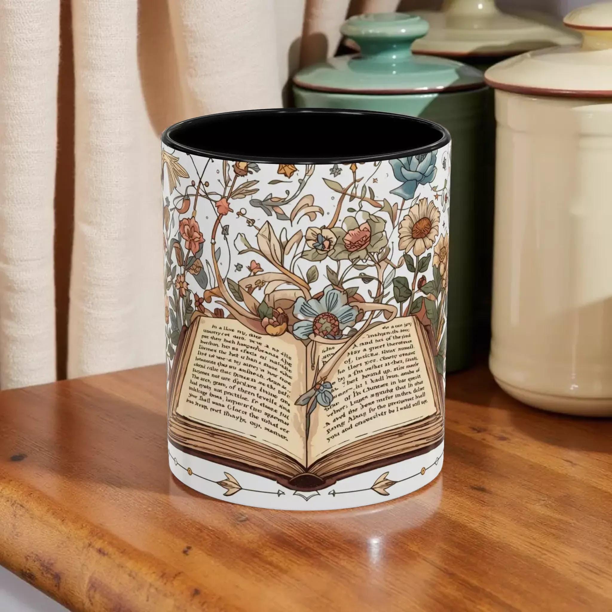 Immerse yourself in a serene moment with this floral open book coffee mug, designed for lovers of vintage botanical art and cozy reading rituals. The delicate illustration of an open book surrounded by warm florals invites you to pause and savor your favorite brew, making every coffee or tea break feel like a quiet escape. Perfect as a vintage botanical reader gift, this mug blends charm and function to brighten your daily routine.
