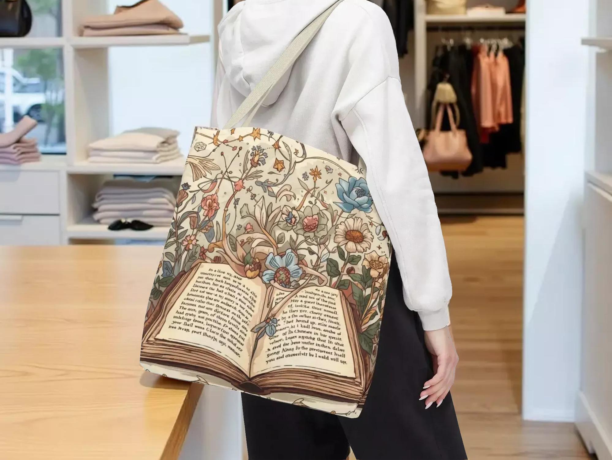 Step into a world where vintage charm meets everyday practicality with this open book bag, a floral illustration design carryall shopping tote that feels like a page from an old storybook. Inspired by the gentle spill of wildflowers and ivy, this tote blends botanical whimsy with durable craftsmanship, perfect for those who cherish printed pages and quiet moments. Whether you're heading to the market, library, or park, this floral tote carries your essentials with timeless style and ease.