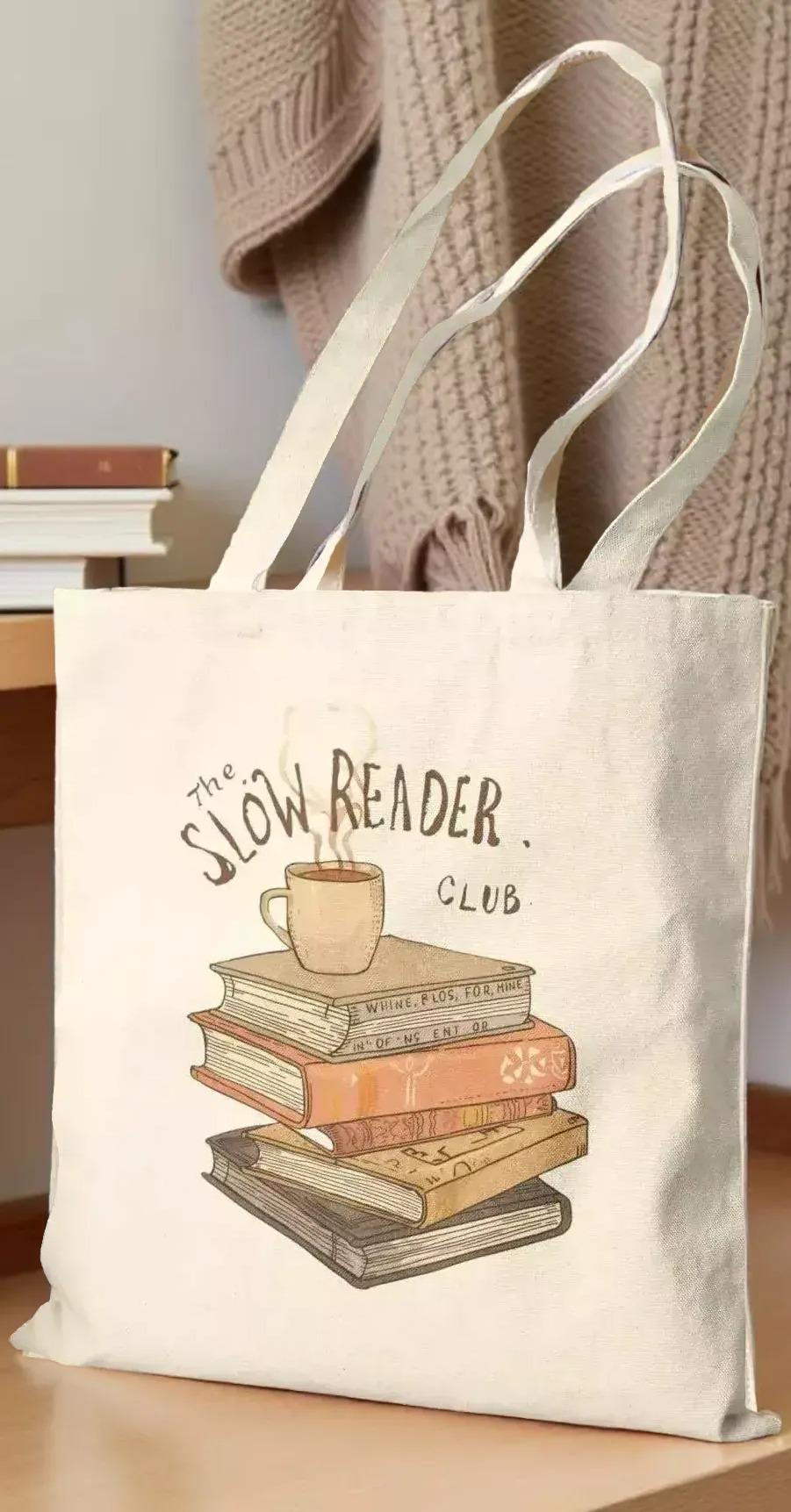 The Slow Reader Club Tote is a cozy, everyday bag designed for book lovers who enjoy reading at their own pace.