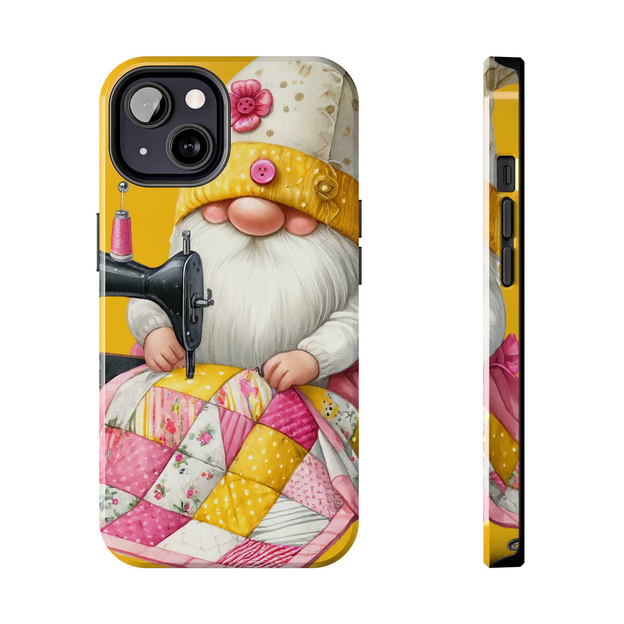 Step into a world of cozy charm with this quilting gnome phone case, designed to delight lovers of crafting, quilting, and handmade artistry. Featuring a vivid, glossy illustration of a cheerful gnome sewing a bright quilt, this protective cover blends whimsical design with practical durability. Whether you own a Samsung or iPhone, this case brings homespun warmth to your everyday device.
