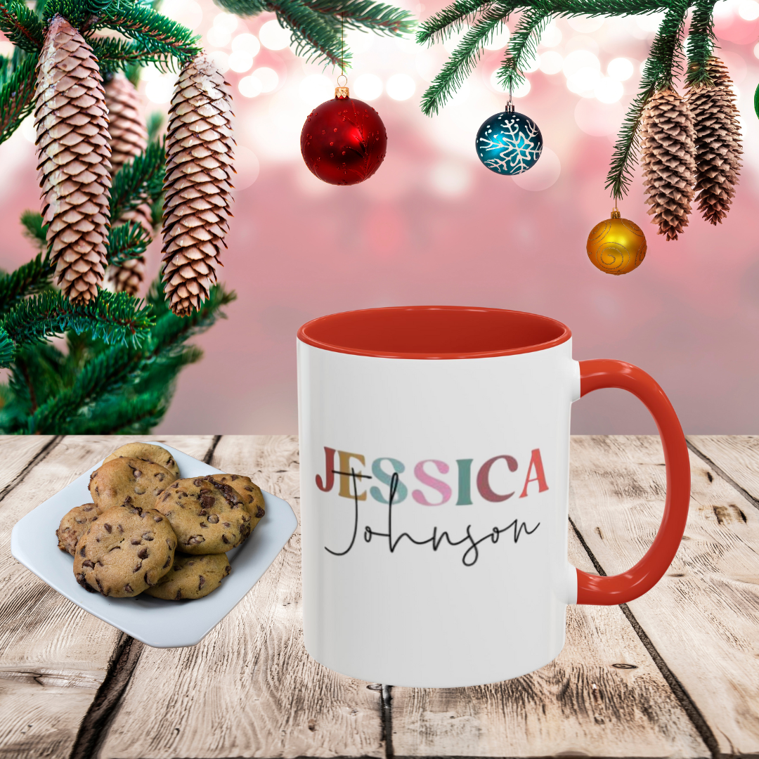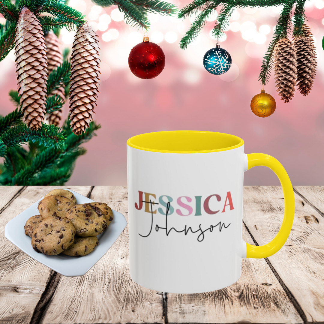 Personalized Accent Your Name Coffee Mug, Holiday Or Birthday Gift Mug, Ceramic Mug